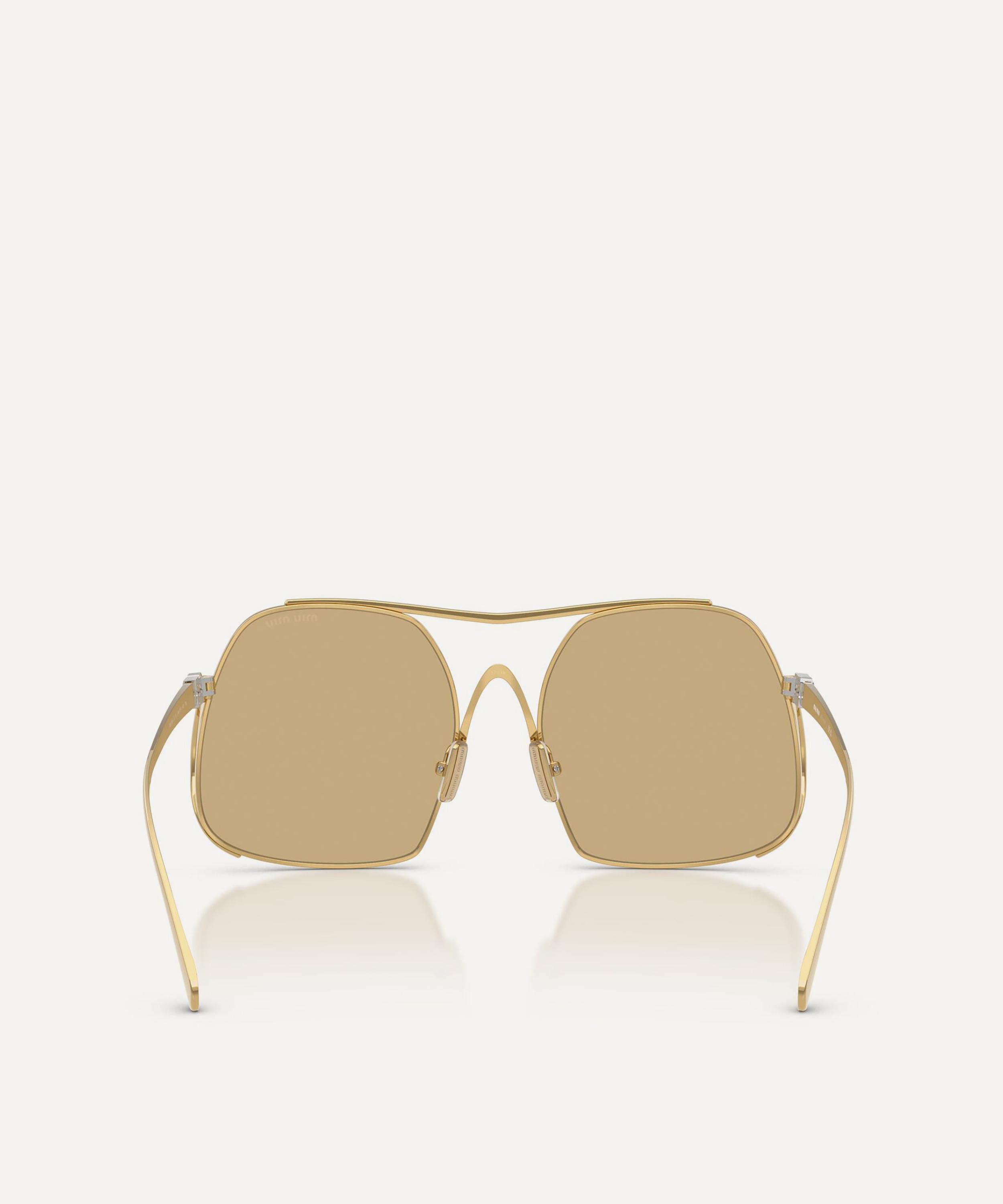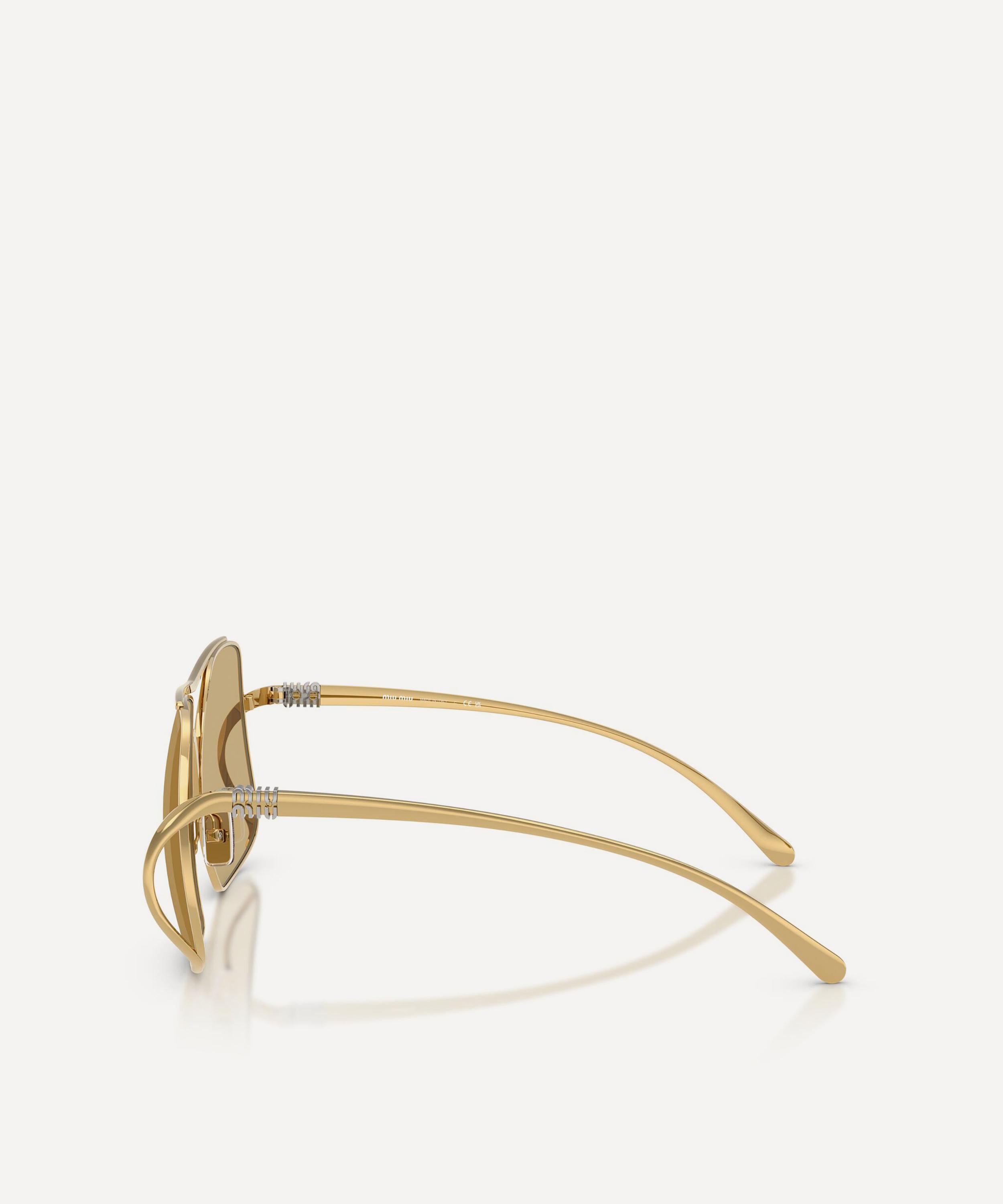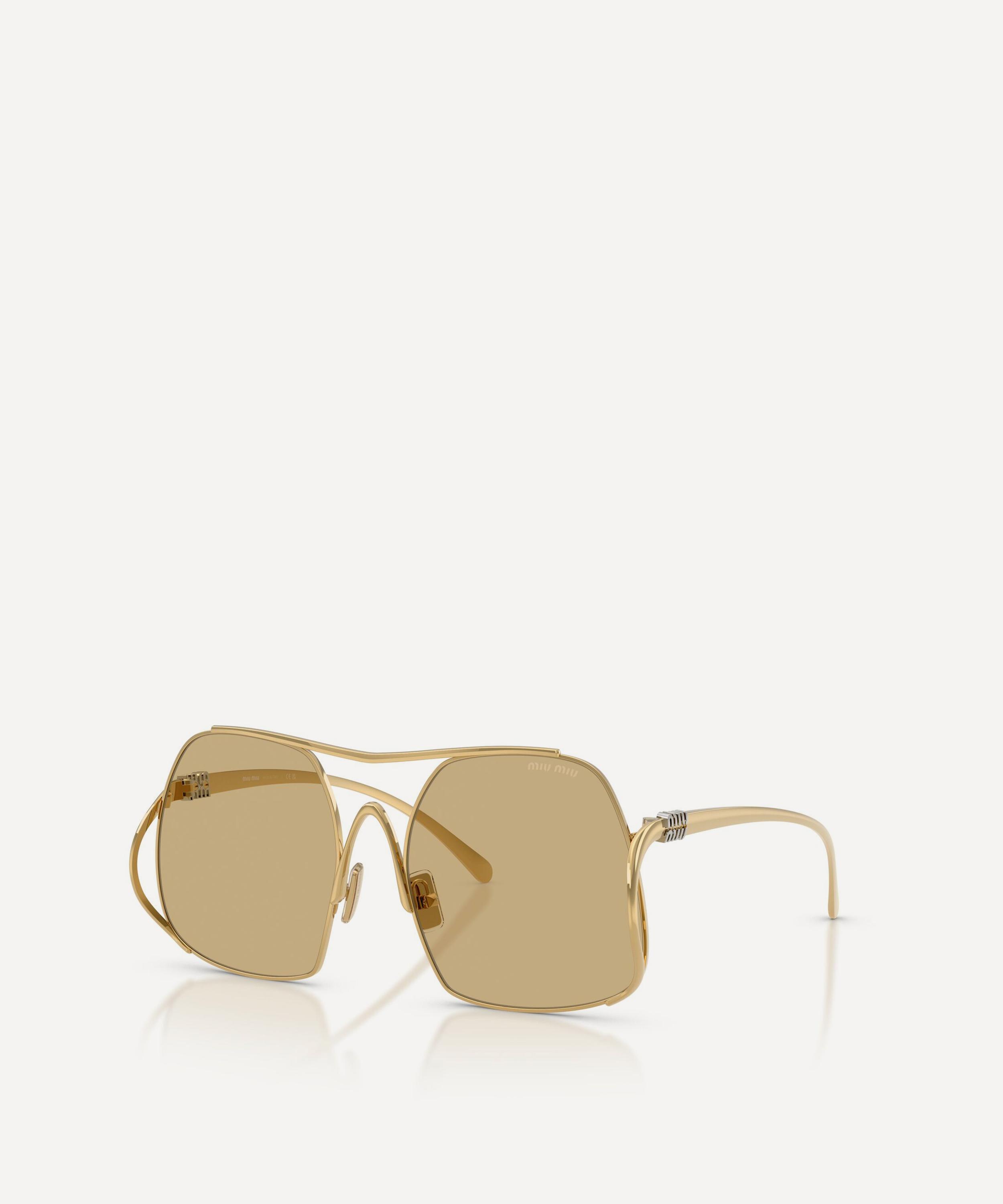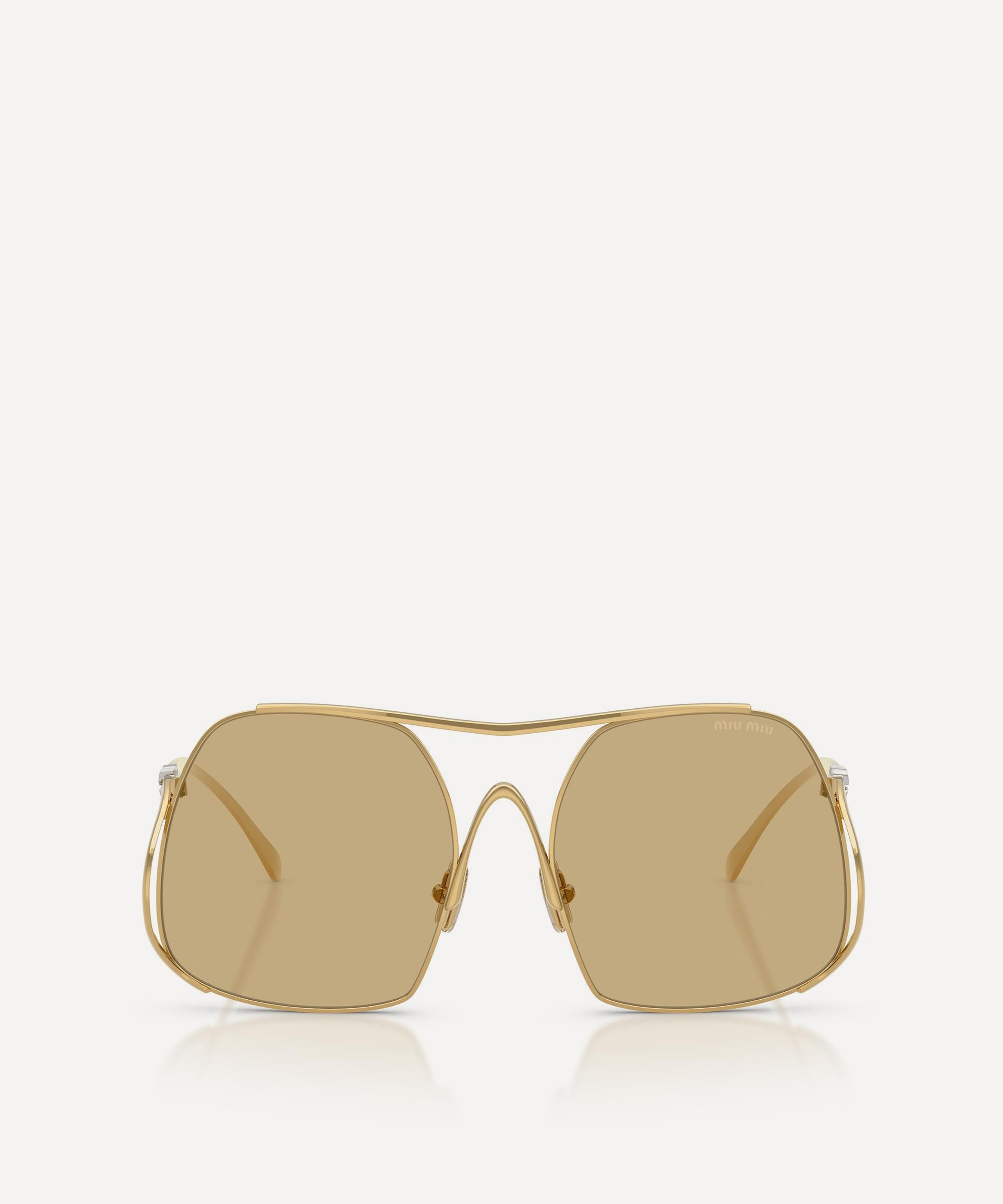 Heighten the impact of any attire with these square sunglasses from Miu Miu. Expertly crafted from gold-tone metal, to create a statement pair that instantly draws the eye, these oversized sunnies are fitted with adjustable nose pads and light-brown lenses to shade and protect your eyes from UV light. Complete with a decorative top bar and the signature branding at the temples, they make for an ultra-chic finish to your curated looks.