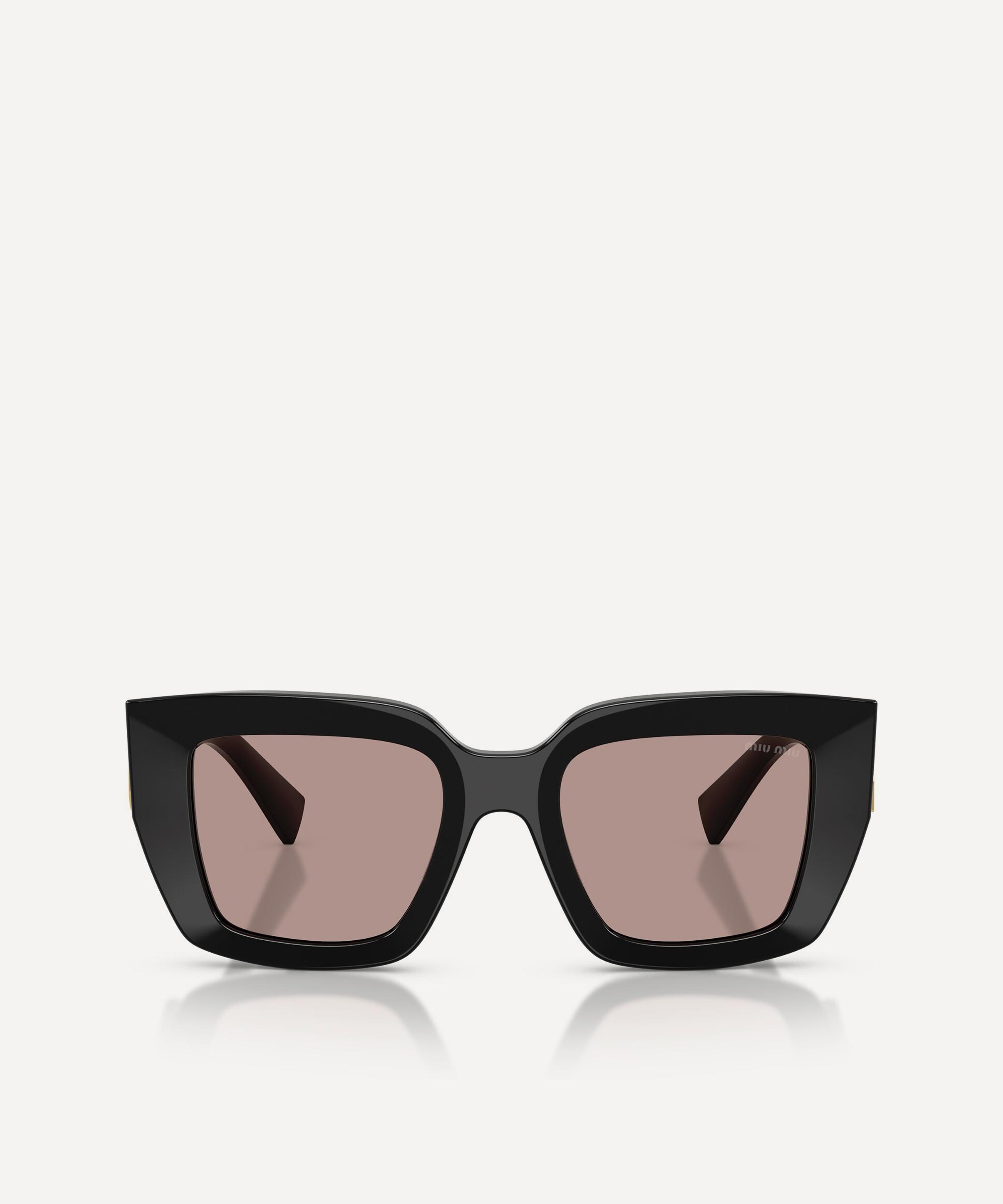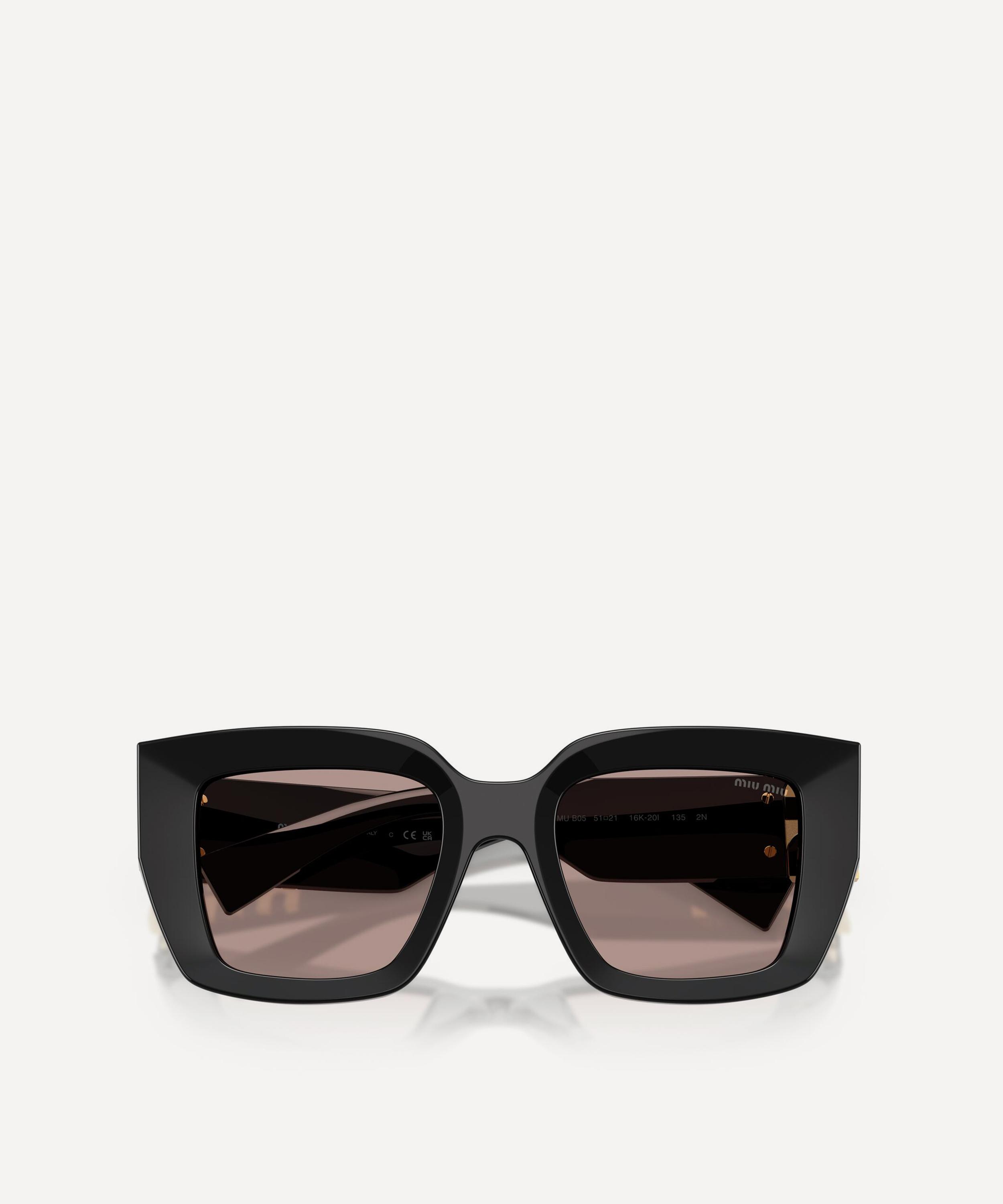 Heighten the impact of any attire with these oversized square sunglasses from Miu Miu. Expertly crafted from black acetate, to create a statement pair that instantly draws the eye, these sunnies are fitted with a comfortable saddle nose bridge and light-purple-brown lenses to shade and protect your eyes from UV light. Complete with signature branding at the temples, they make for an ultra-chic finish to your curated looks.