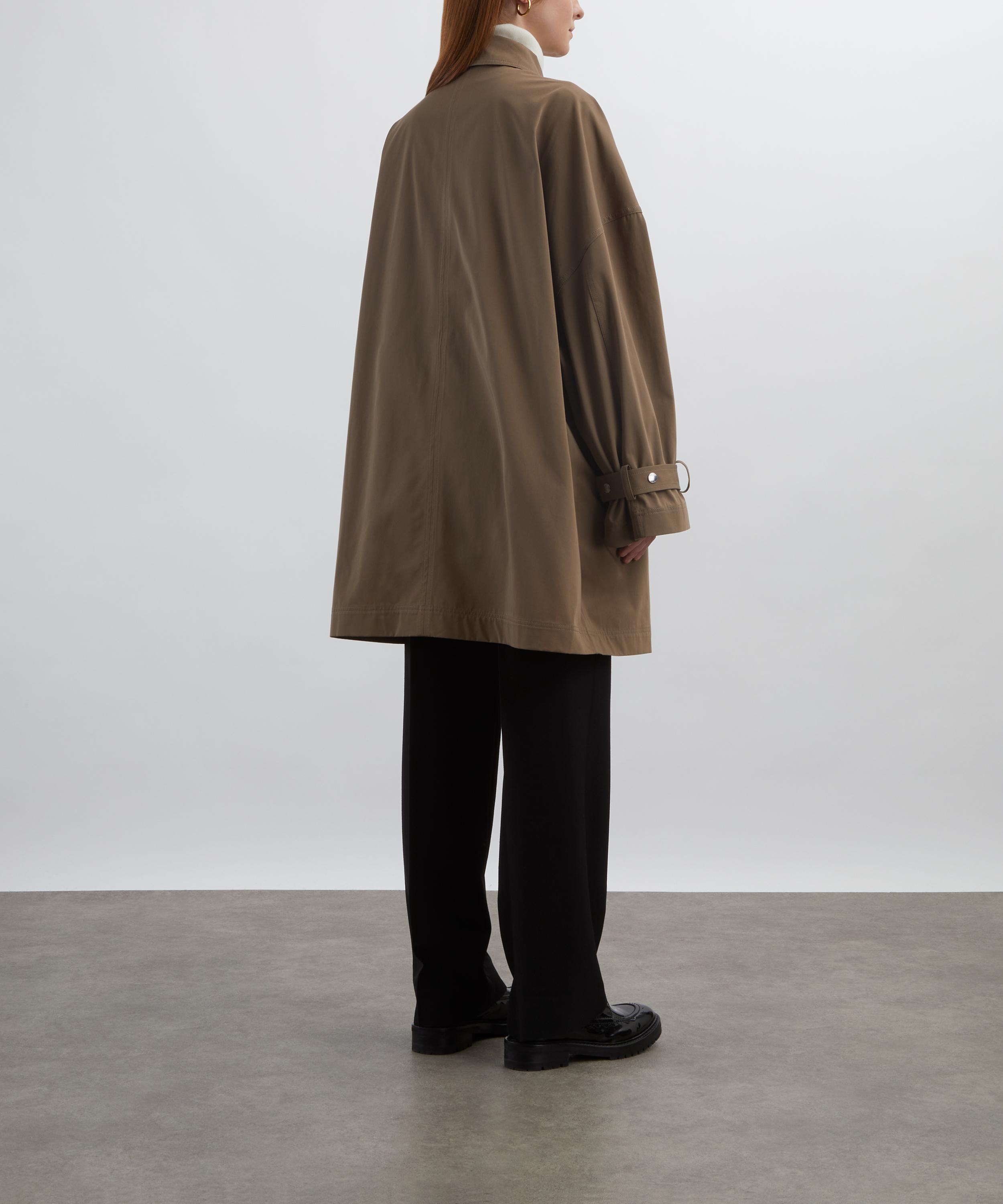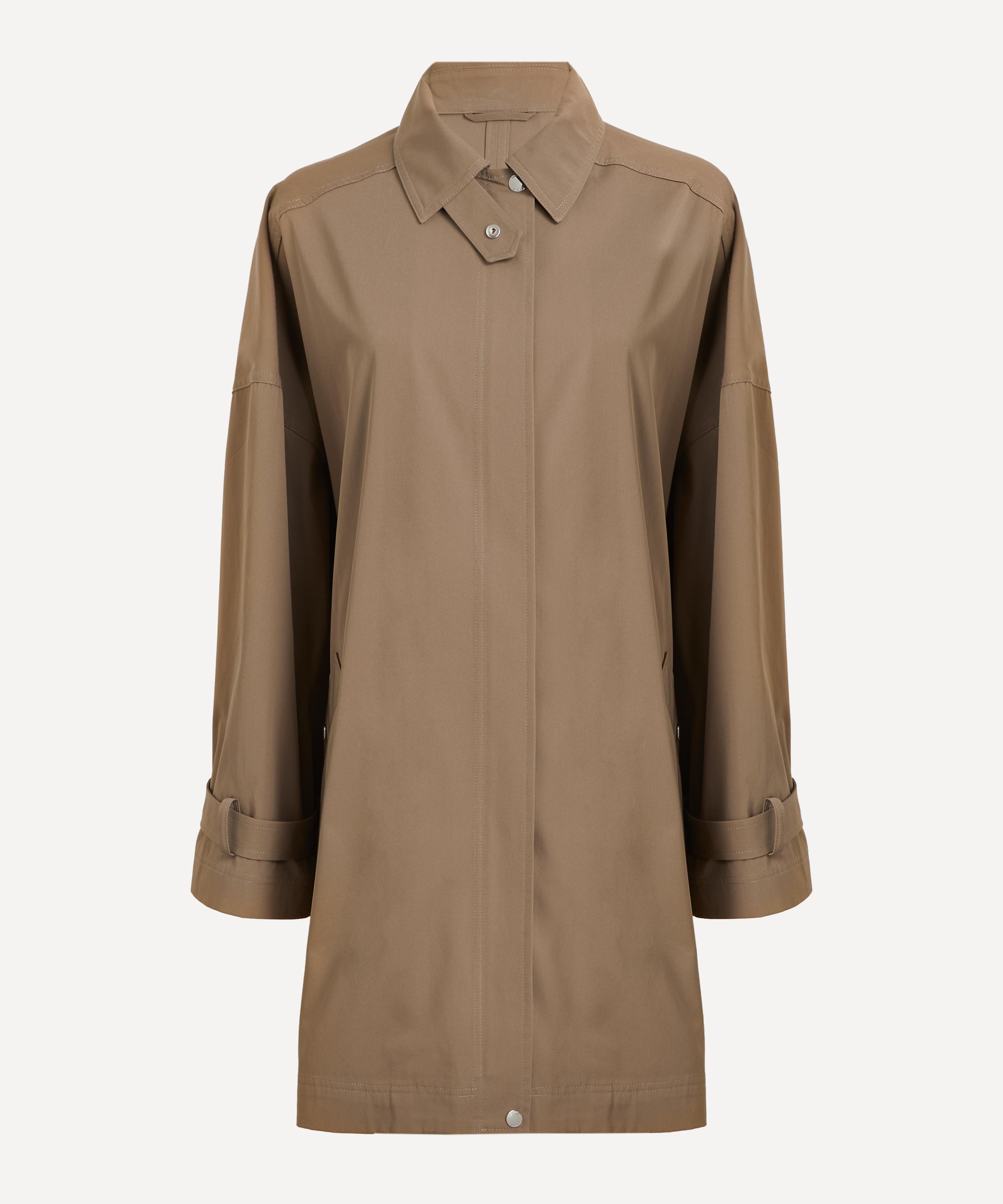 Crafted from crisp cotton for an oversized fit, this A-line jacket has been infused with subtle trench coat accents, including adjustable cuff belts securing the long sleeves, a collared neckline that can be strapped-up for extra protection against the elements, and two welt pockets at the front for a timeless finish.