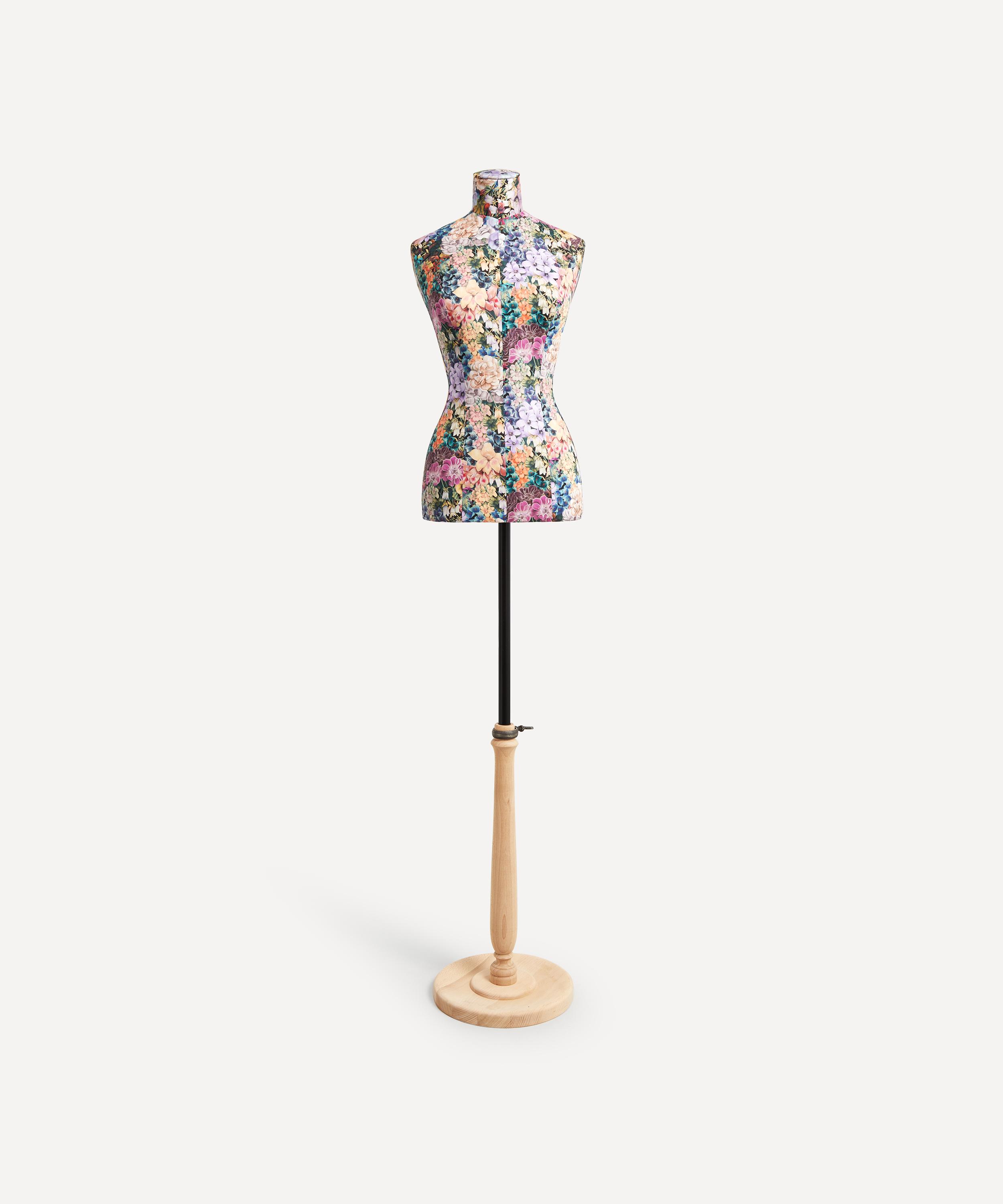 Our Liberty print tailor’s dummy has an adjustable height that makes it perfect for garment display or dressmaking, finished with a turned wooden base. The mannequin is covered with Tana Lawn™ cotton, in our Painted Journey print – a richly oil-painted floral design created in the Liberty Fabrics design studio, paying homage to the life and work of the Victorian botanical artist, explorer and biologist Marianne North.