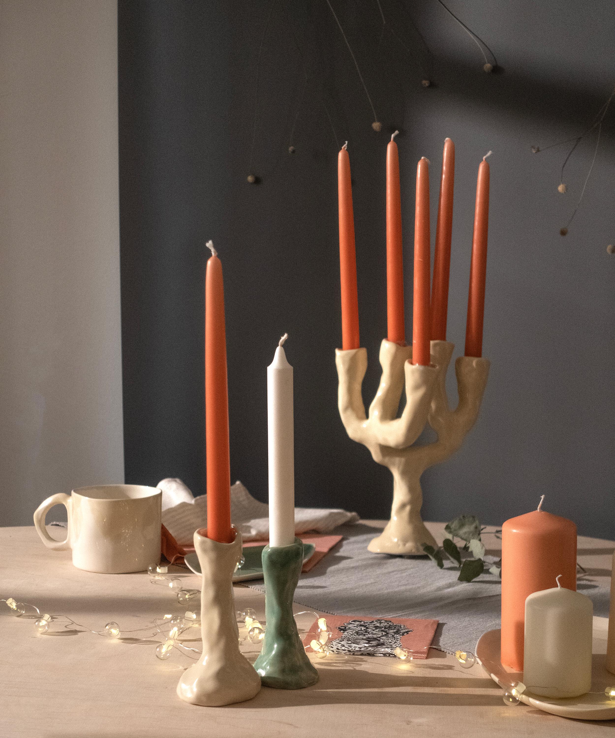 When it comes to table settings Pottery & Poetry believes a pop of colour goes a long way which is why it's crafted this candleholder.