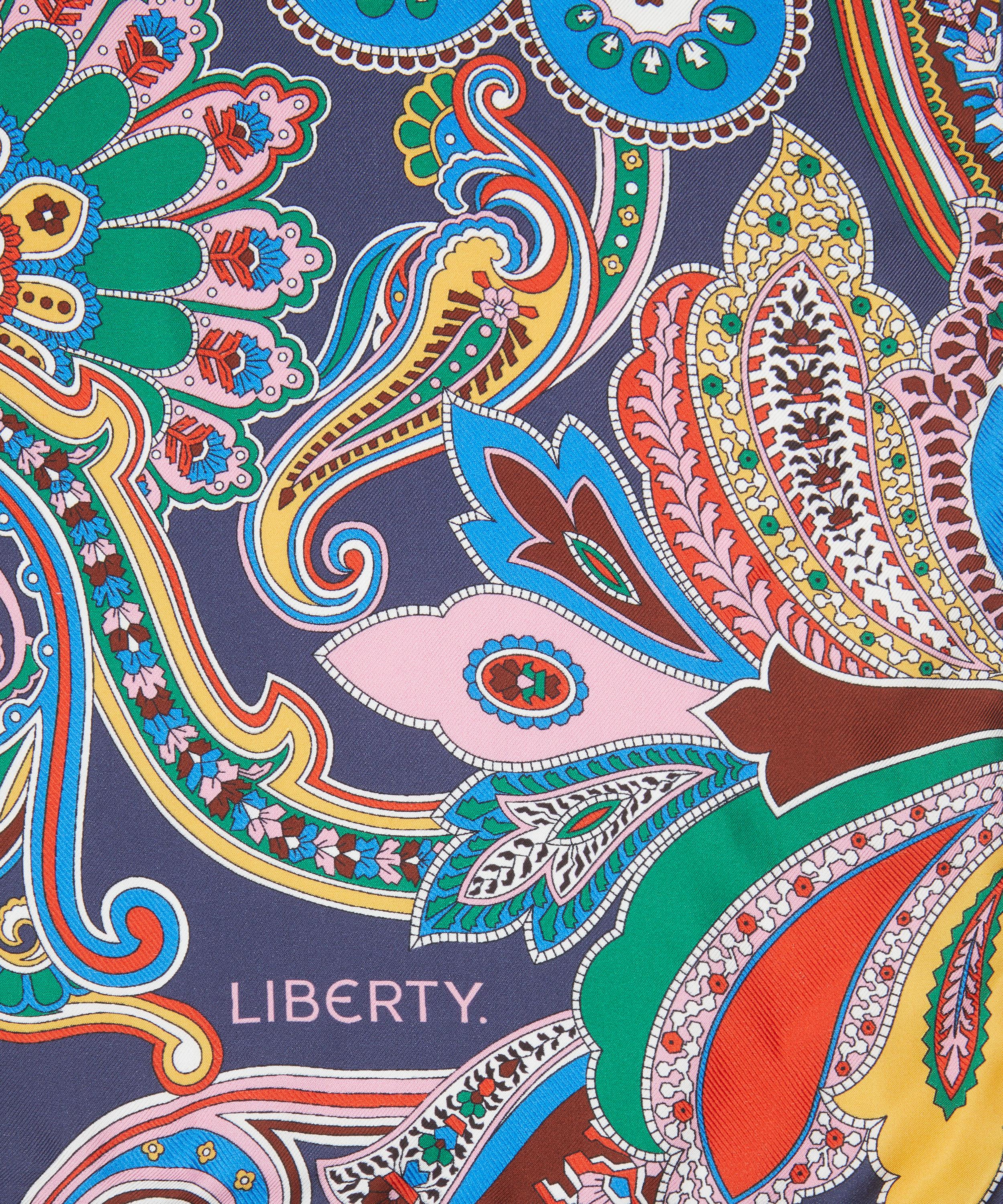 Expertly woven from ultra-soft silk, it showcases a jacquard weave with our iconic Paisley Fanfare print – featuring a theatrical pattern inspired by a rich tapestry of 1950s and 1960s paisley scarf designs from the Liberty archive. Crafted through collaging, transforming, and selective editing, it revitalises the traditional paisley motif with a spontaneous interplay of unfinished and intricately detailed elements. Bursting with colour and vitality, this versatile and timeless accessory staple will bring a refreshing lift to your wardrobe. Drape it loosely over breezy tailoring, knot it close to the neck for a pop of colour or weave it through your hair for an effortless statement – the styling possibilities are endless.