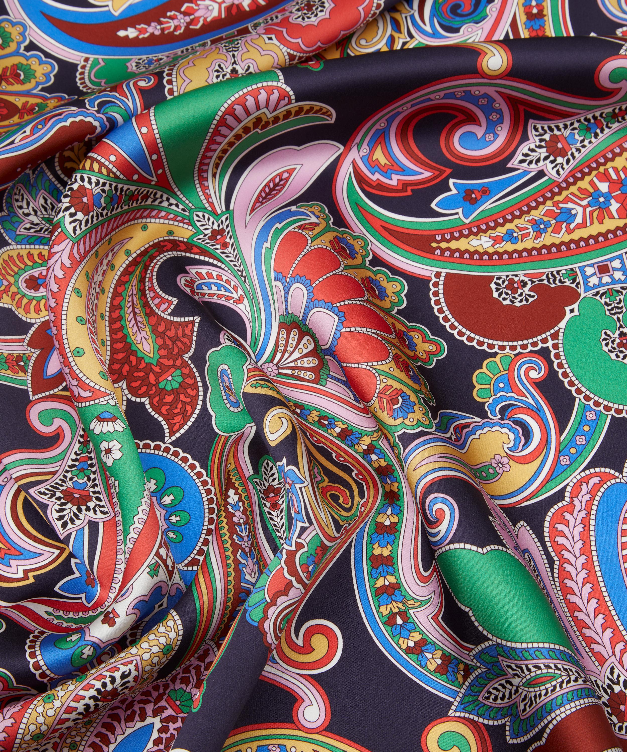 The design is printed by experts in Italy onto our elegant, reflective 16 momme Belgravia silk satin – a fabric prized for its lustrous drape and fluidity, along with its luminously high-shine surface. Construct it into eveningwear pieces such as sheath gowns, or use it to create opulently wearable daytime designs like wrap dresses and flowing shirting.