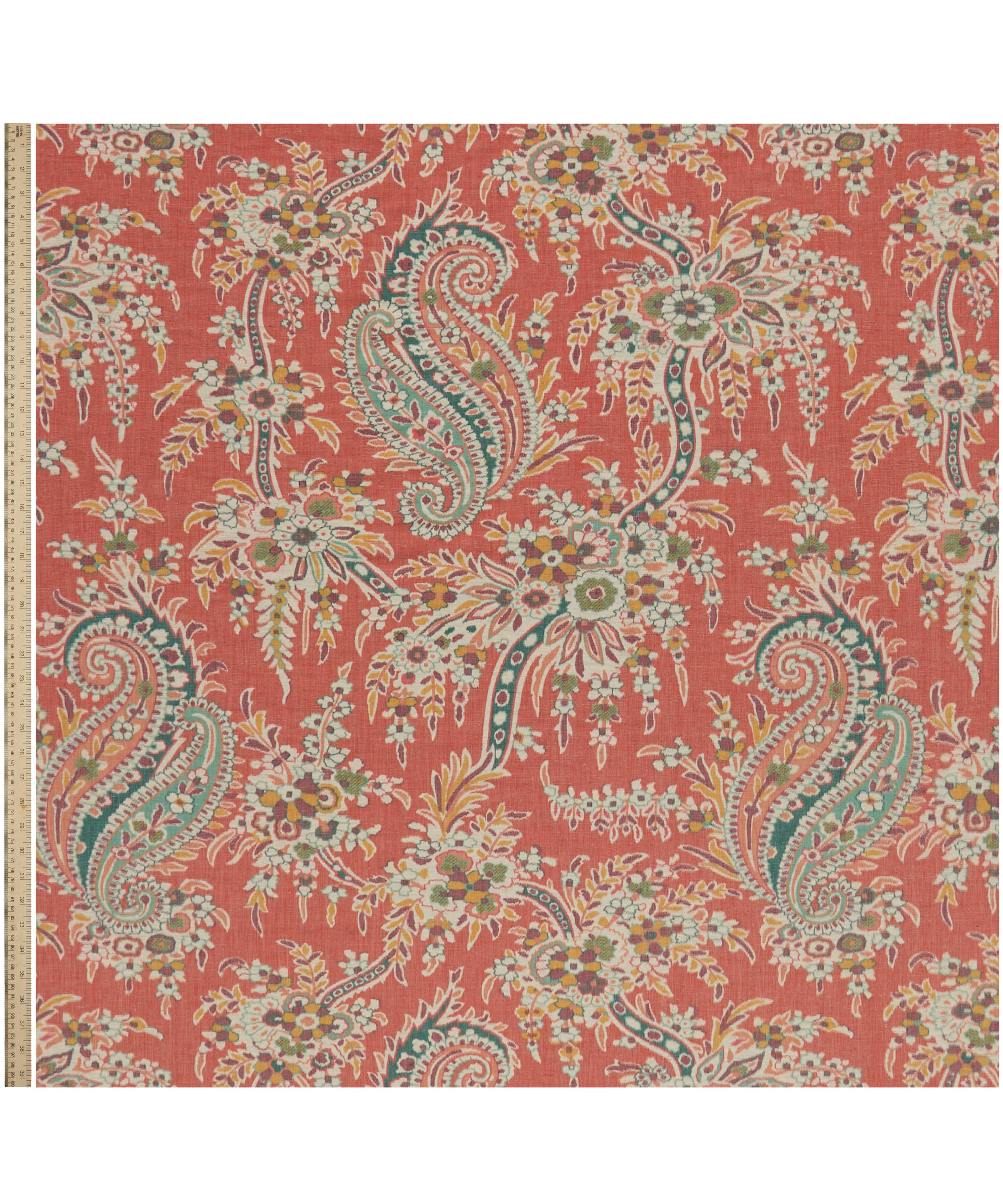Discovered in one of Liberty’s archival pattern books, Paisley Willow is a weave interpretation of Palm Willow. Carefully redrawn and reimagined to preserve the exquisite intricacy of the original design. This traditional paisley floral, infused with a tropical twist, features an abundant garden of trailing vines, feathery fronds, and jewel-like blossoms, all nestled among elegant boteh paisleys. Paisley Willow is warp printed on a cotton blend, offering a blurred ikat effect - suitable for light upholstery, drapery, cushions, and accessories.