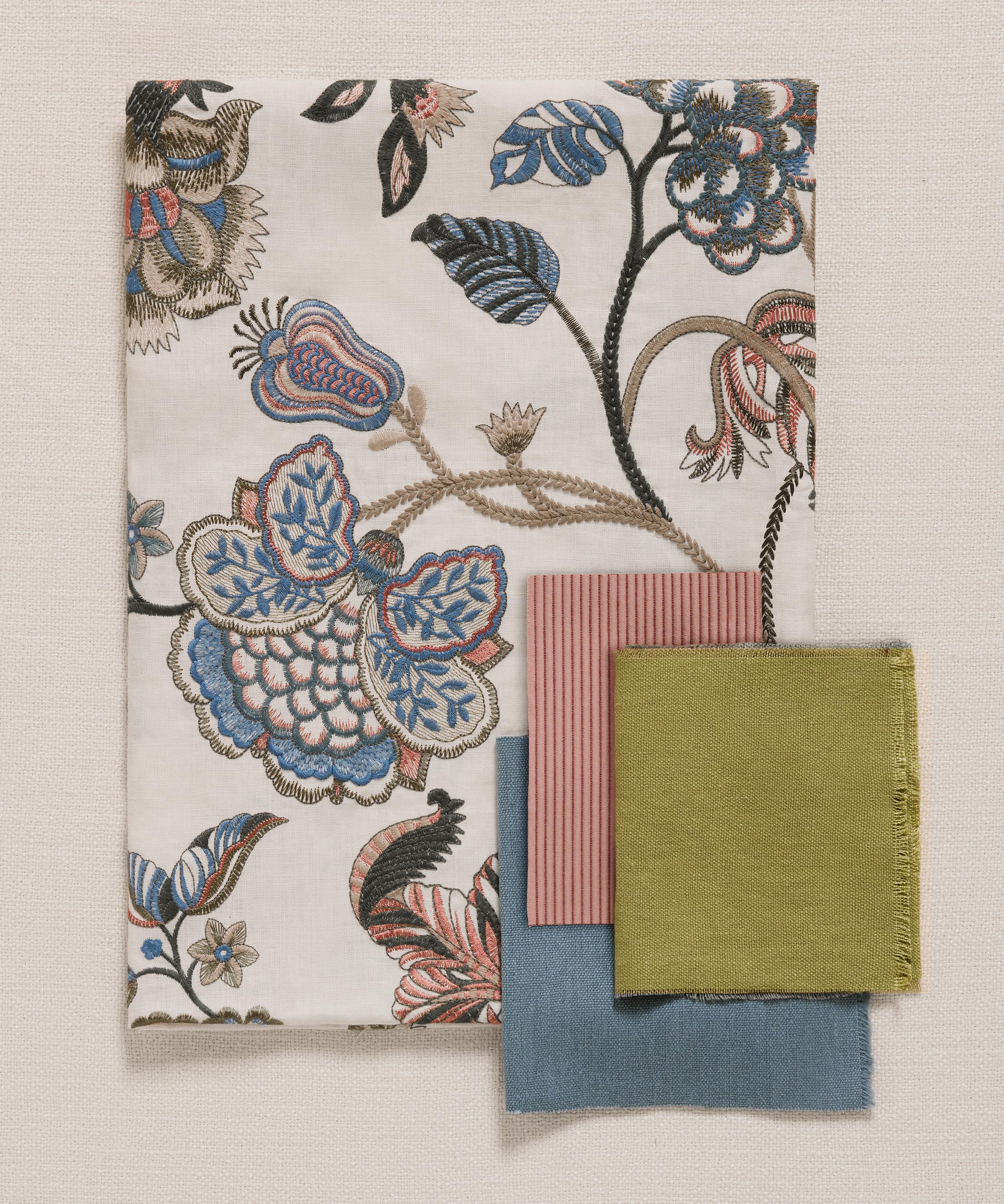The Botanical Atlas fabric collection celebrates our historic lineage of craftsmanship and design through a cross-pollination of styles and visual narratives. Richly layered embroideries, opulent textured weaves, and contemporary printed velvets and linens are juxtaposed with a selection of elegant stripes and mesmerising geometrics - expertly crafted using traditional and cutting-edge techniques in Italy, Belgium, and India. Taken from an antique Tree of Life design within the Liberty archive, Palampore Embroidery has historically appeared as a best-selling scarf design.