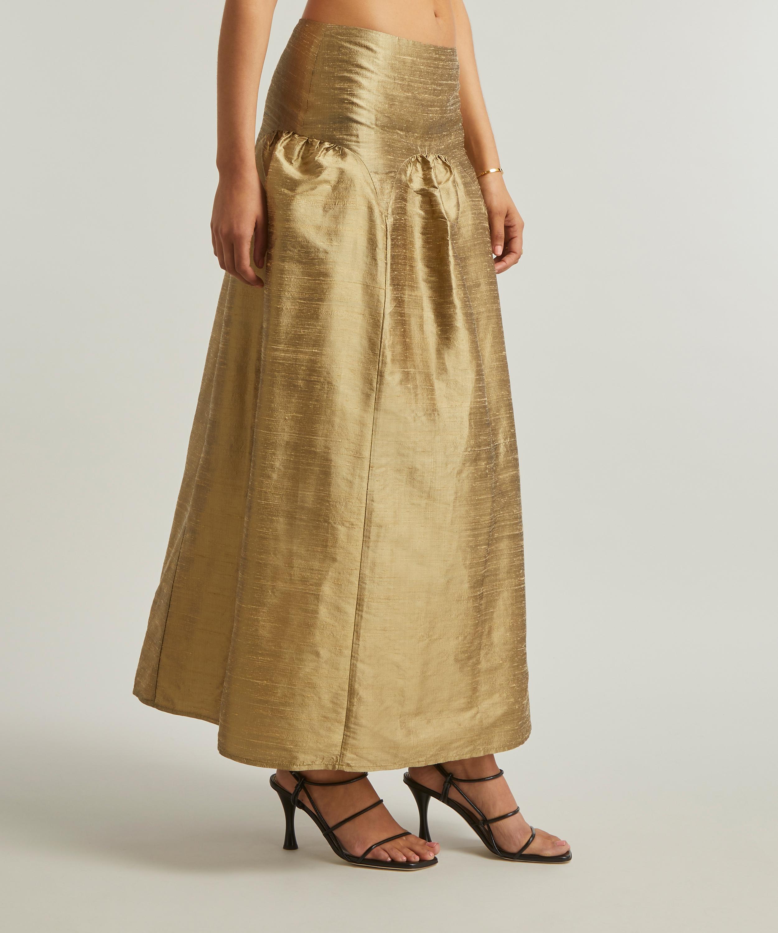Celebrate the act of getting dressed with the Pallon maxi-skirt from Barcelona-based label Paloma Wool, a statement addition to any ensemble. Crafted in Spain from pure silk with a raw, rustic finish, this elegant skirt features a low-rise waist, a concealed zip in the side seam and is detailed with gathered panels for a playful puffy finish.
