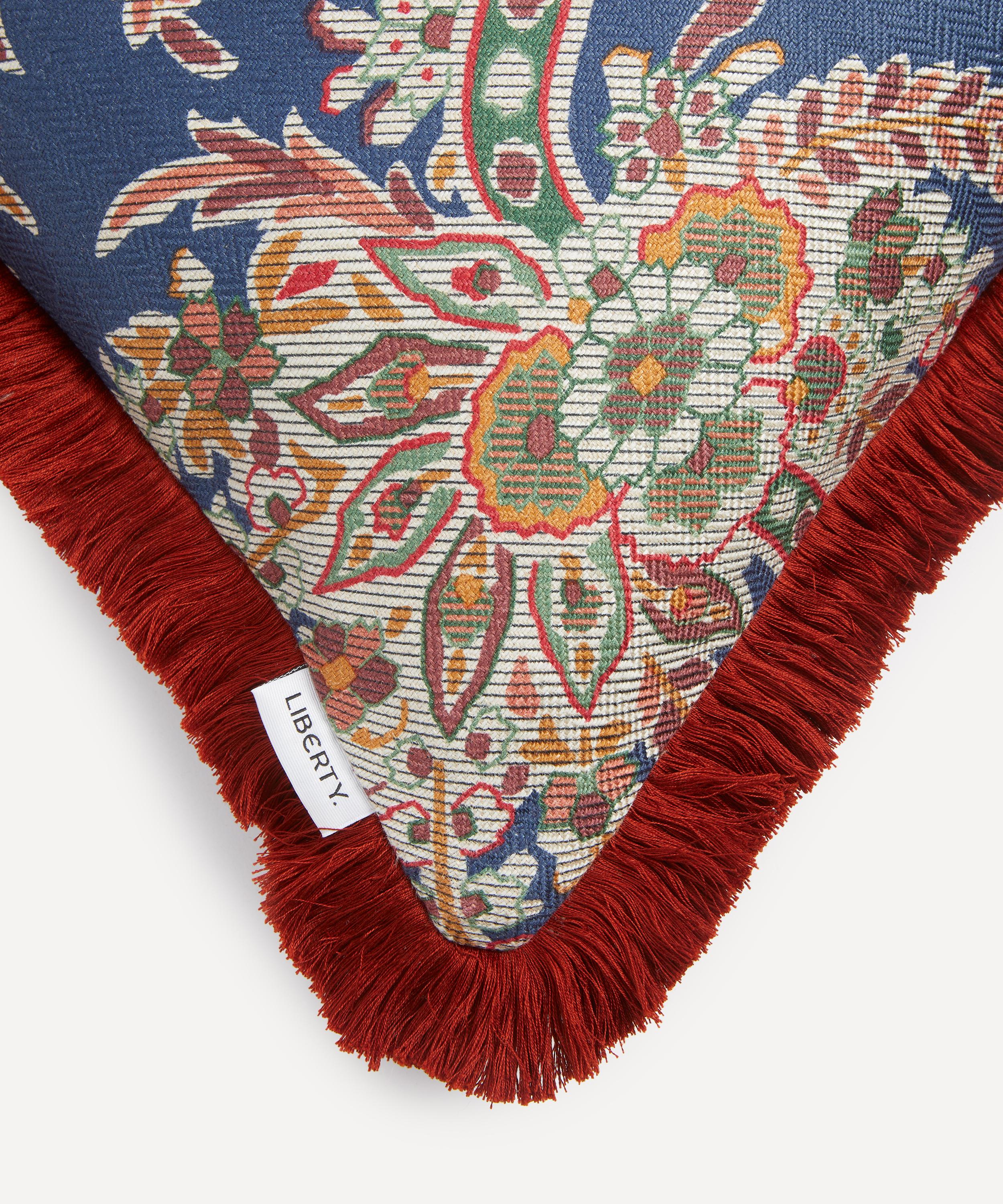 This Liberty square cushion features our Palm Willow print and is decadently soft with a plump recycled duck feather filling. Created in the Liberty design studio, Palm Willow – a traditional paisley floral, infused with a tropical twist – appears here in a beautifully engineered iteration, complete with a fringed edge for an immaculate finish. The cushion’s classic silhouette and richly hued palette add an elegant twist to modern interiors.
