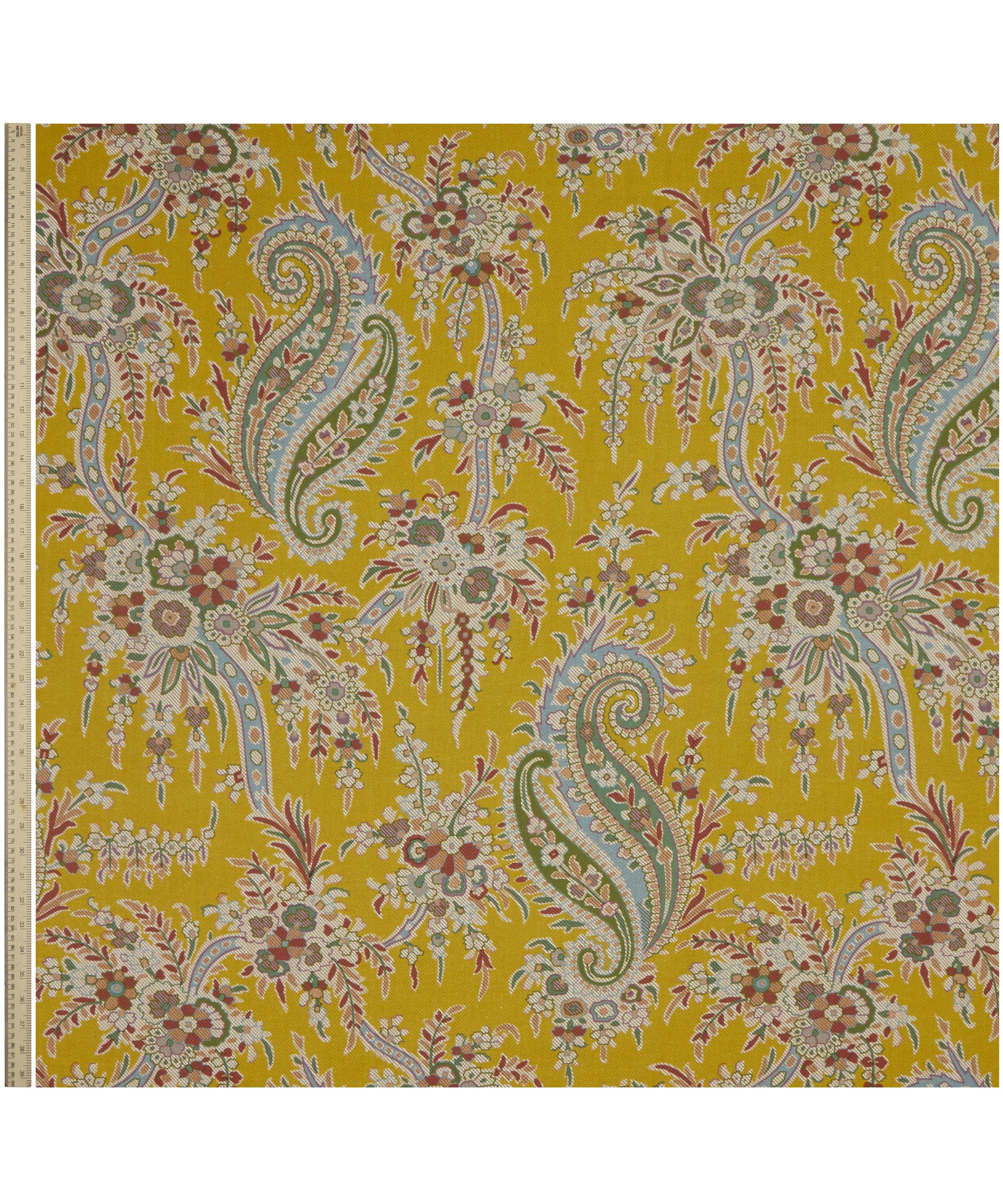 Discovered in one of Liberty’s archival pattern books, Palm Willow was carefully redrawn and reimagined to preserve the exquisite intricacy of the original design. This traditional paisley floral, infused with a tropical twist, features an abundant garden of trailing vines, feathery fronds, and jewel-like blossoms, all nestled among elegant boteh paisleys. Printed in Italy onto a beautiful linen base, Palm Willow is appropriate for upholstery, drapery, cushions, and accessories.