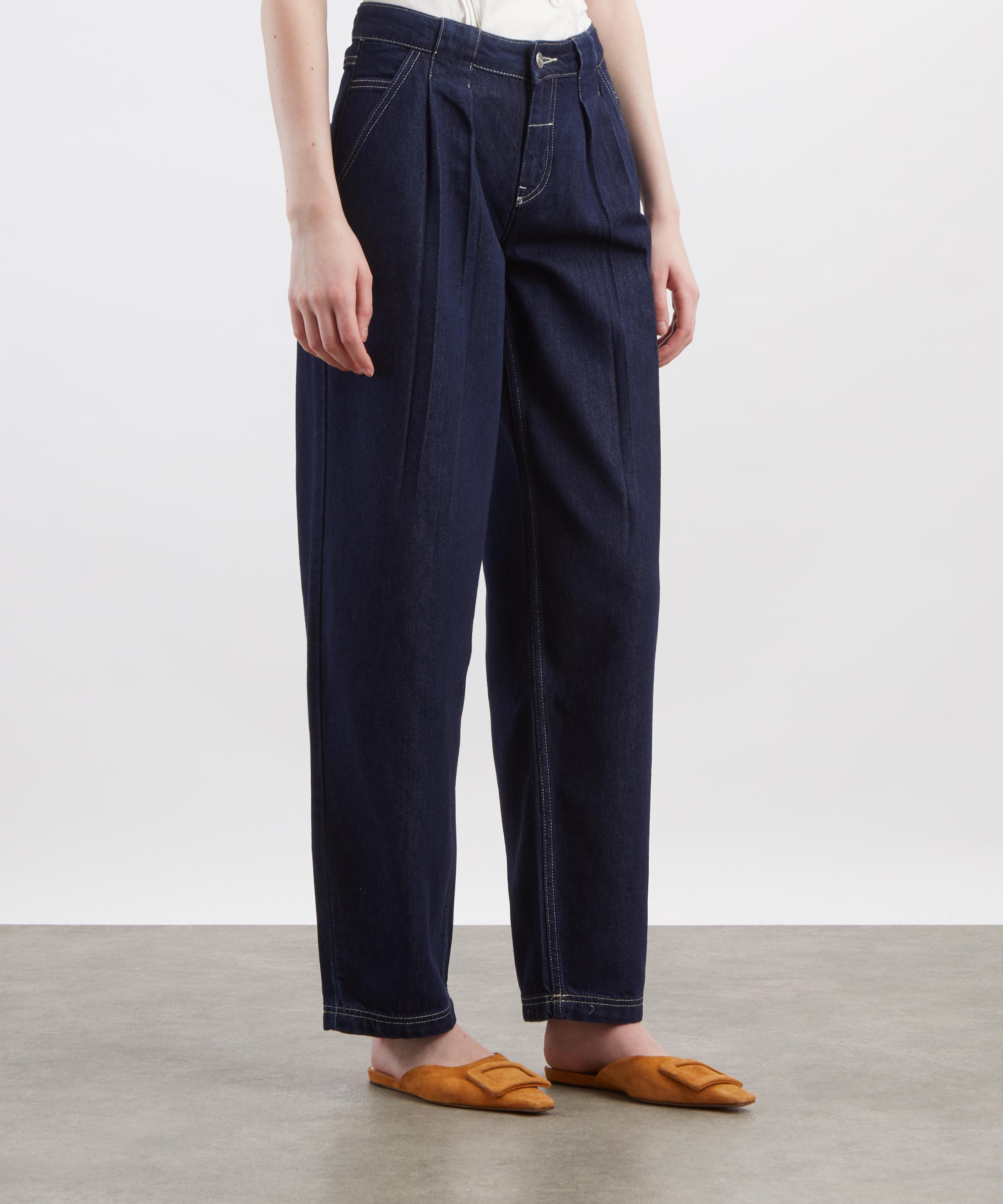 Crafted from cotton-blend denim in a Raw Indigo wash, these jeans are constructed with front pleats, and a curved yoke that falls to a gently tapered ankle that accentuates the subtly fitted hip. Hallmarked with a branded red belt loop, they’re a feminine take on a daily staple and bring a refined feel to your everyday edit.
