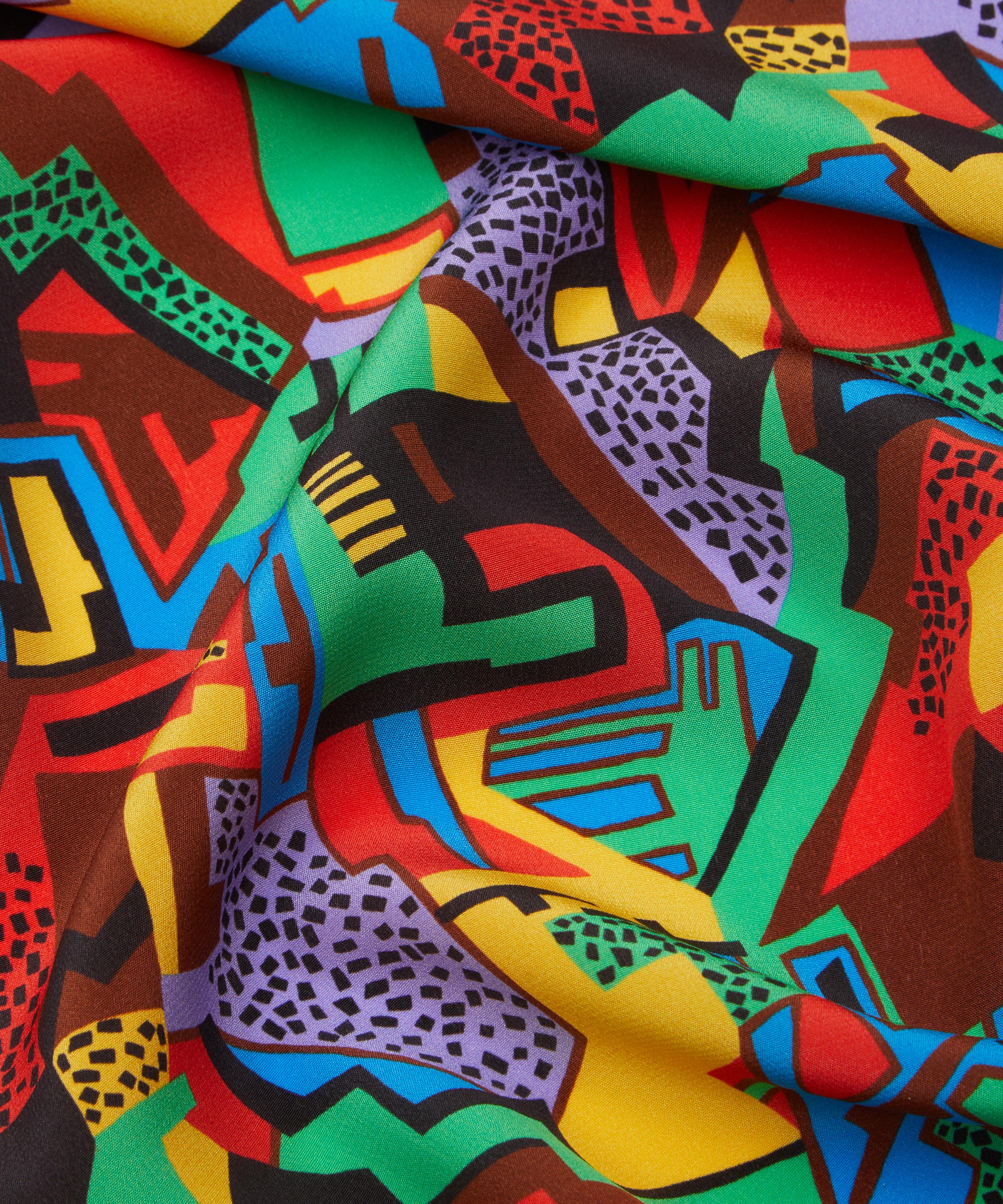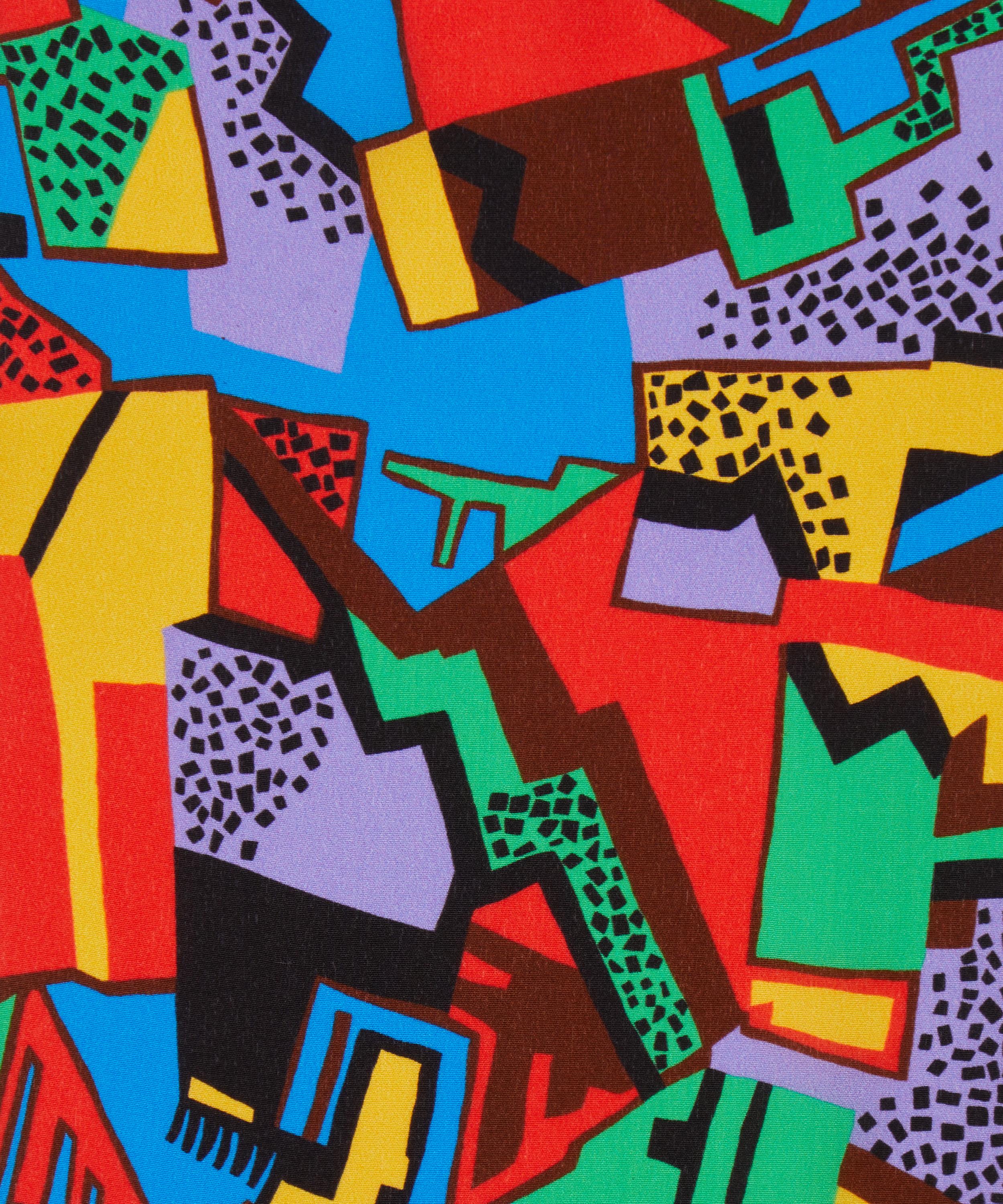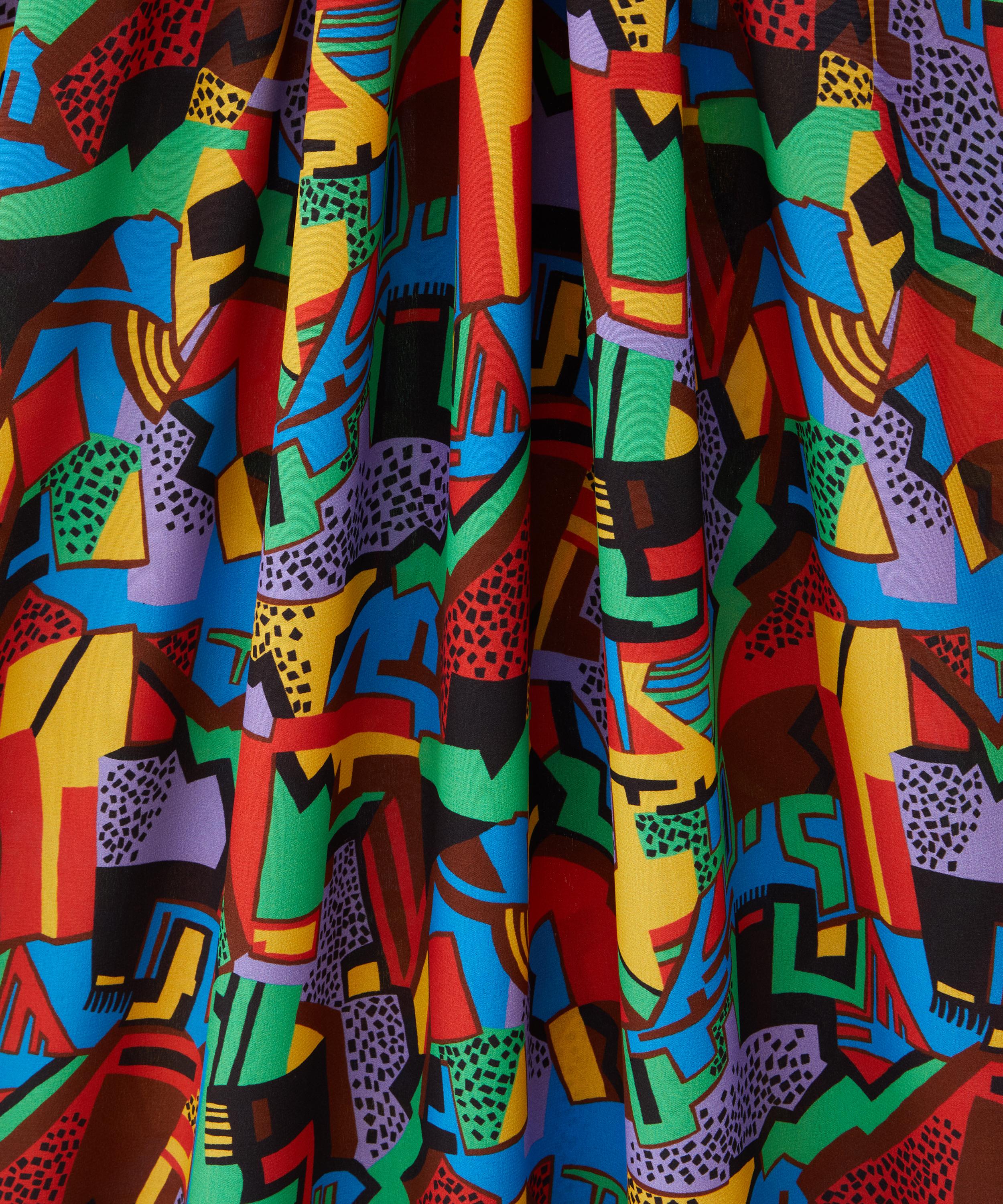 Parade is a reinterpretation of a design at a smaller scale from the Tango Collection, which was originally produced in the 1960s by famed Liberty designer, Bernard Nevill. This design features bold geometric shapes evocative of a futurist industrial cityscape.
