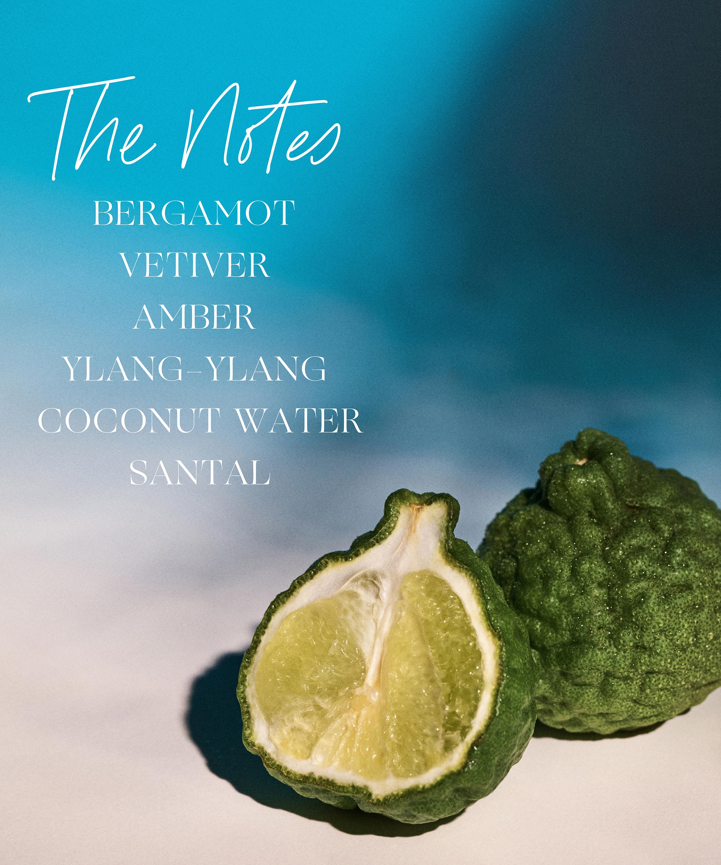 - Base Notes: Amber, Santal, Coconut Water, Vetiver