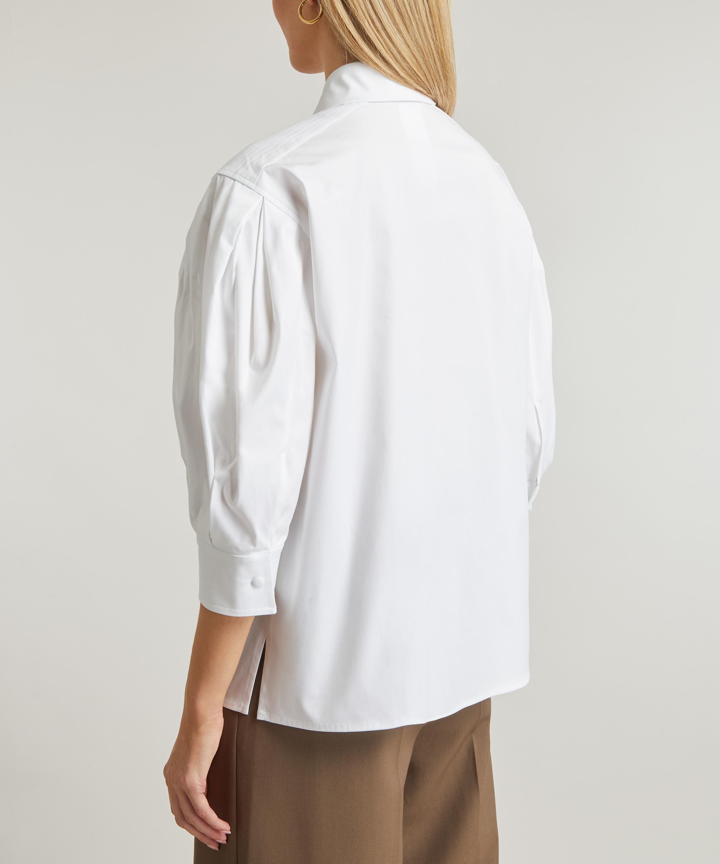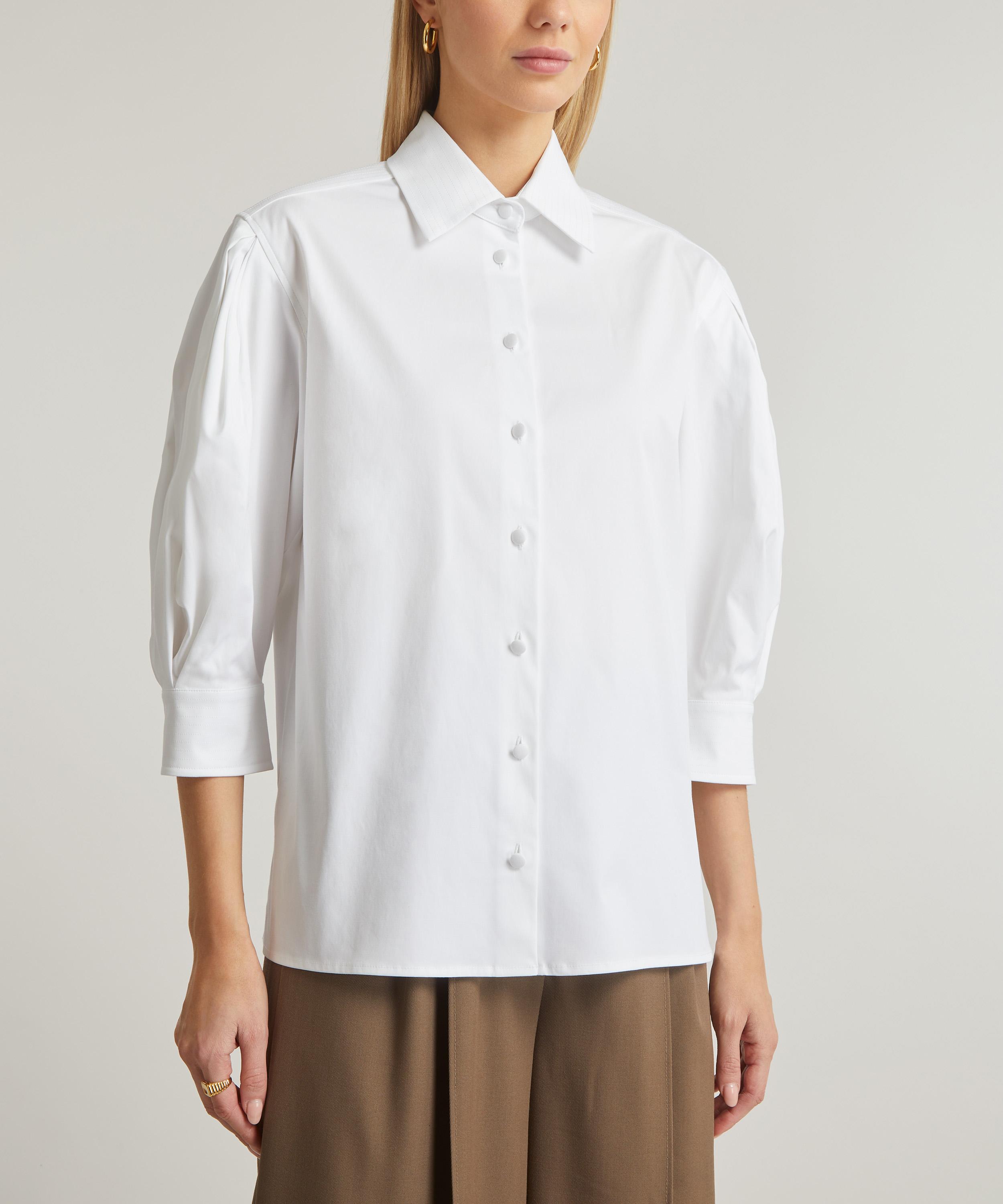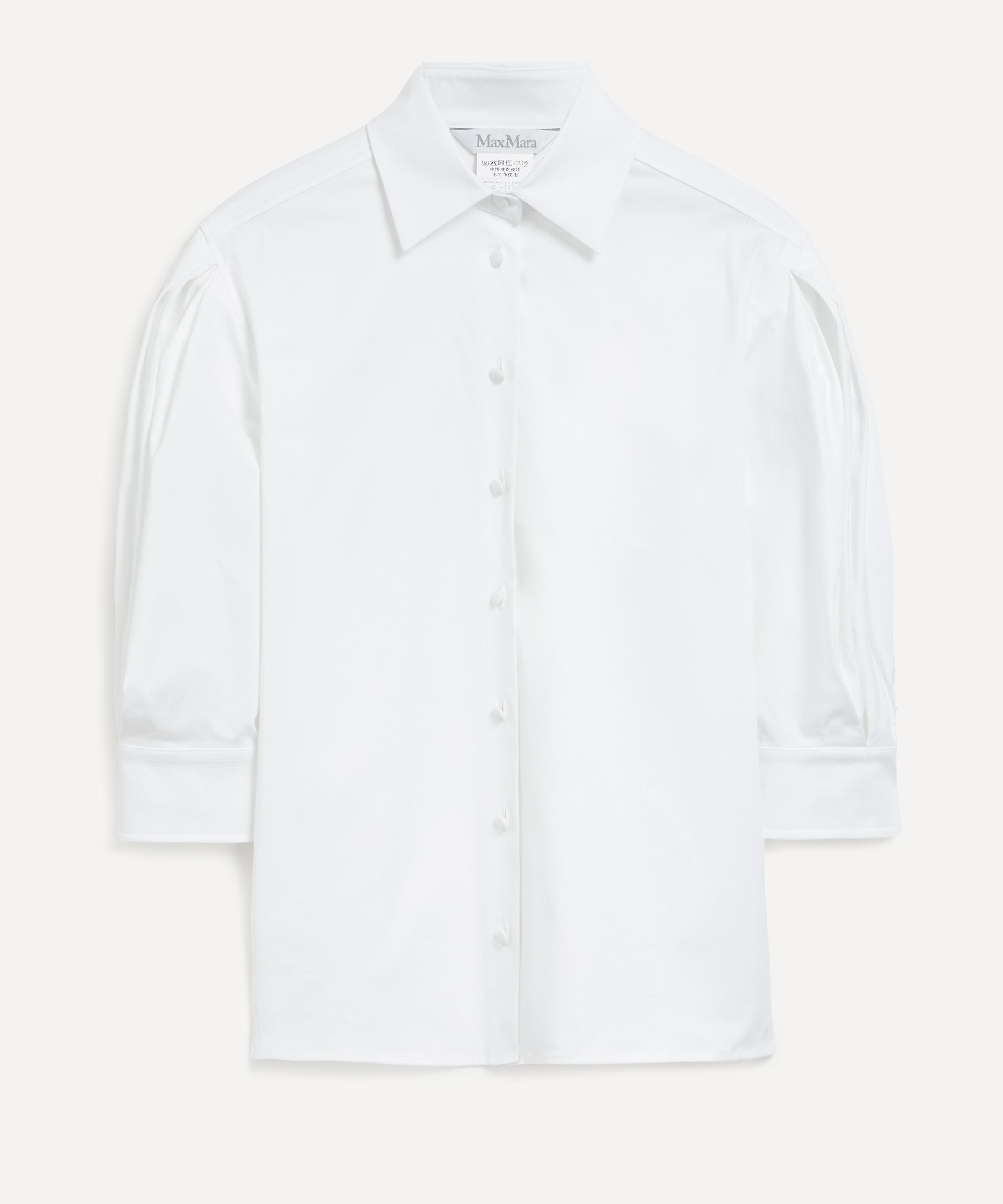 Max Mara showcases its dedication to wearable luxury with this contemporary take on the classic white shirt. Crafted from crisp cotton with a hint of stretch, it’s tailored to a relaxed fit with loose shoulders and voluminous balloon-sleeves for a sculptural silhouette.