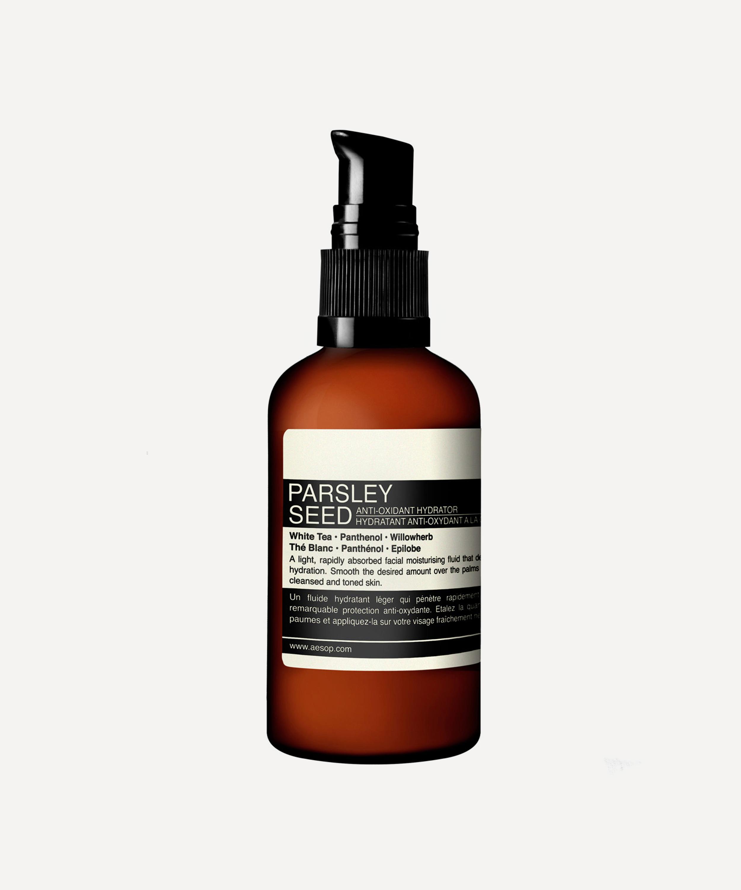 Aesop Parsley Seed Anti-Oxidant Hydrator is a light, rapidly absorbed daily moisturiser packed with nourishing botanicals to replenish and protect skin.