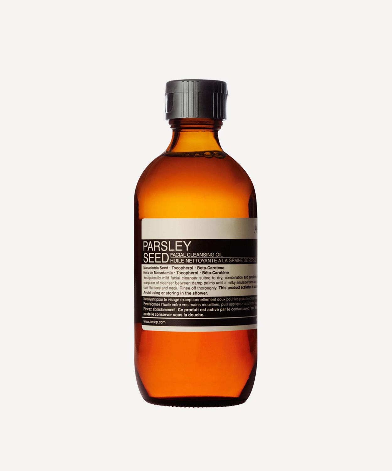 Aesop Parsley Seed Facial Cleansing Oil is packed with nourishing botanicals and fatty acids to melt away all traces of makeup whilst calming skin.