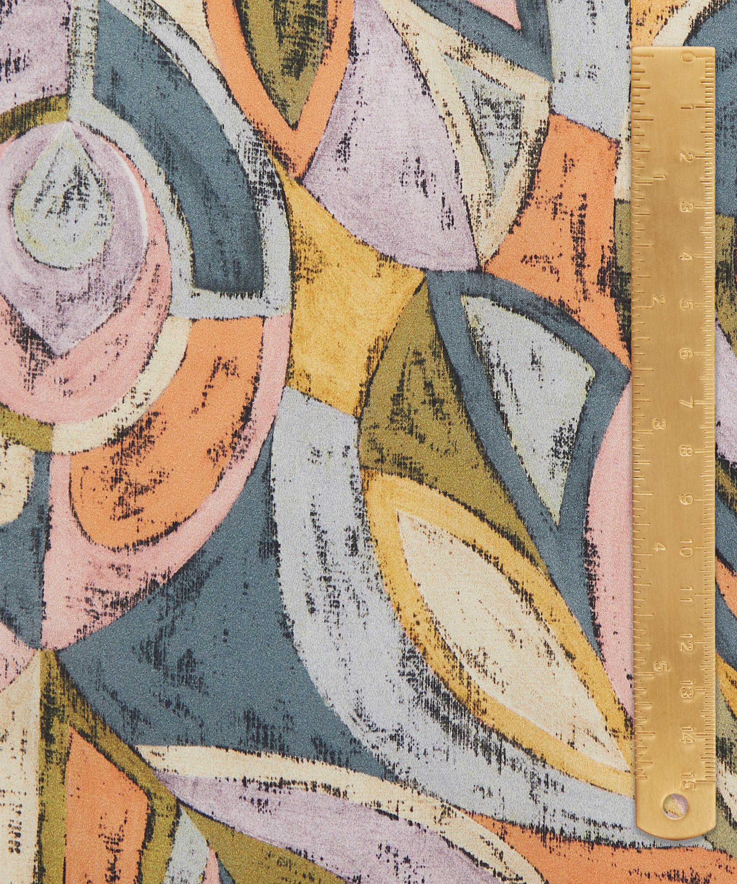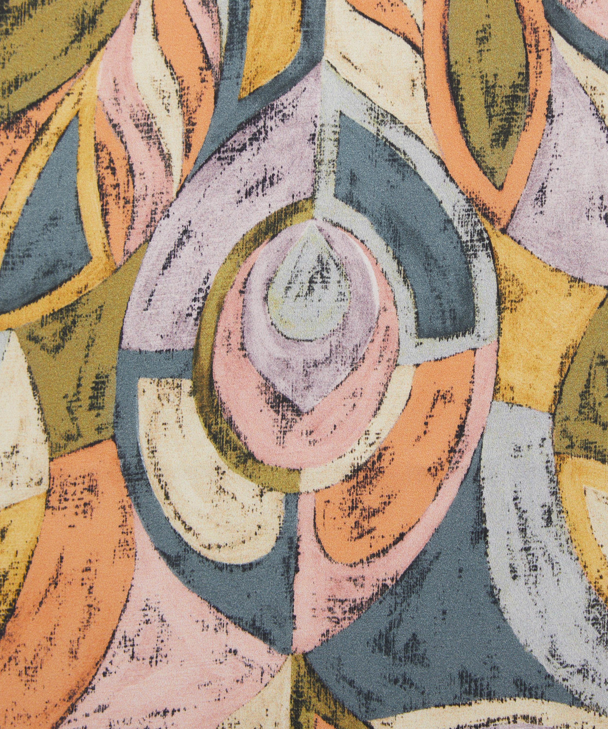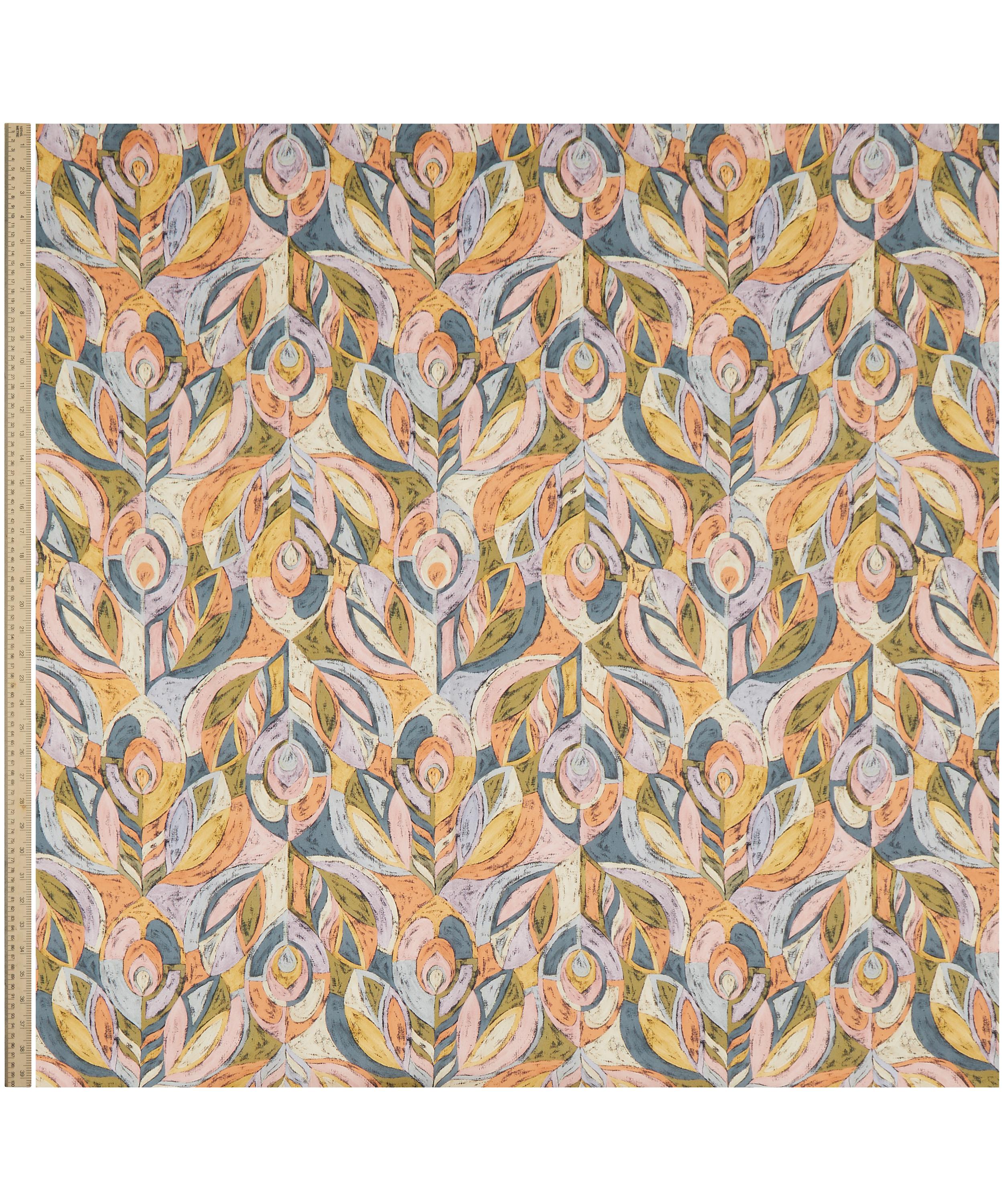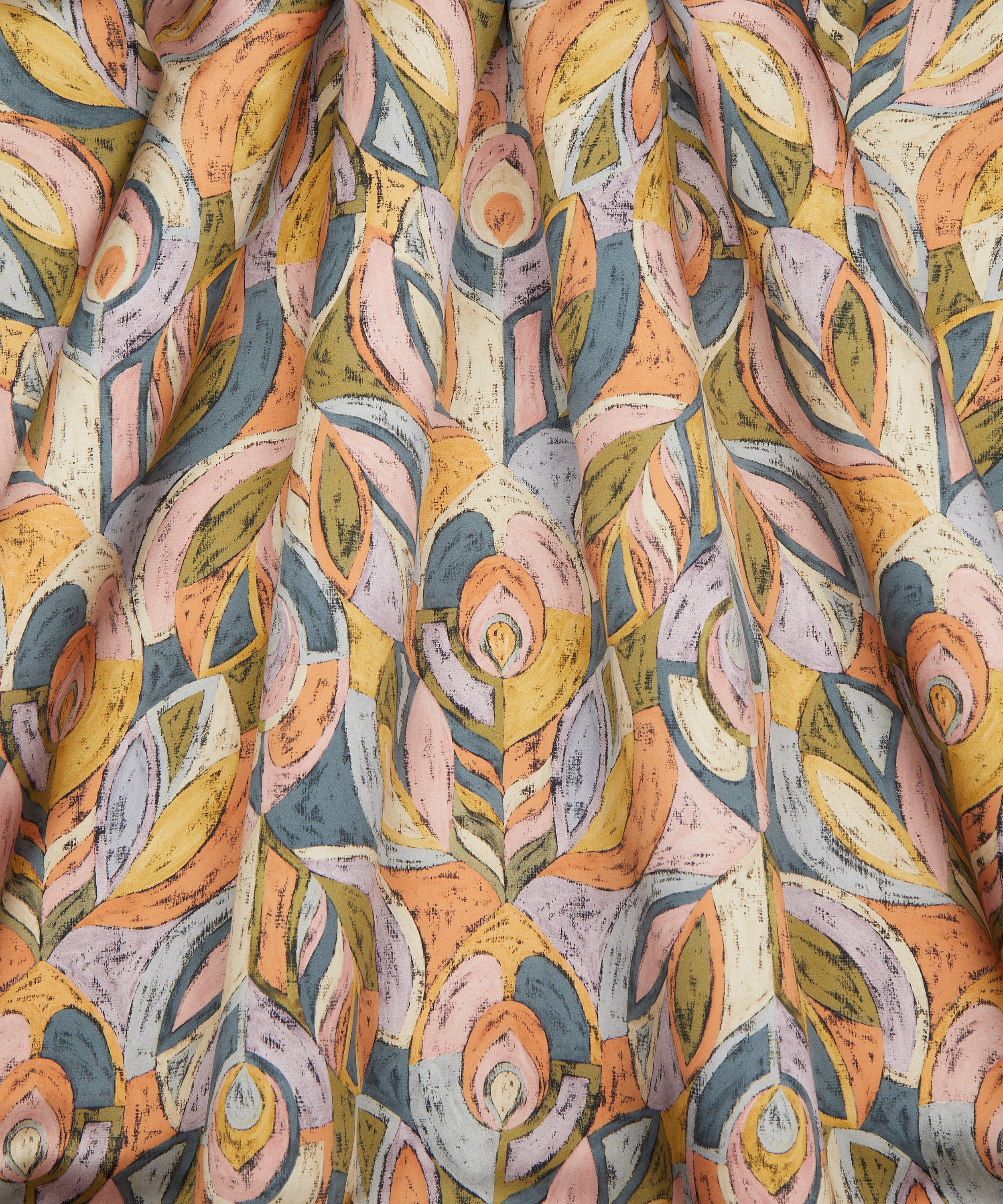 Pastel Peacock was inspired by a pendant design discovered in a book of Liberty jewellery illustrations originating from the turn of the 20th century. Featuring a simplified rendition of a peacock feather motif, the pencil-drawn sketch was reimagined with richly textured, acrylic paint. Flowing both vertically and horizontally across the fabric, this graphic pattern is imbued with a sense of alternating movement. This print is part of the Craftsmanship narrative of this collection, exploring the creative process from within the Liberty archive, from print impressions and embroidered studies, to ceramics, jewellery, and furniture. Uncover the origins of the designers’ musings through artworks inspired by their sketchbooks and prototypes.