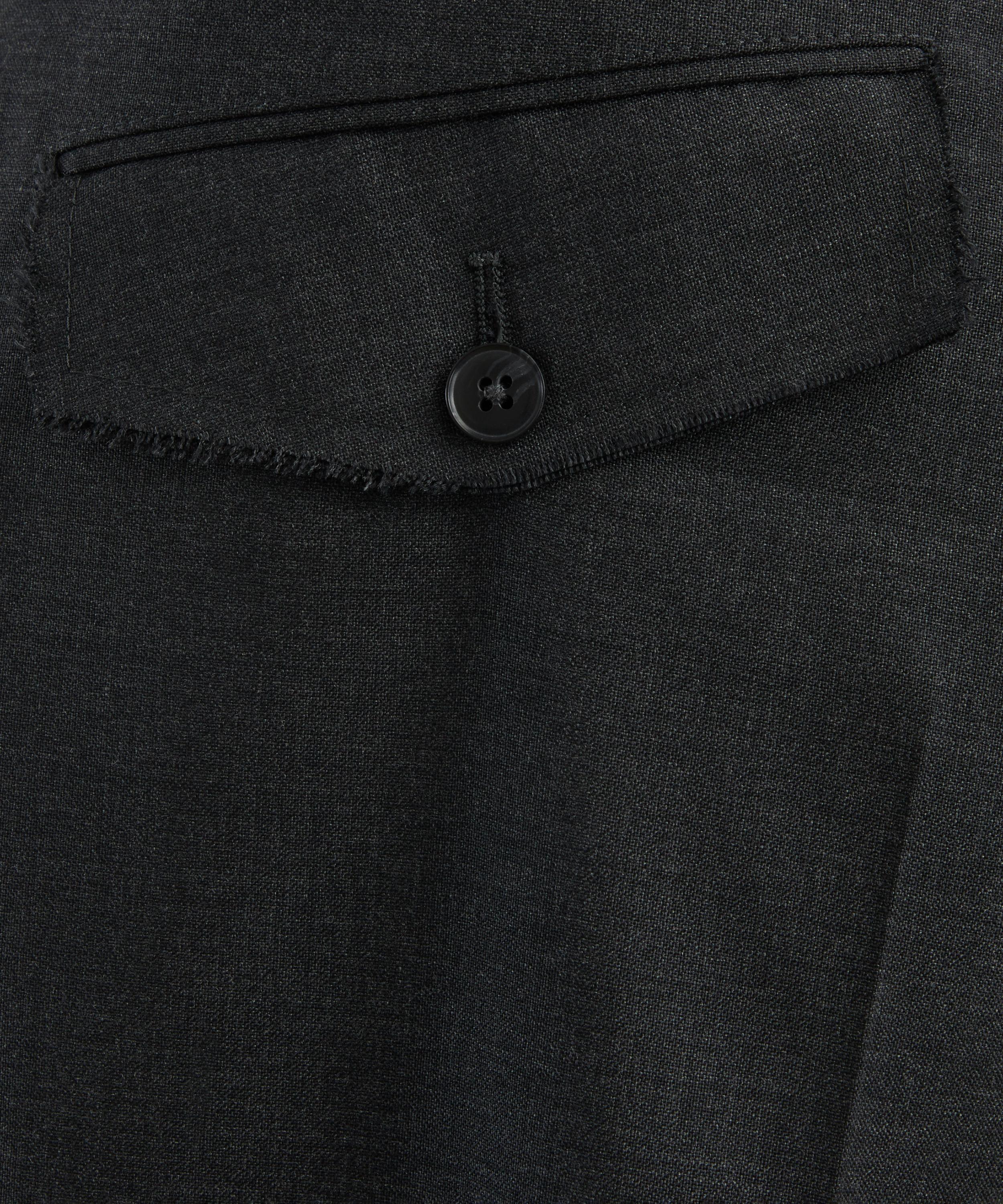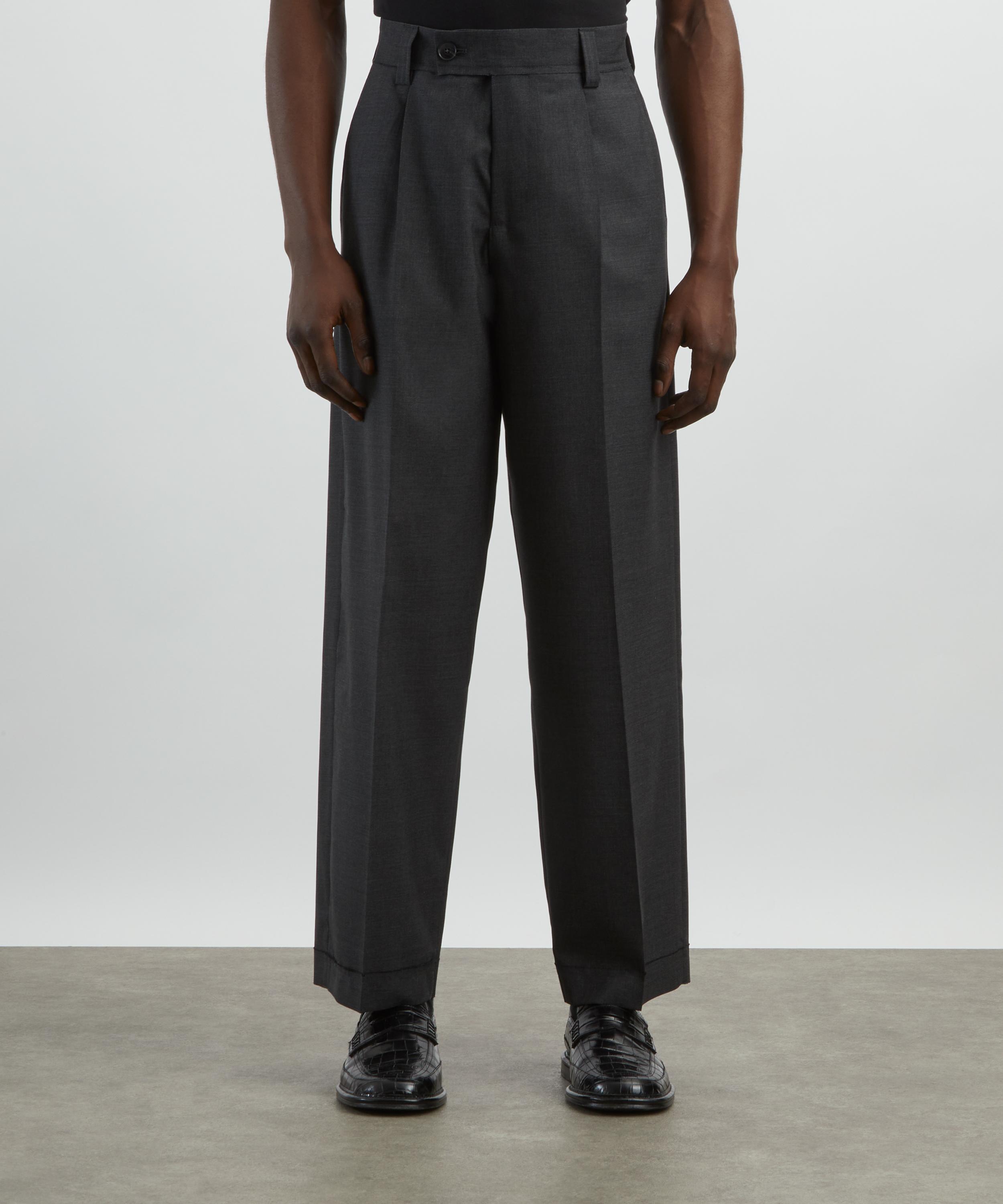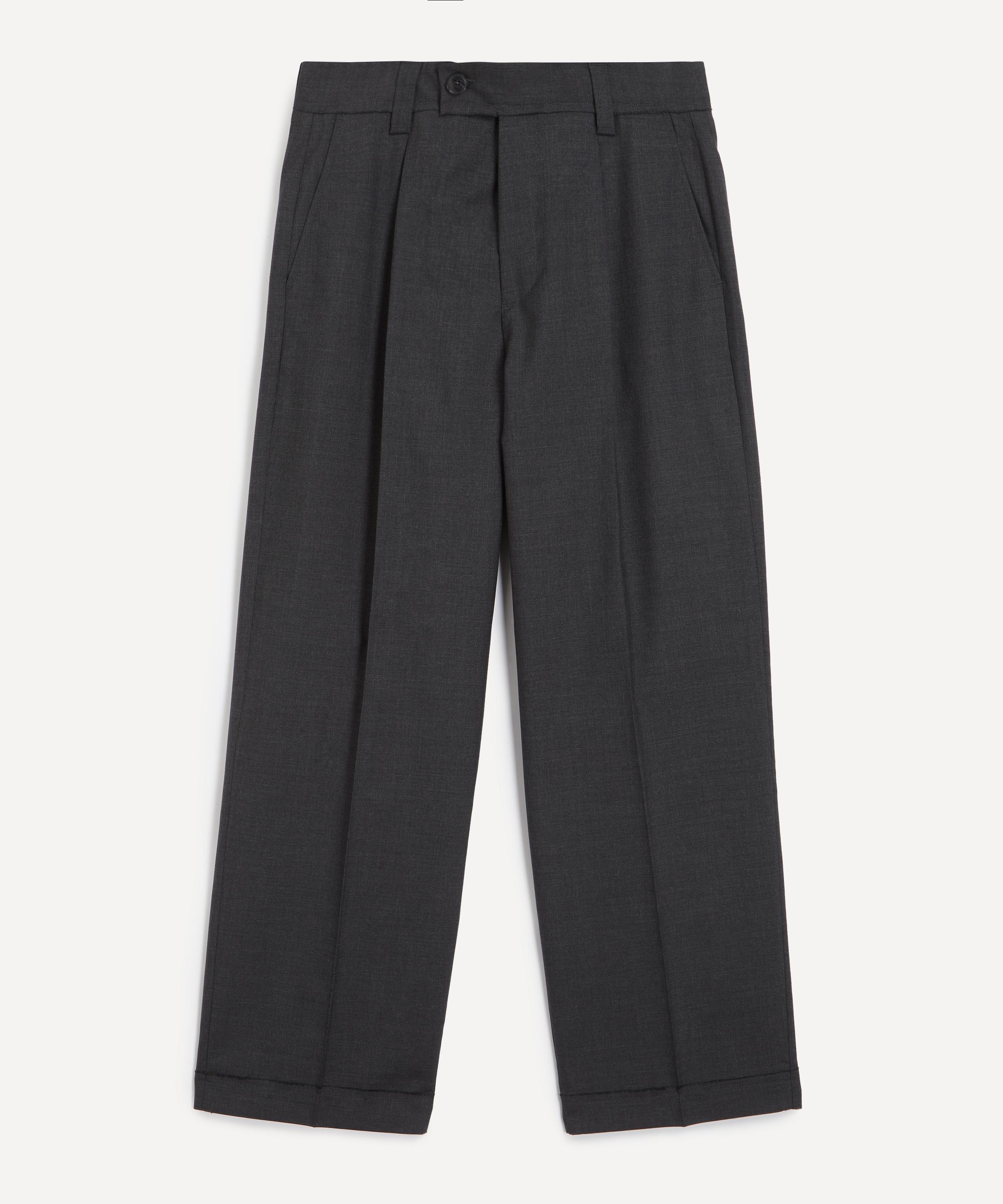 Cut from deadstock worsted wool, the Patch Trousers feature a wide, straight-leg silhouette with single pleats, a hook-and-eye closure, and cuffed hems for a refined, tailored finish.