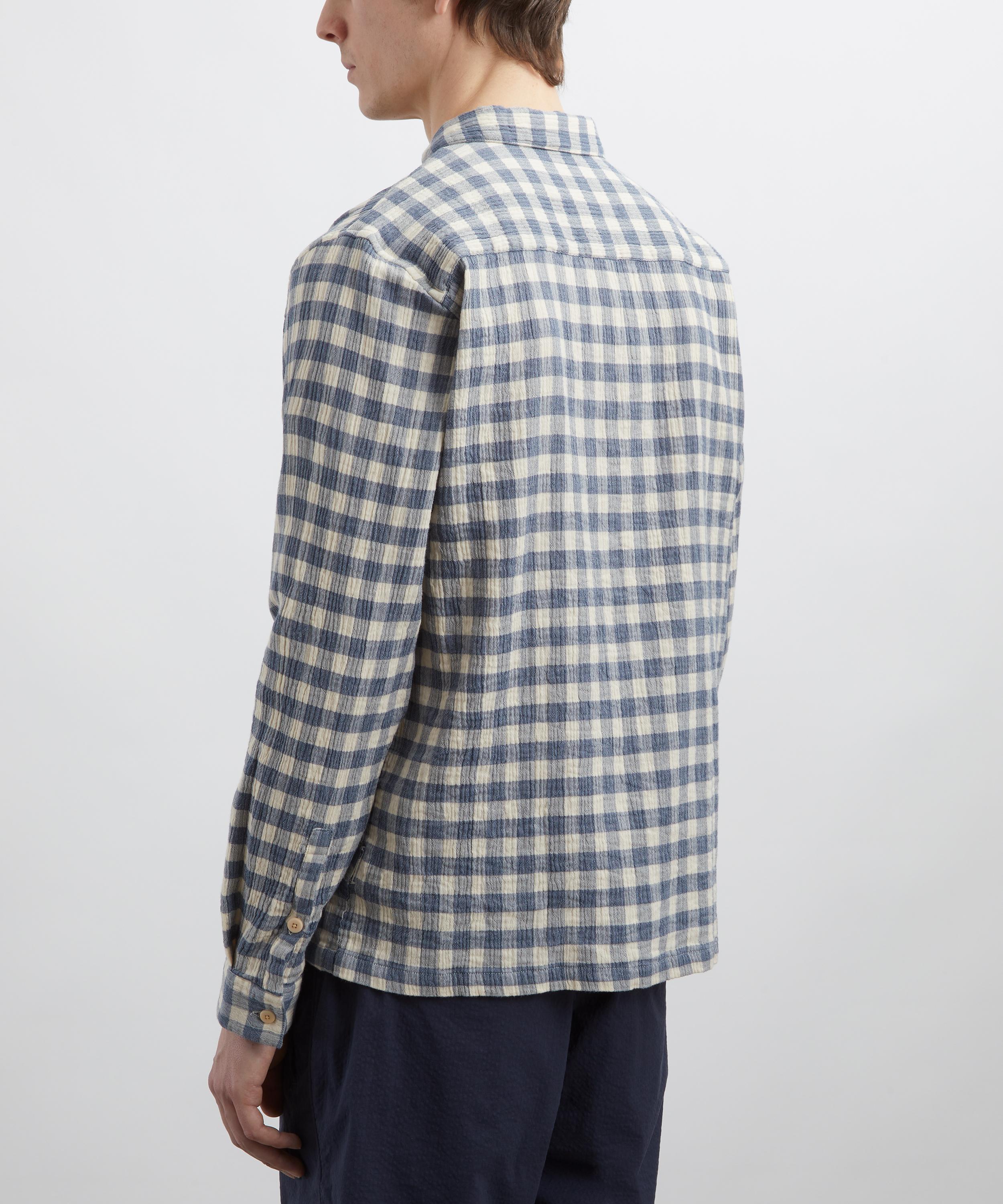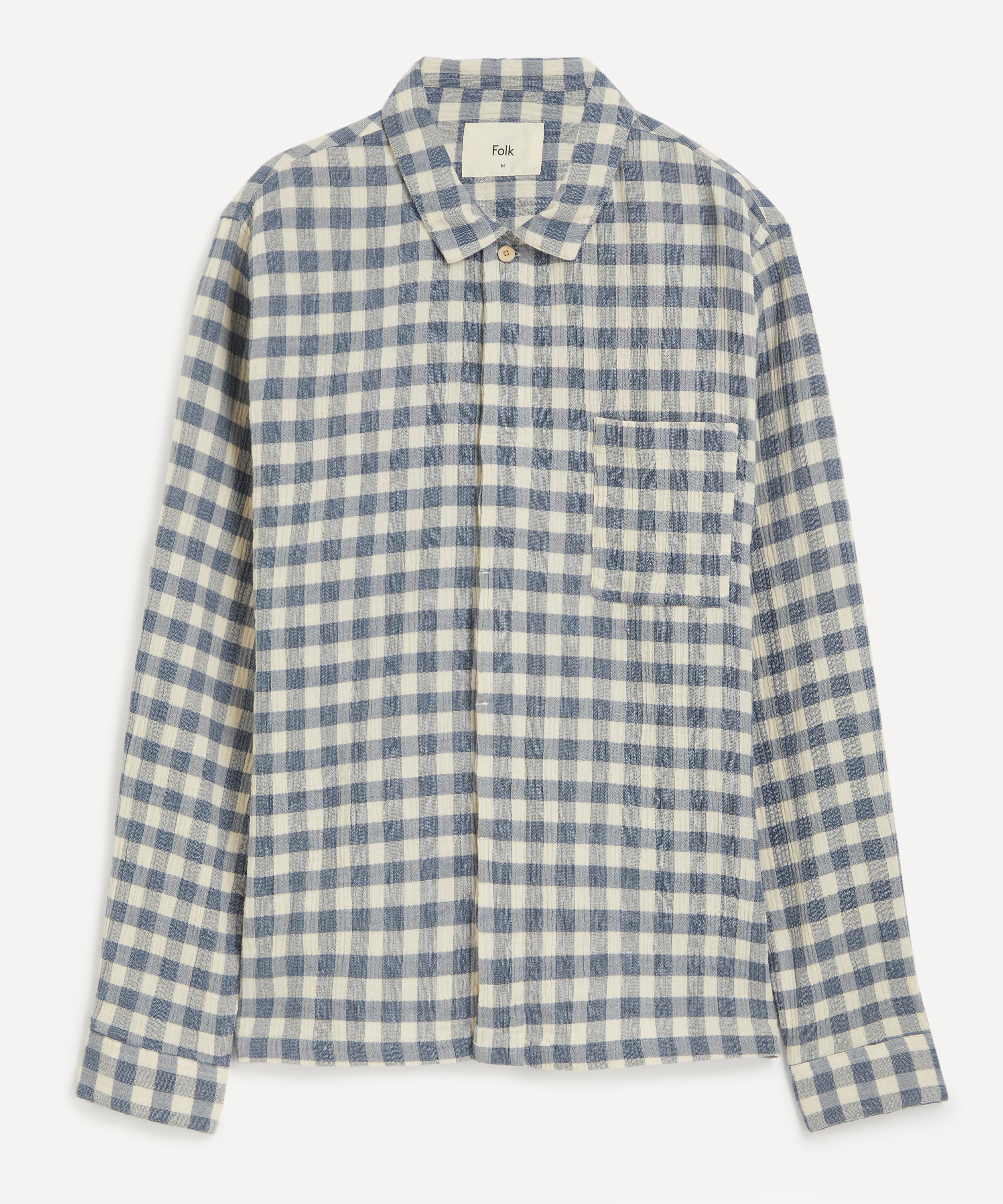 Folk’s range of understated wardrobe essentials includes this Patch Shirt, which captures the label’s mix of modernity and quality craftsmanship. It’s cut from a crinkle check cotton fabric and shaped to a generous, relaxed silhouette – accentuating the laid-back feel. Fitted with a concealed corozo button placket, a chest patch pocket and spread collar, it pairs easily with the label’s workwear-inspired trousers.