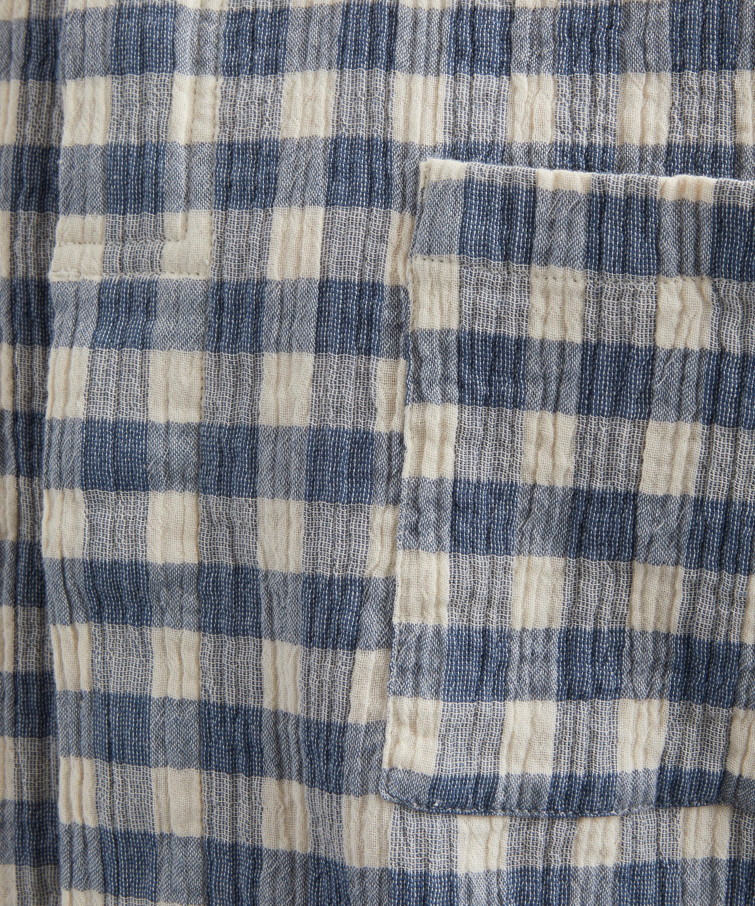 - Soft blue crinkle check design