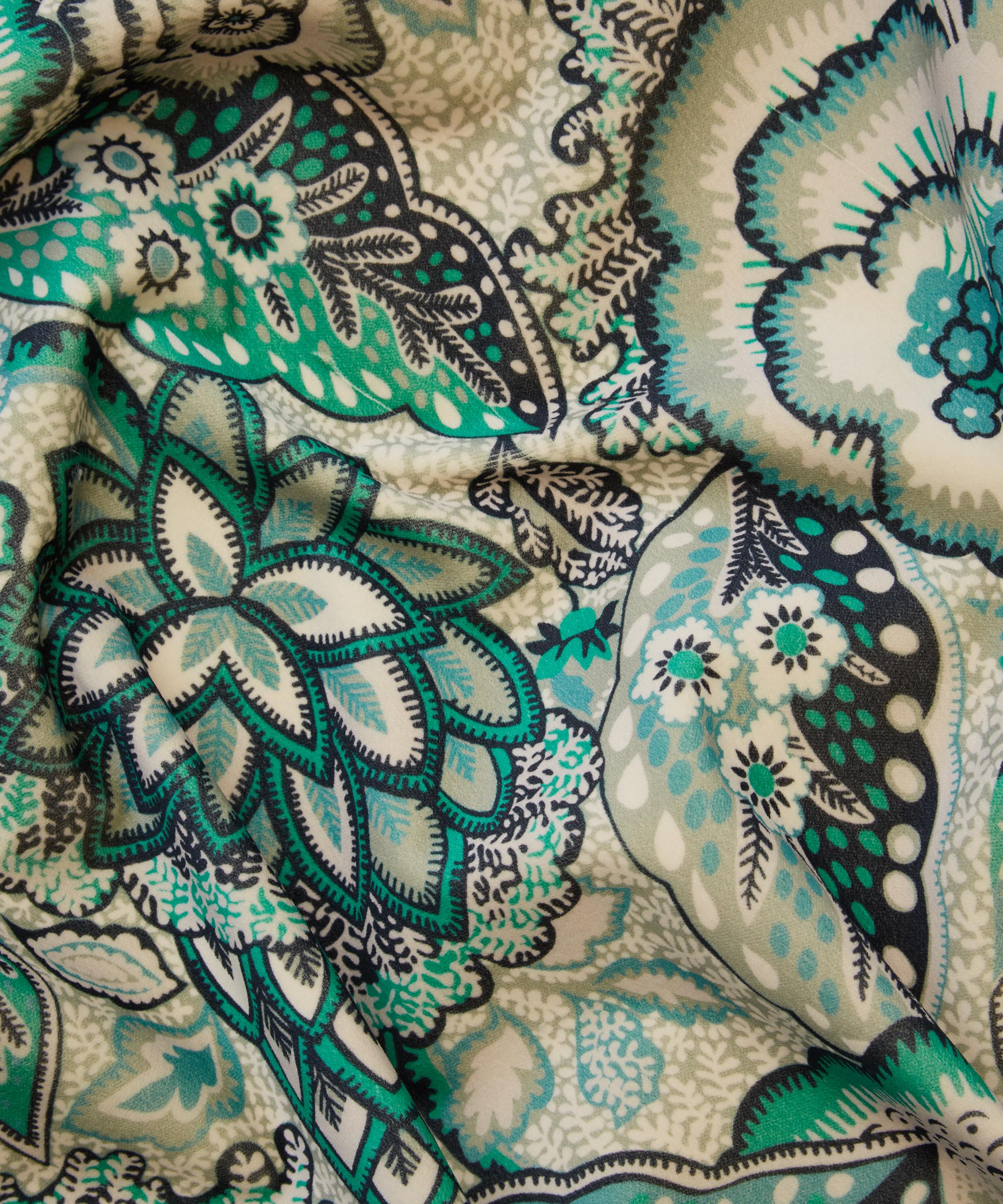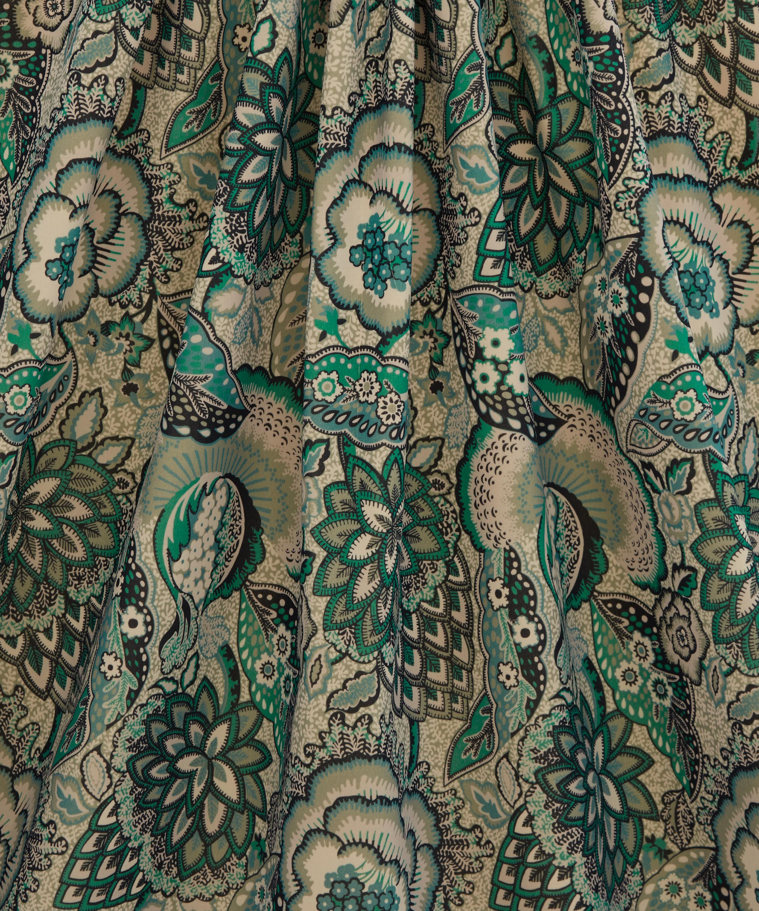 Patricia is a richly stylised and detailed floral, created for Liberty in the 1990s and inspired by ancient Tree of Life artworks. The design is expertly printed in Italy onto our cotton velvet – the perfect base for rich, saturated tones and bright colours, with a robust structure and exceptional abrasion rating that’s well-suited for high-traffic contract use. Its elegant drape also makes it ideal for heavier curtains with blackout or draft-excluding qualities.