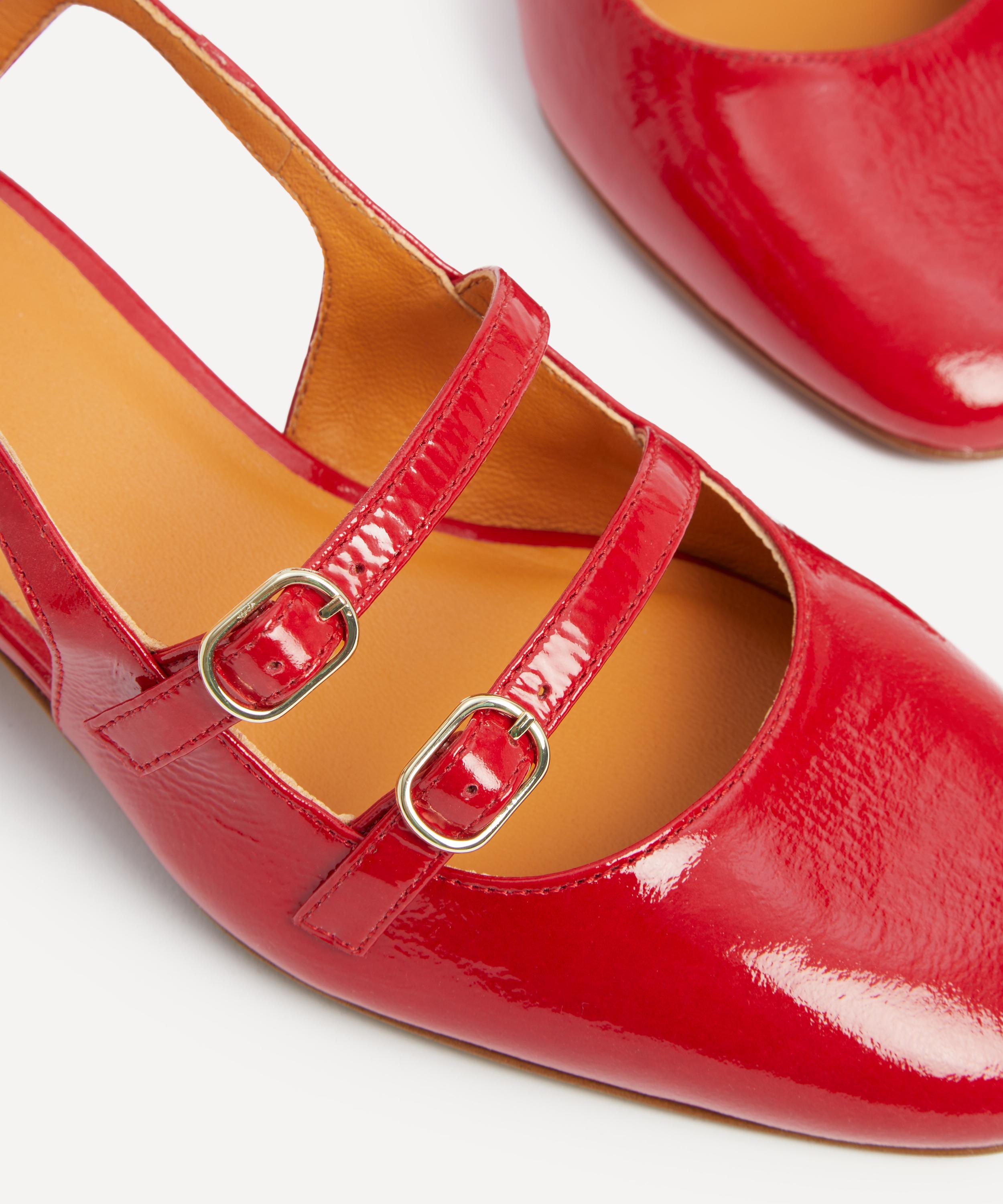 Effortlessly chic, these signature slingbacks exude elegance with their double-buckle strap design. Crafted from patent leather in a polished red hue, its block heel makes this pair the ultimate everyday shoe.