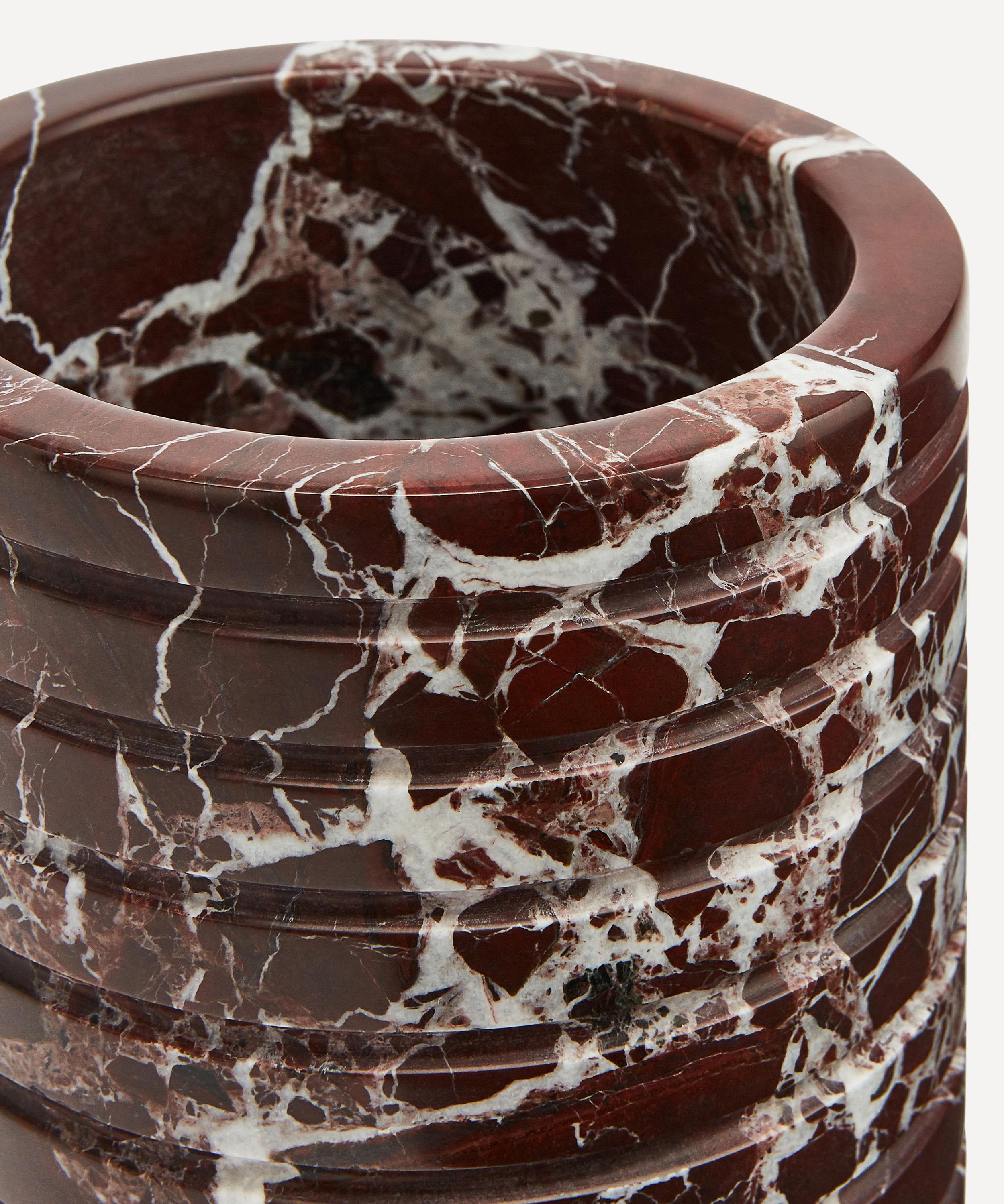 This wine cooler is crafted from a weighty marble characterised by cherry-red tones and white veining and is inspired by the marble décor seen throughout the club’s 180 house. Finished with grooving detailing around the exterior, this piece is perfect for keeping wine cool during dinner.