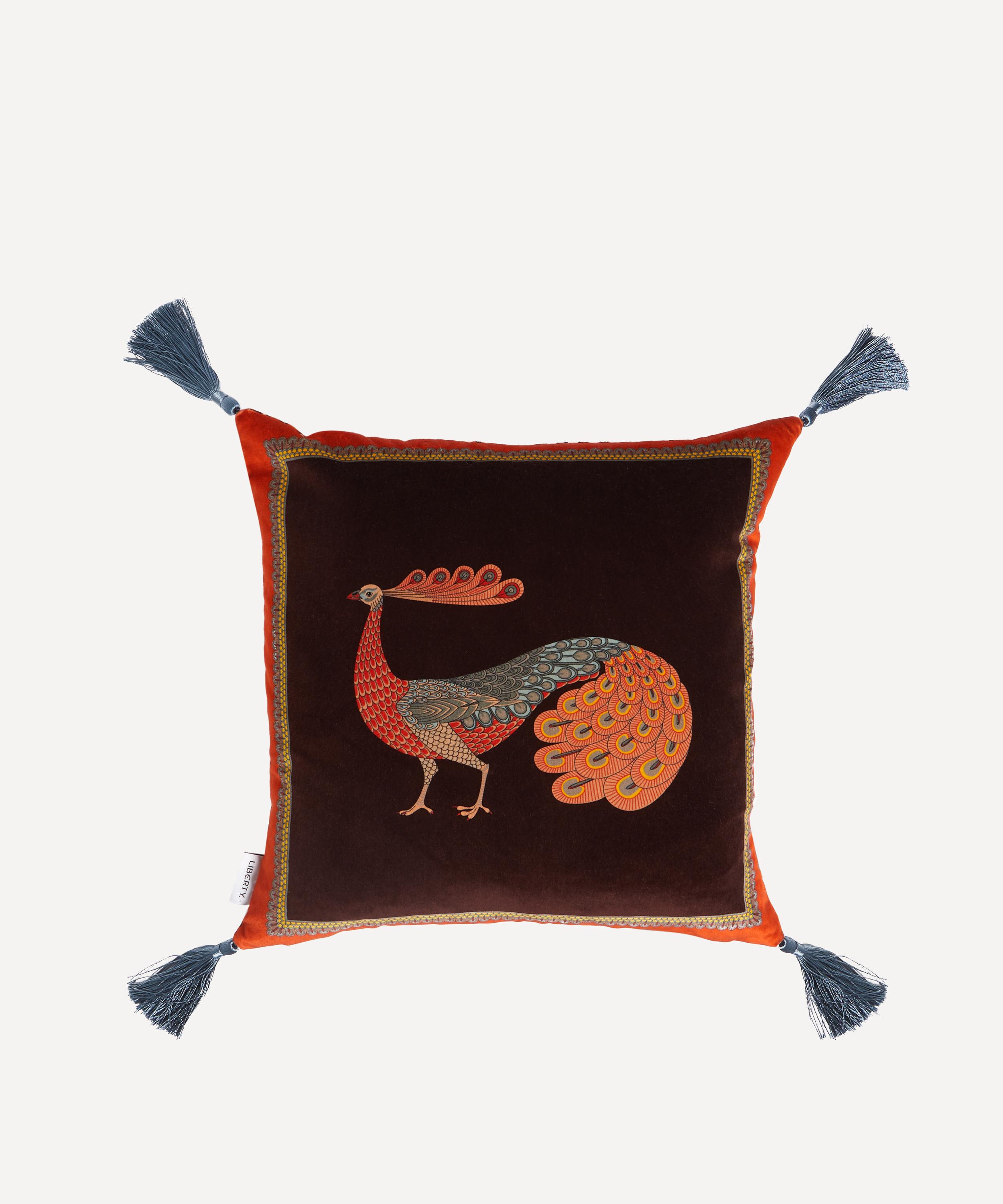 Liberty’s Peacock Garden square cushion is a versatile interiors staple, crafted in England and featuring a print from our archives.