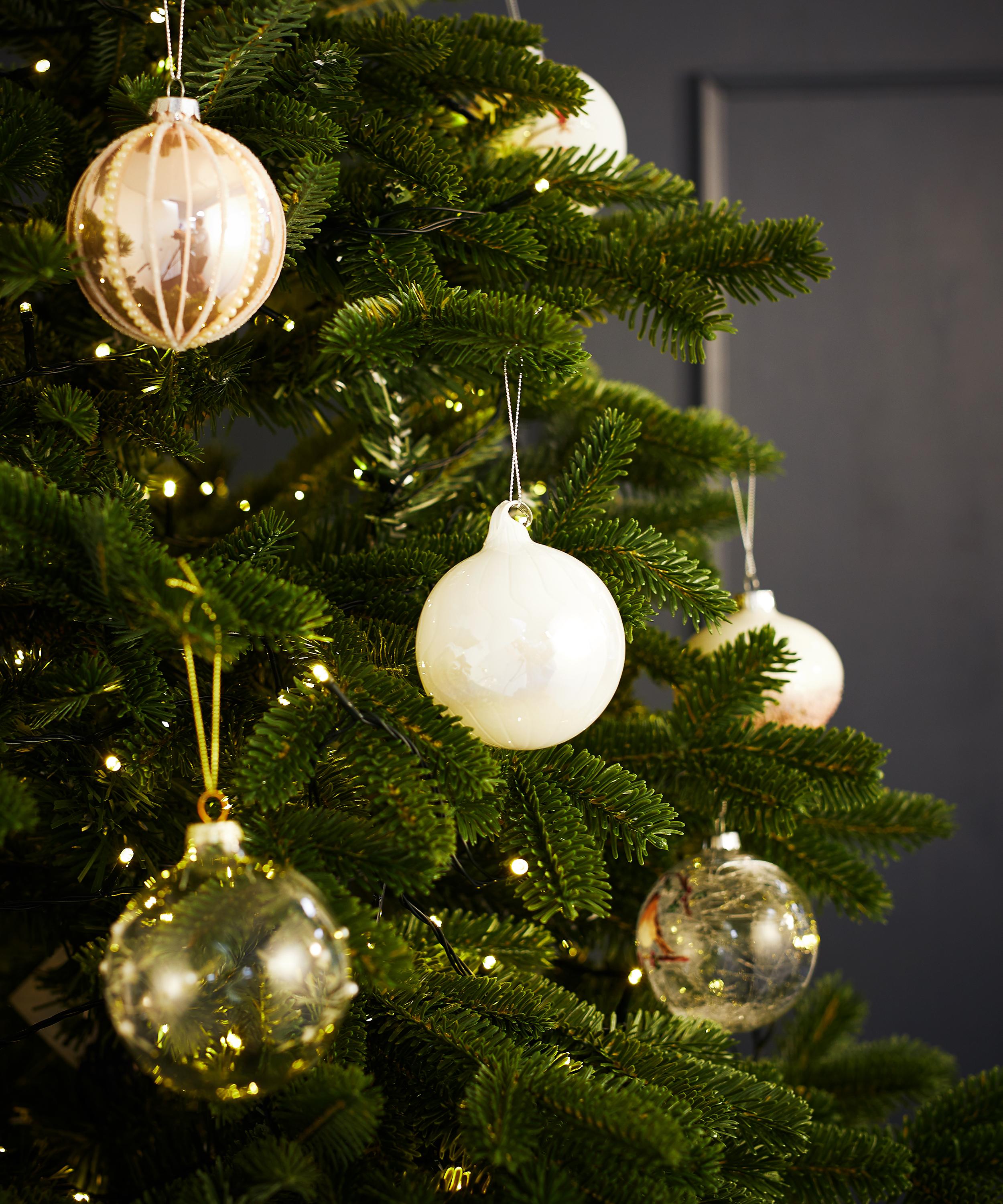 Designed in a classic spherical form with subtle swirl detailing, it’s crafted from beautiful pearlescent glass that’ll glisten in the glow of your Christmas lights. Style it with a selection of muted colours and glitter or pair with traditional yuletide colours.
