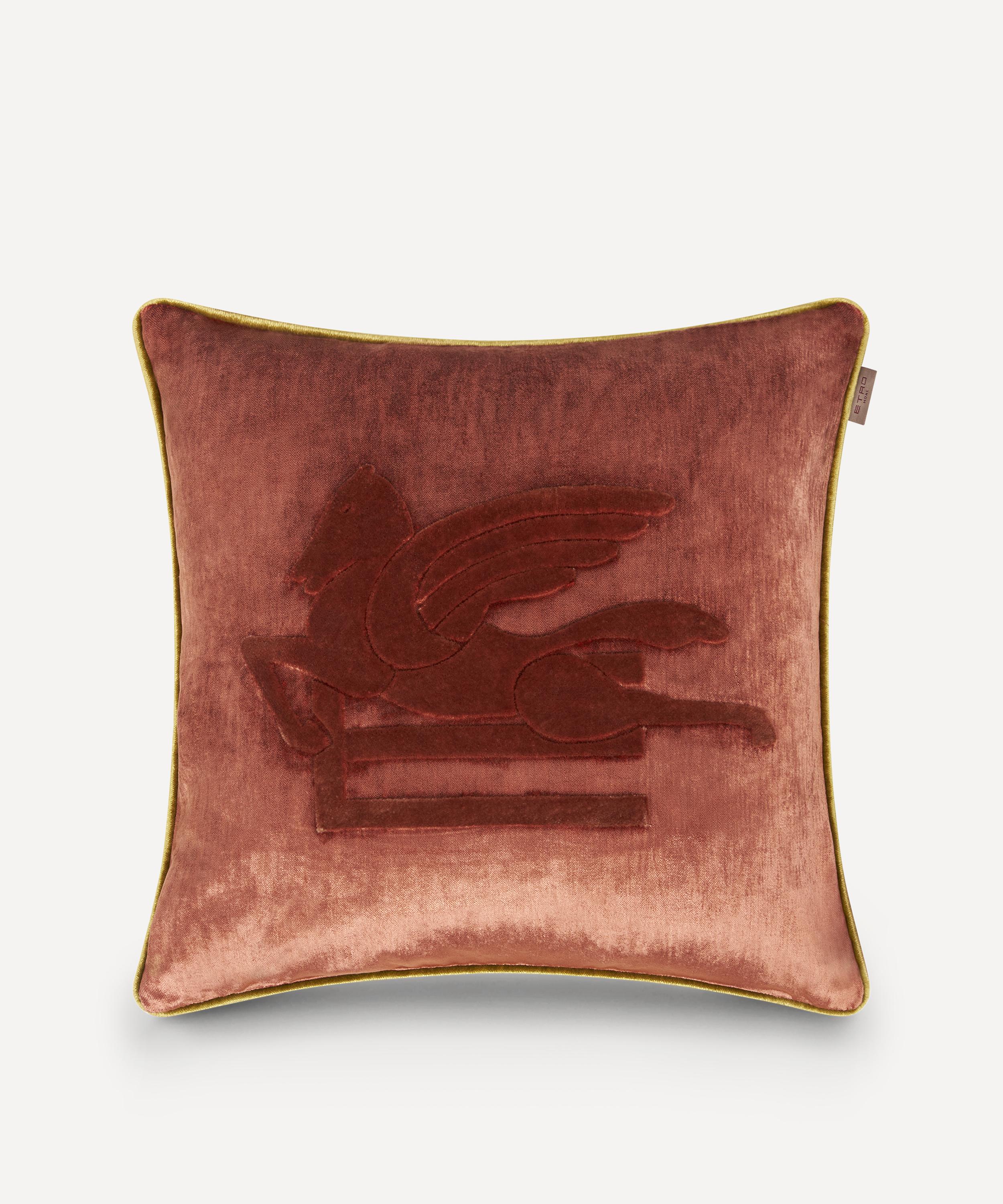 Lending a sophisticated edge to your soft furnishings, Etro’s Pegaso square cushion is a versatile interiors staple.
