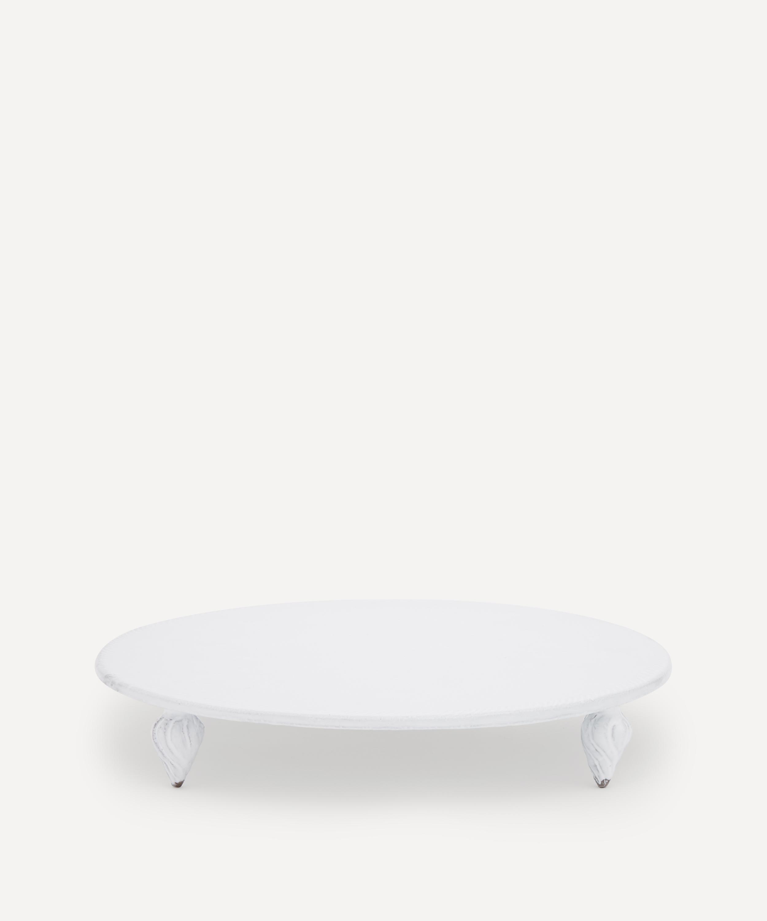 Votary of pre-industrial fabrication, Astier de Villatte is celebrated for being the one and only studio in Paris to hold and harbour the traditions of artisanal ceramic production. Restoring the ancestral systems of moulding and stamping, this tart stand is made using techniques from the Middle Ages which involve moulding a sheet of handmade clay, double firing the ‘biscuit’ piece and glazing the product in white enamel – a lengthy process that requires a drying time of up to one month. Characterised by a large, flat surface and ornamental feet, this piece of serveware is engraved with the brand’s signature crest – depicting an interlacing A & V – alongside the initials of one of the 40 master artisans who created it. Use to serve up a freshly baked tarte tatin.