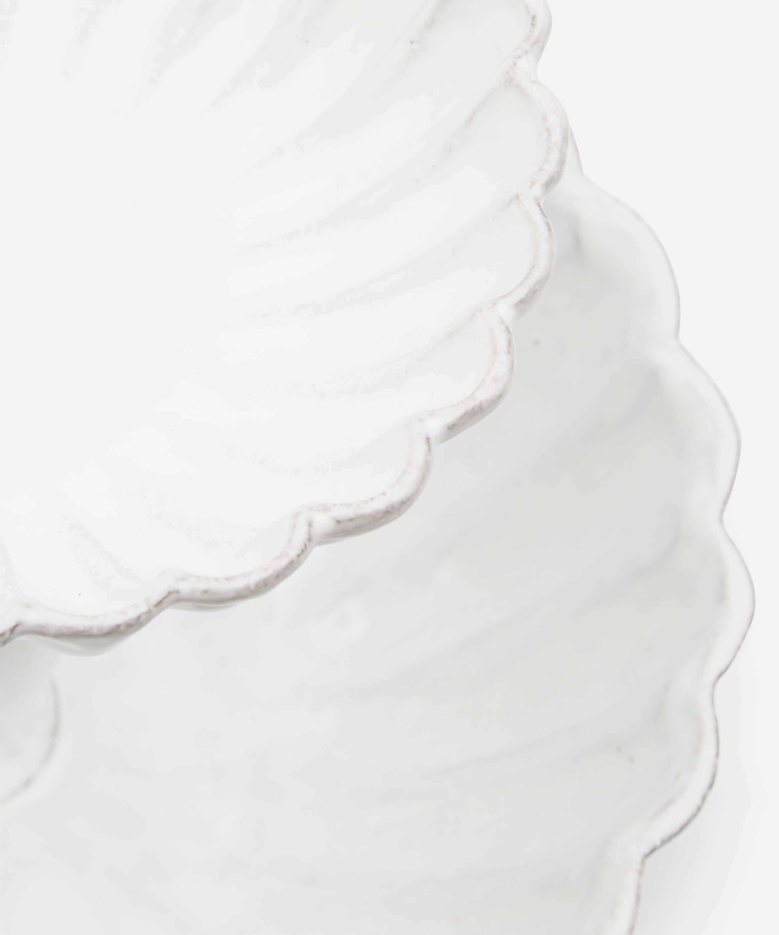 Votary of pre-industrial fabrication, Astier de Villatte is celebrated for being the one and only studio in Paris to hold and harbour the traditions of artisanal ceramic production. Restoring the ancestral systems of moulding and stamping, the Peggy tiered bowl is made using handcrafting techniques from the Middle Ages which involve moulding a handmade sheet of clay, double firing the ‘biscuit’ piece and glazing the product in white enamel – a lengthy process that involves a drying time of up to one month. Characterised by ridged accents, the tiered bowl is engraved with the brand’s signature crest - depicting an interlacing A & V - alongside the initials of one of the 40 master artisans who created it. Each handmade piece tells a beautiful story, it romances and imparts a sense of nostalgia into its owner. Arrange with other glazed bowls and plates in the collection to breathe an air of authenticity into your dining collection.