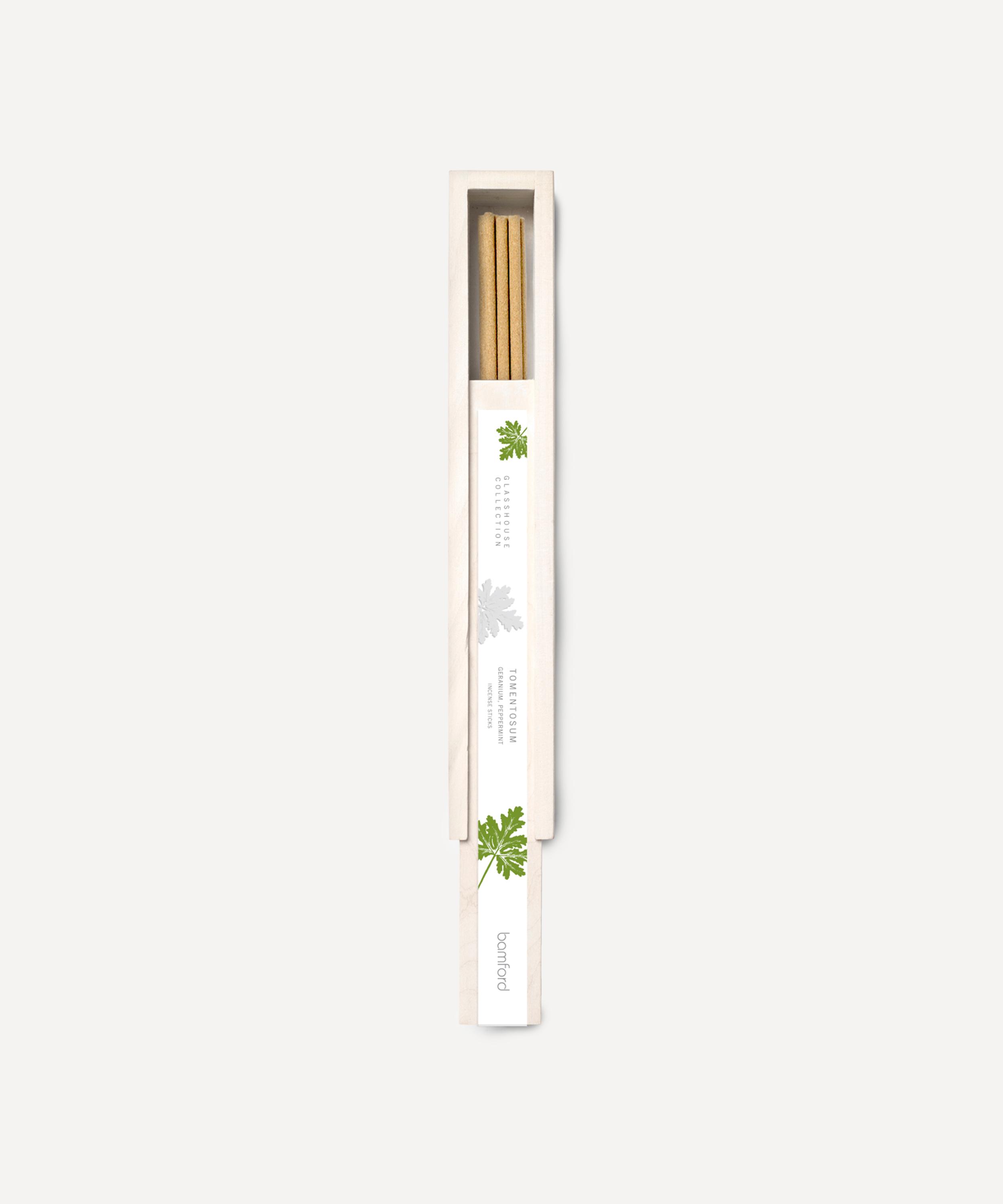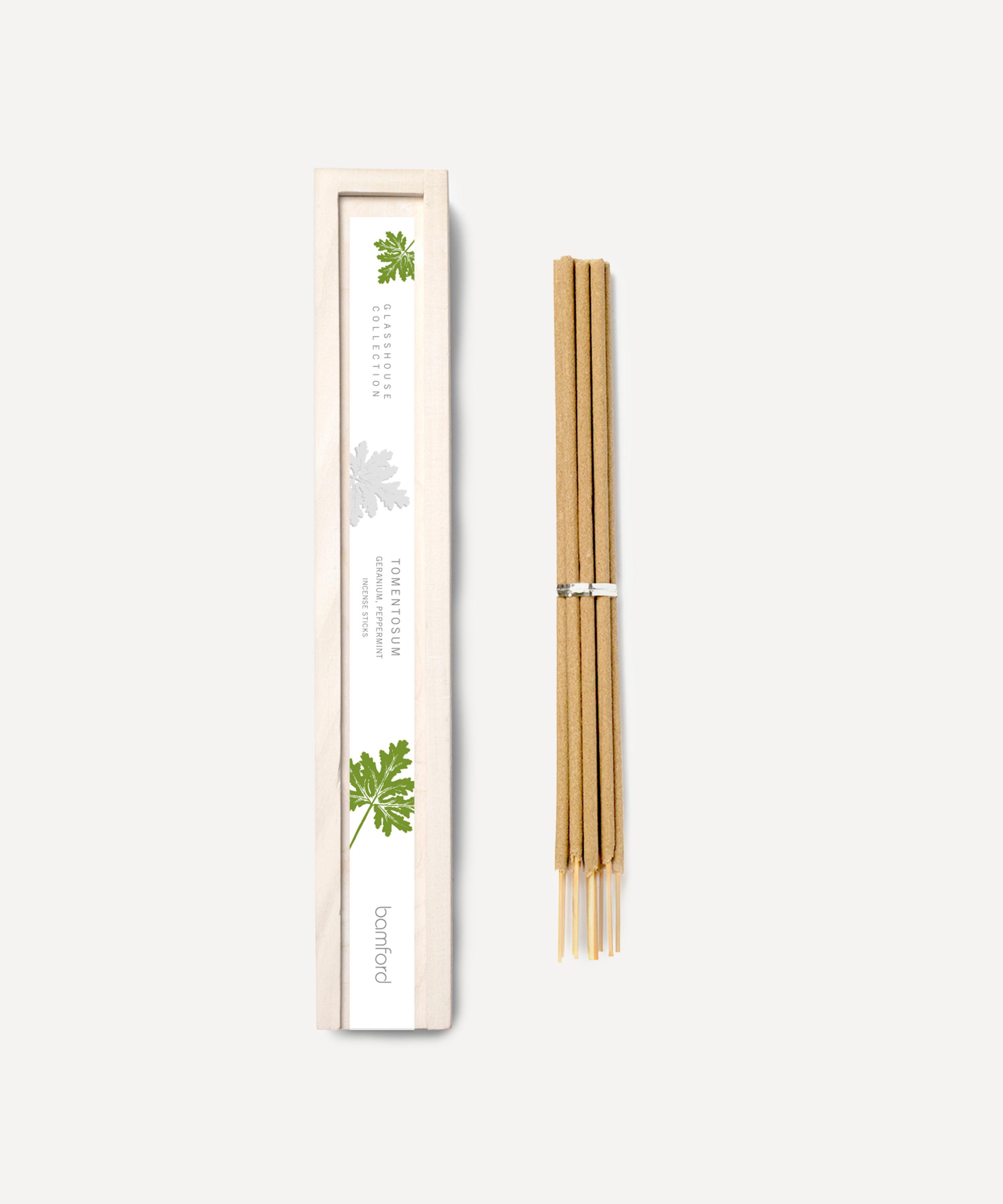 Imbuing your interiors with a quiet elegance, Bamford's Pelargonium Tomentosum Geranium incense sticks boasts a fresh, earthy aroma.