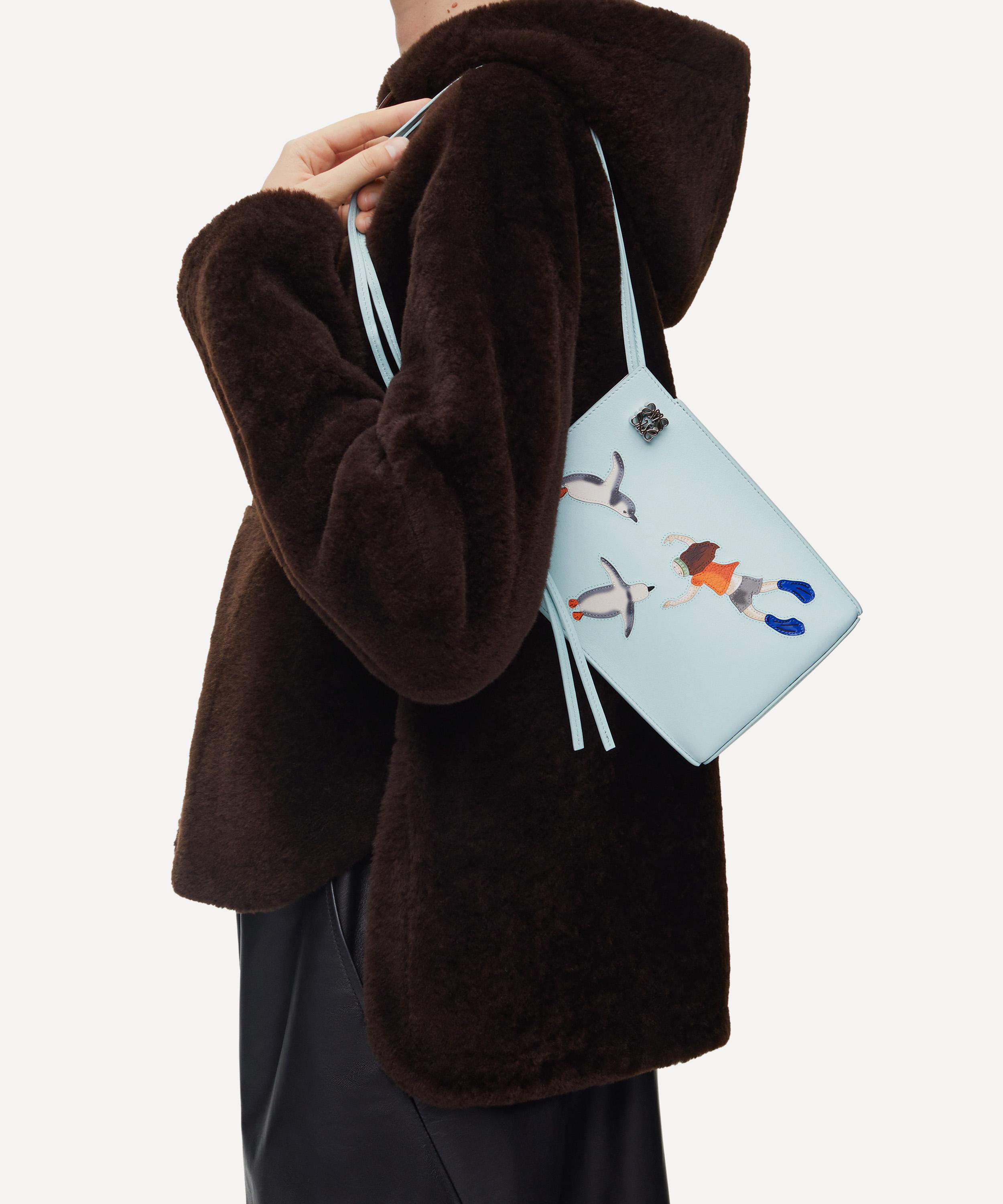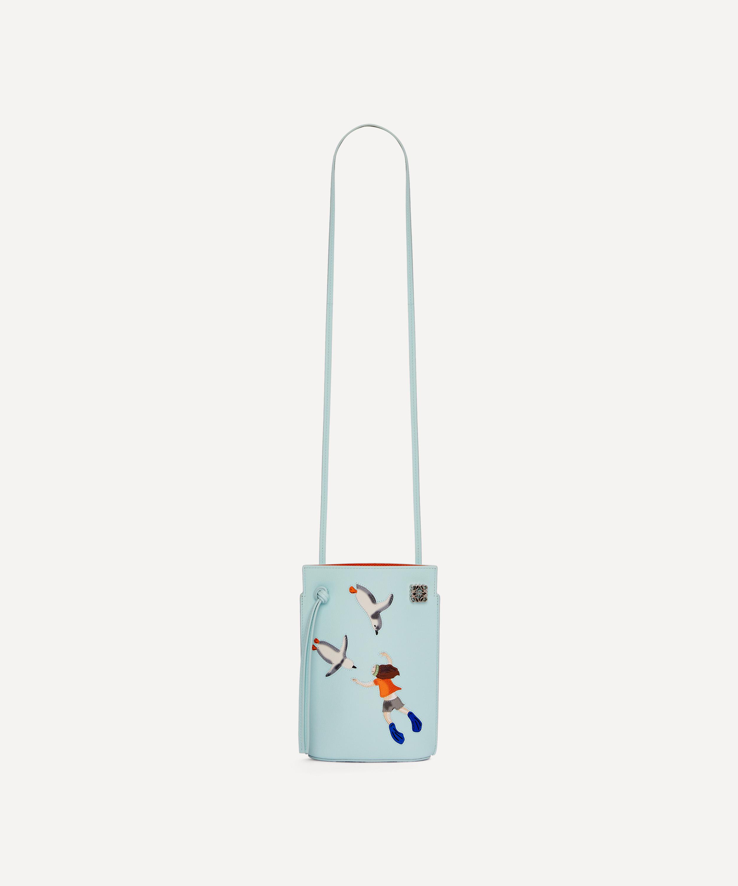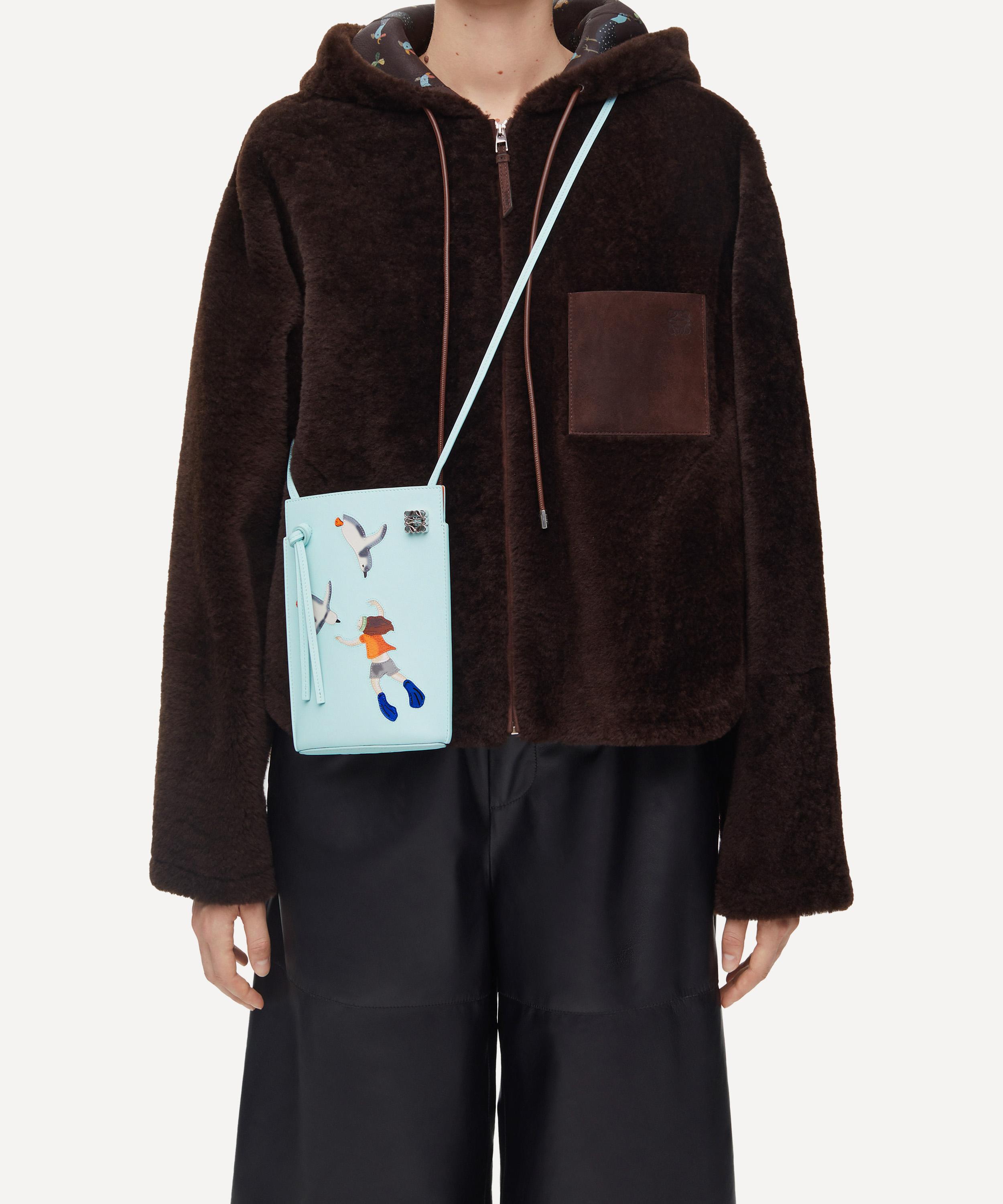 This small pouch bag boasts a whimsy rendition of Loewe’s signature Dice Pocket, part of the LOEWE x Suna Fujita collection. Crafted from satin calfskin, it features printed penguin motifs with a rear card slot and shoulder strap. Complete with an Anagram dice logo, it’s perfect for occasion wear or when you only need the bare essentials.