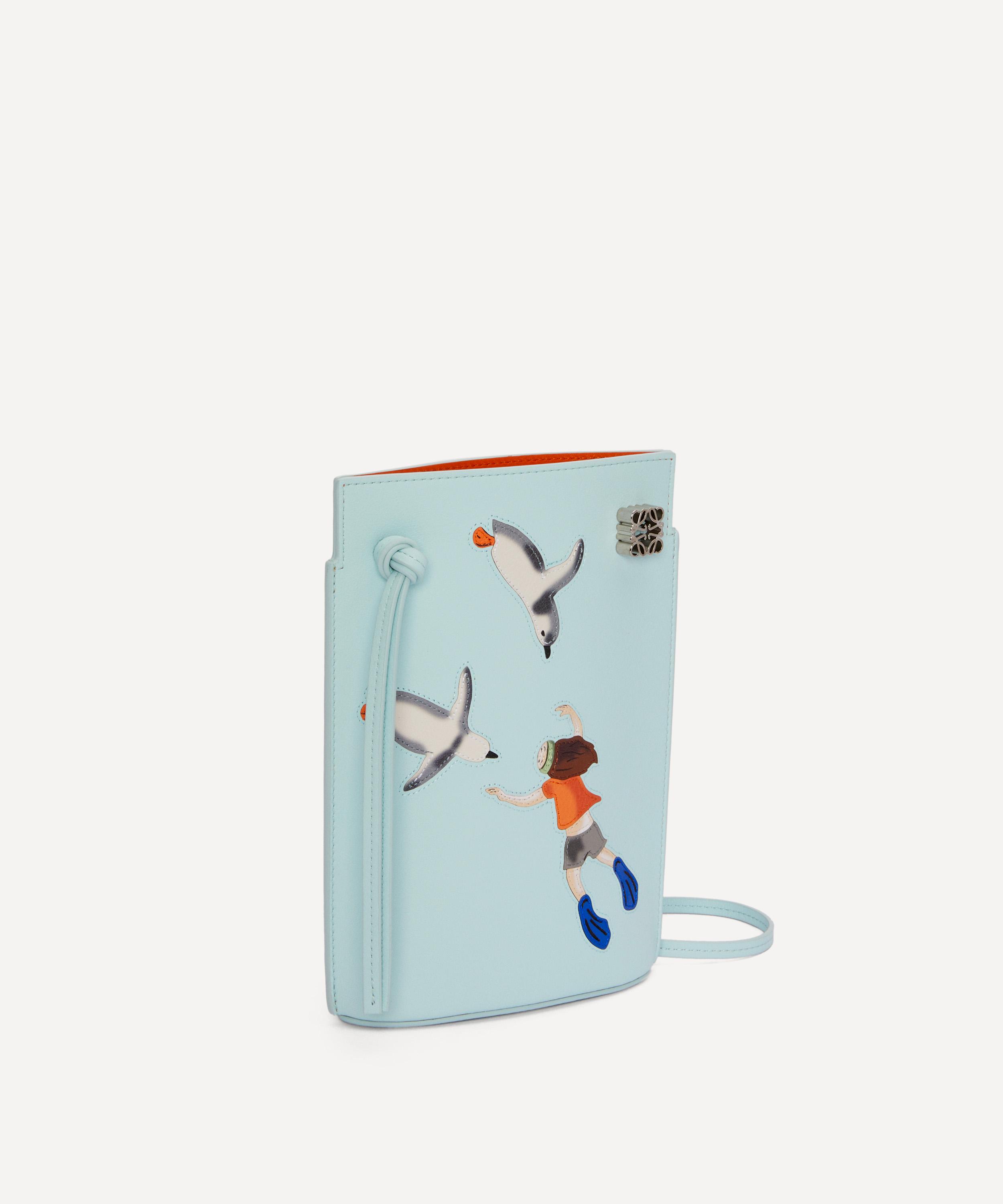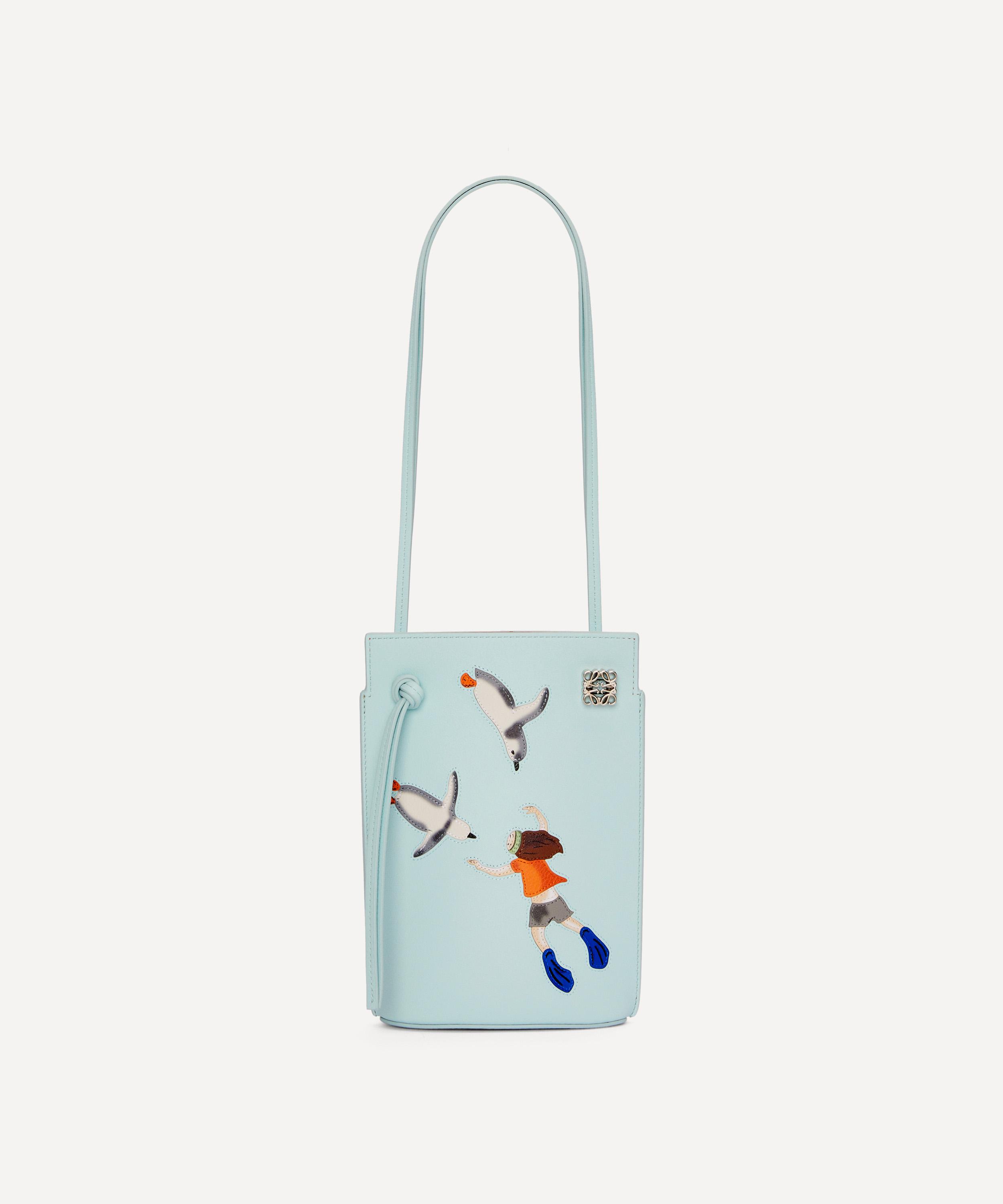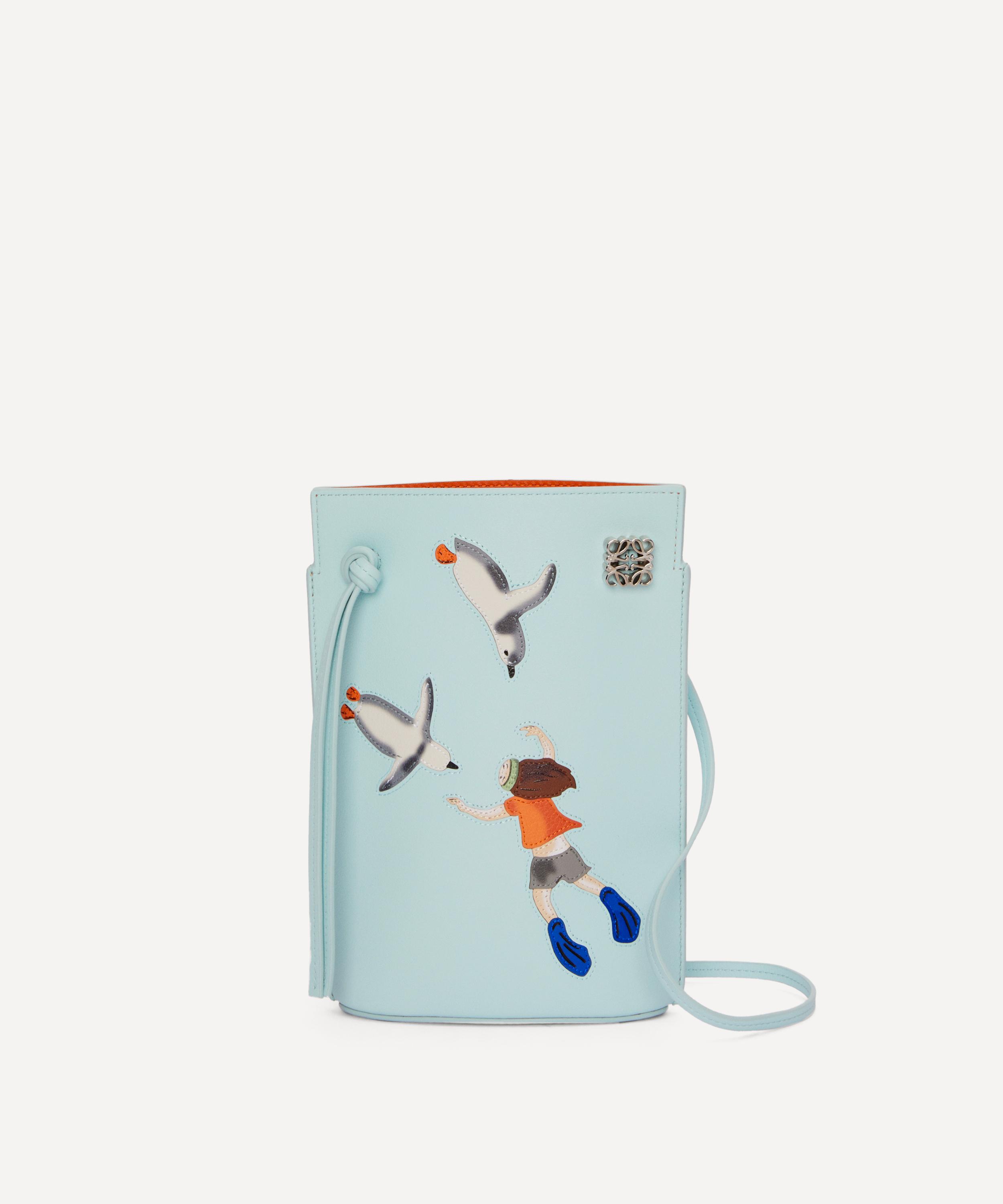 This small pouch bag boasts a whimsy rendition of Loewe’s signature Dice Pocket, part of the LOEWE x Suna Fujita collection. Crafted from satin calfskin, it features printed penguin motifs with a rear card slot and shoulder strap. Complete with an Anagram dice logo, it’s perfect for occasion wear or when you only need the bare essentials.