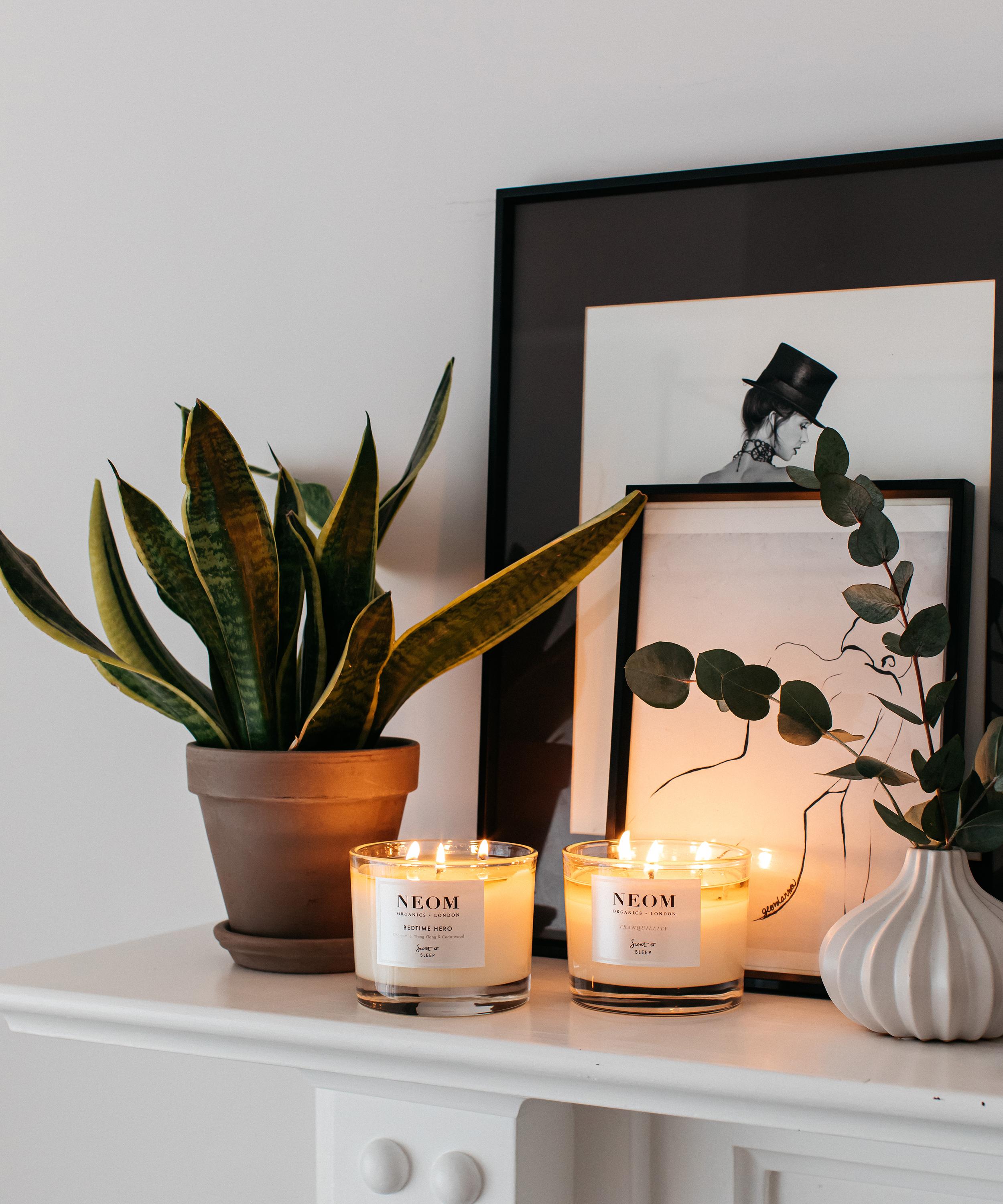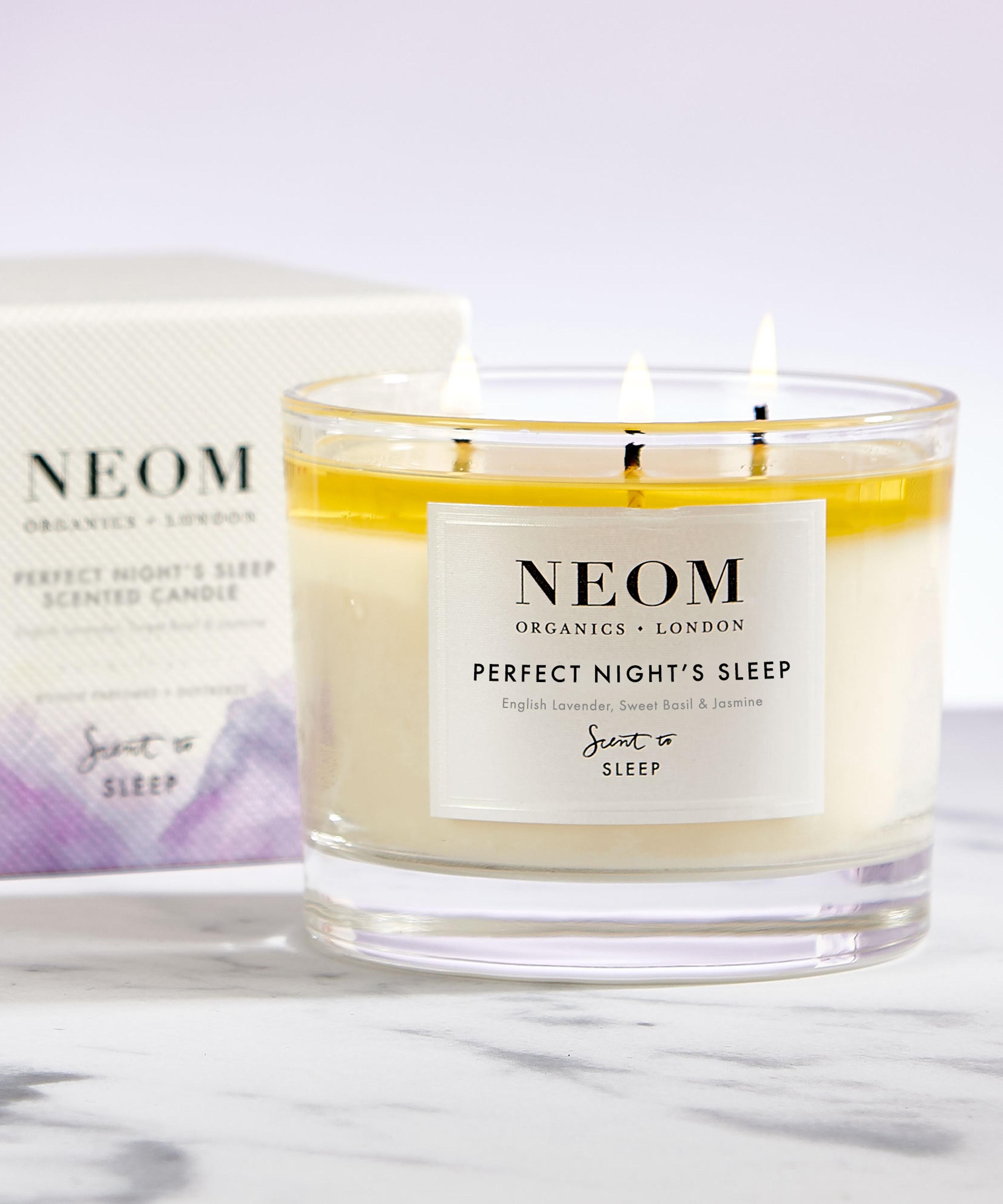 NEOM Wellbeing London's Perfect Night's Sleep three-wick scented candle is infused with the delicate blend of essential oils that form the brand's original scent.