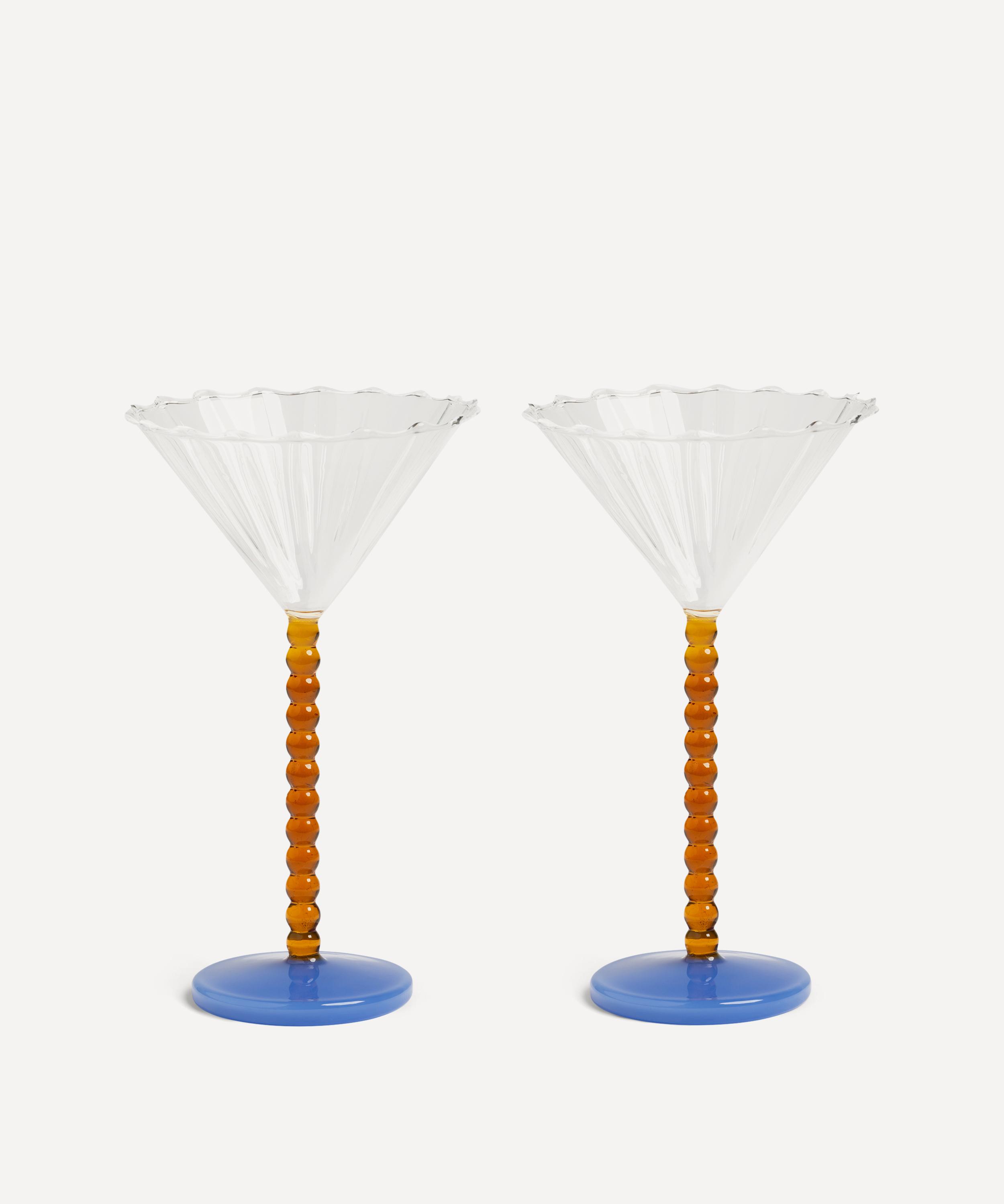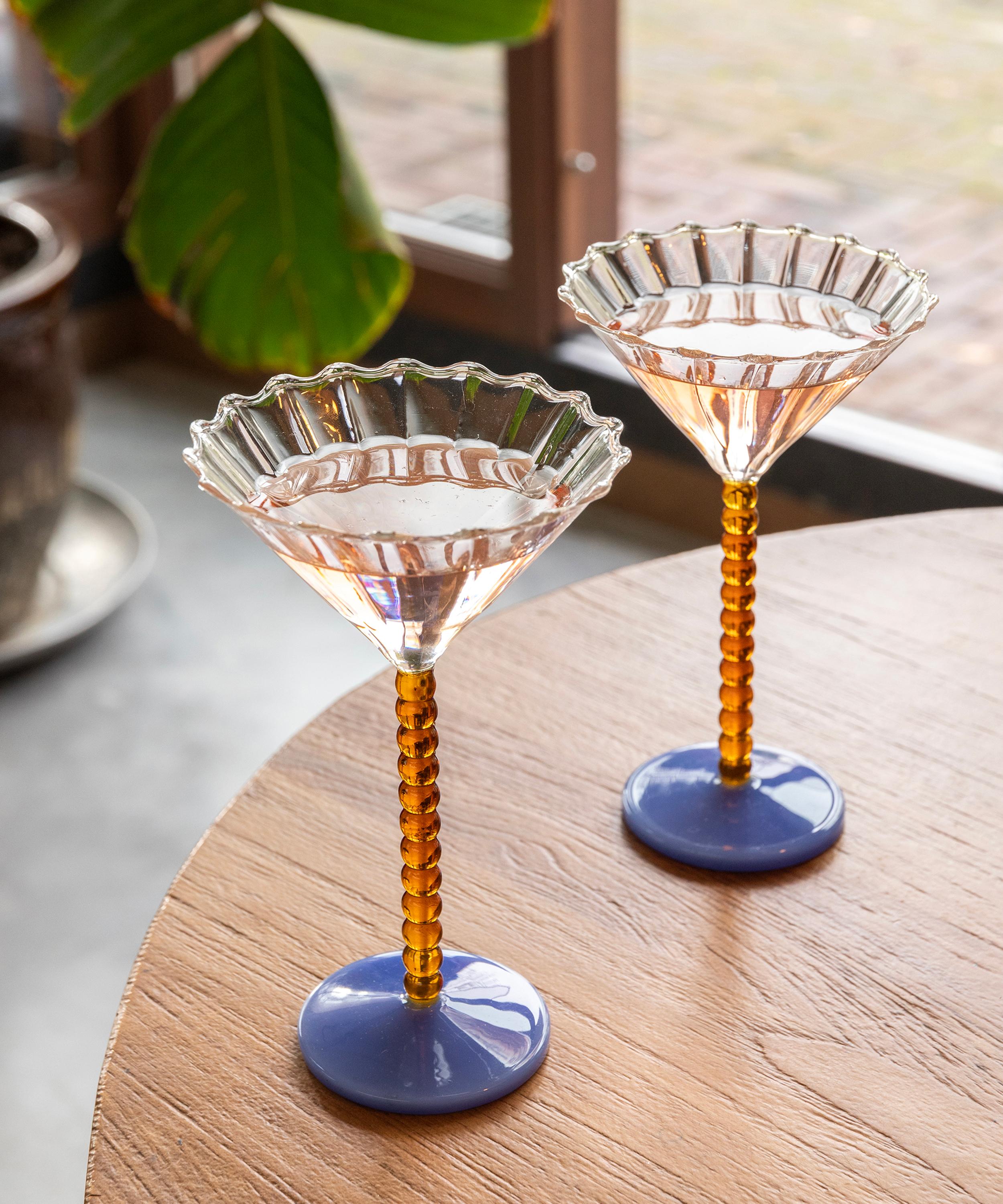 Elevate cocktail hour and at-home parties with this cheerful set or coupe glasses from &Klevering. Skilfully formed with precision and care from delicate, coloured glass, they feature a subtle, beaded silhouette, combining modern design and vintage elegance to give them a unique look. Perfect for a variety of cocktails including champagne, martinis and craft cocktails, they’re versatile shape is also ideal for serving elegant desserts like ice cream and small trifles.