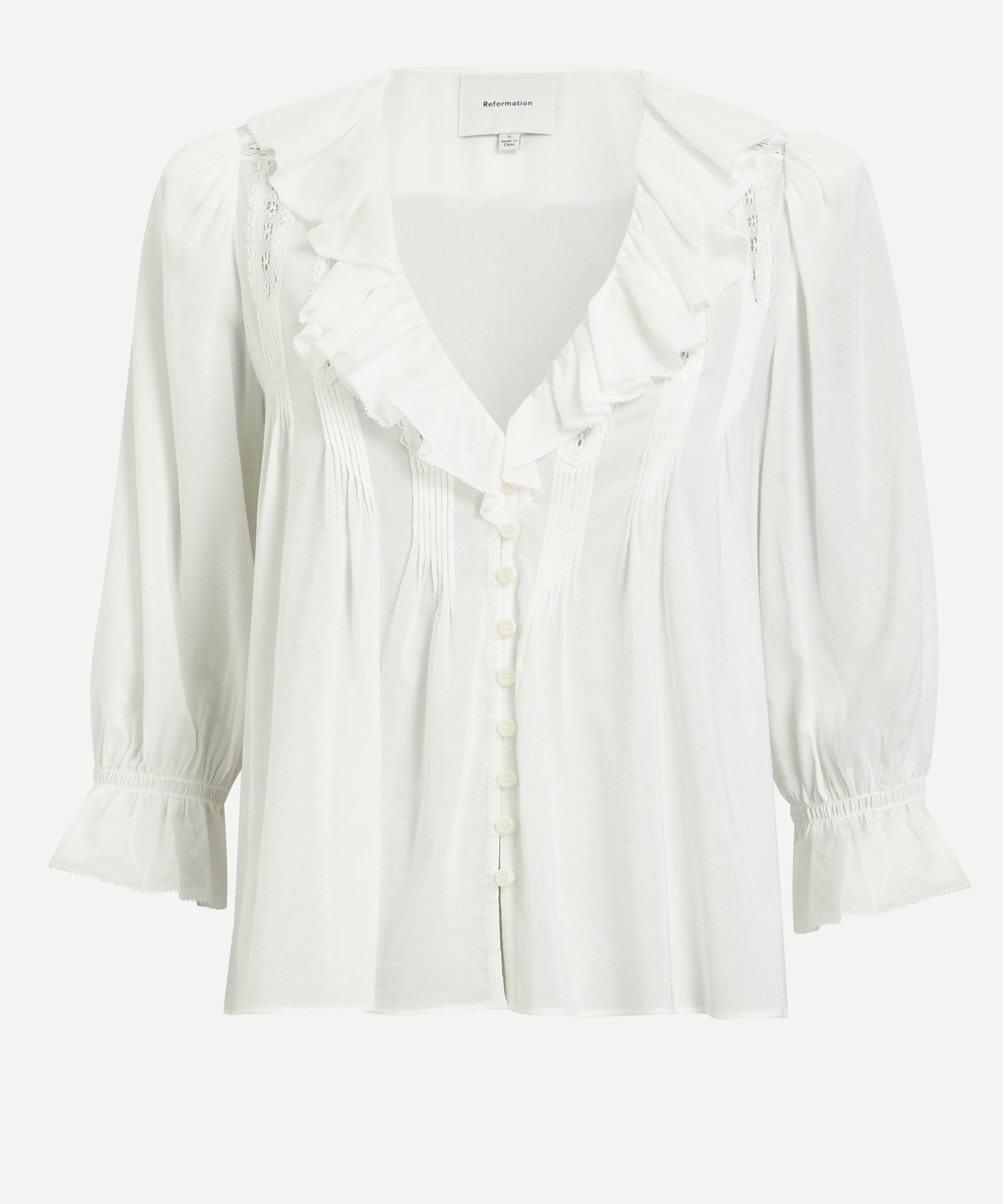 Look good and feel good in the Perry Lace Blouse Top from cult LA label Reformation, where effortless style meets conscious design.