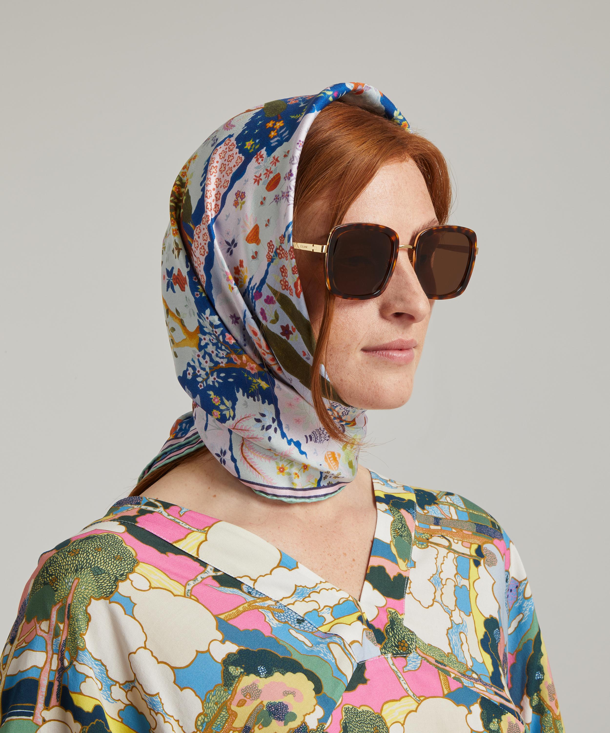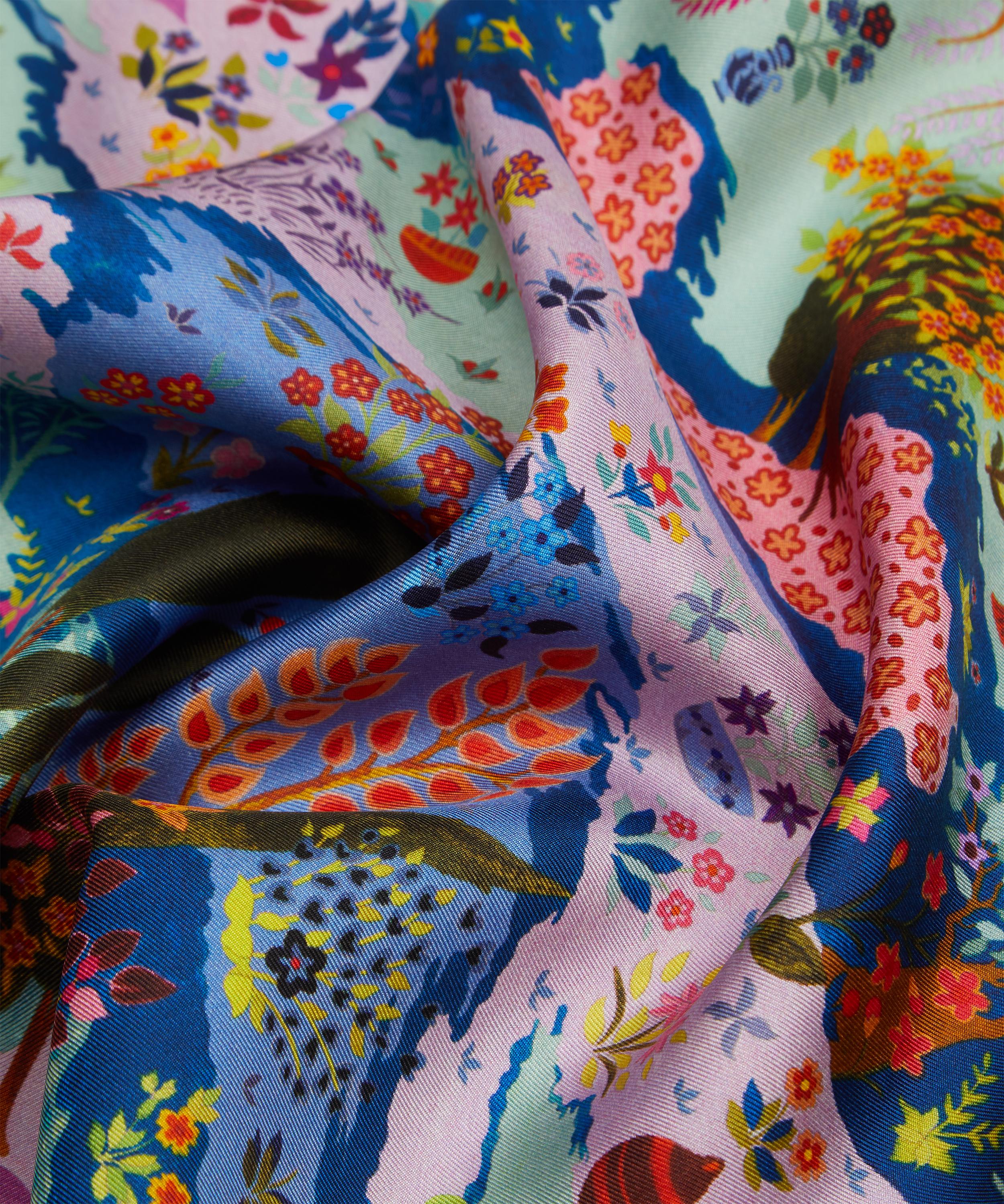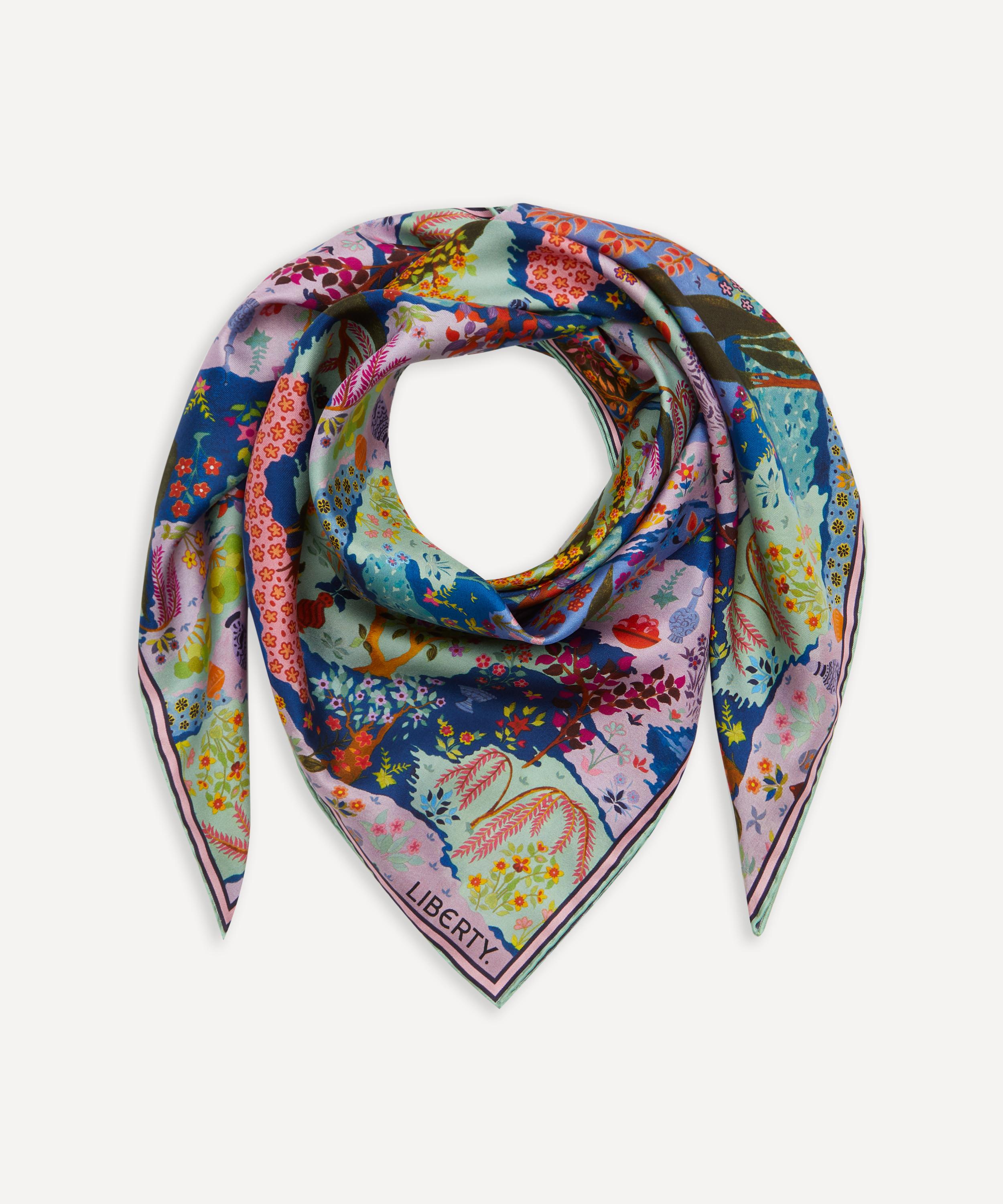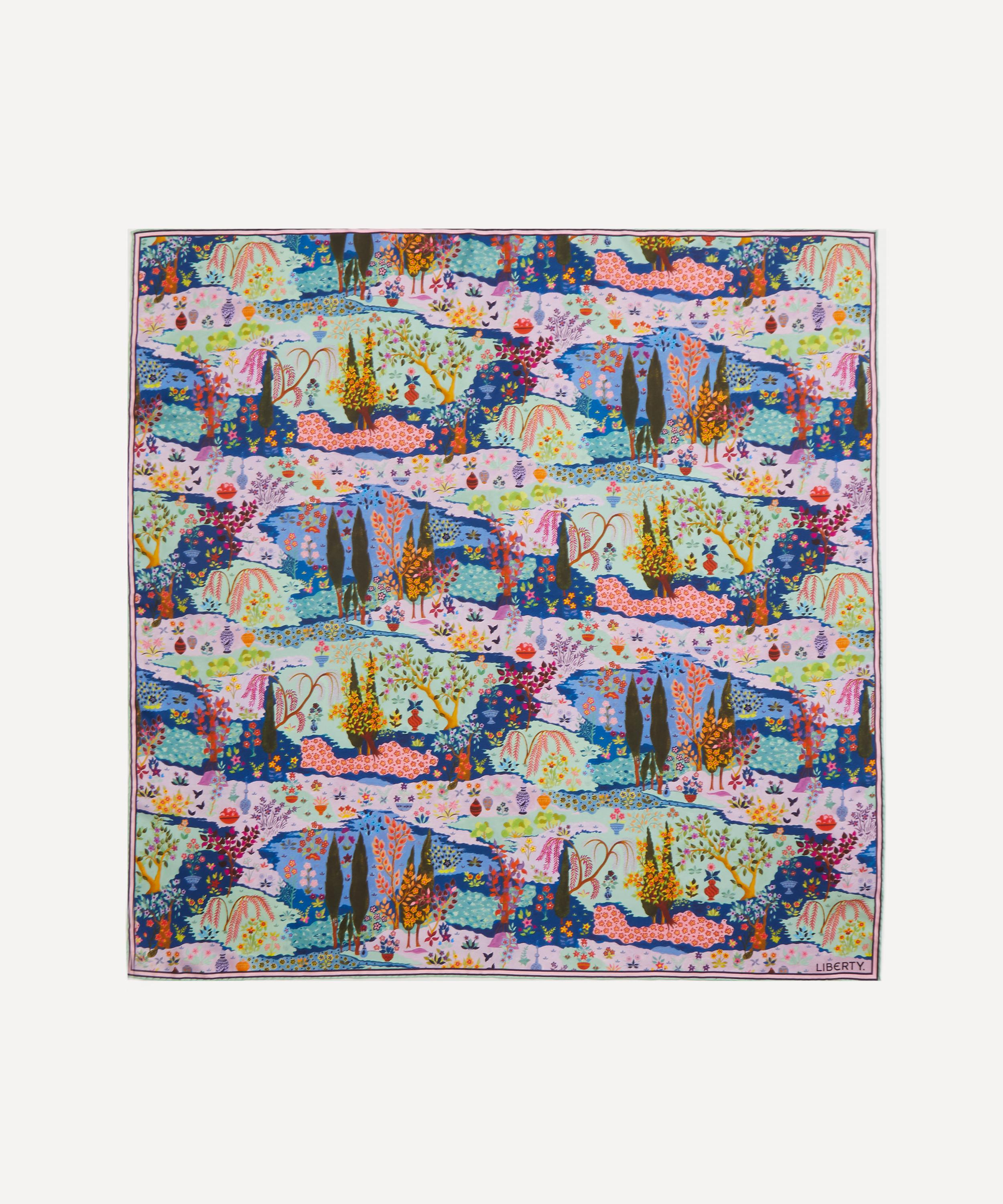 The Persian Gardens scarf features an archival Liberty design from 1964, inspired by rolling hills and rich textures of an imaginary countryside. Loop it around your neck, a Liberty silk scarf is a heroine of versatile styling. New for this season, this scarf pays homage to our long tradition of landscape prints – with a scenic panorama print featuring intricate vistas, trees and flowers.
