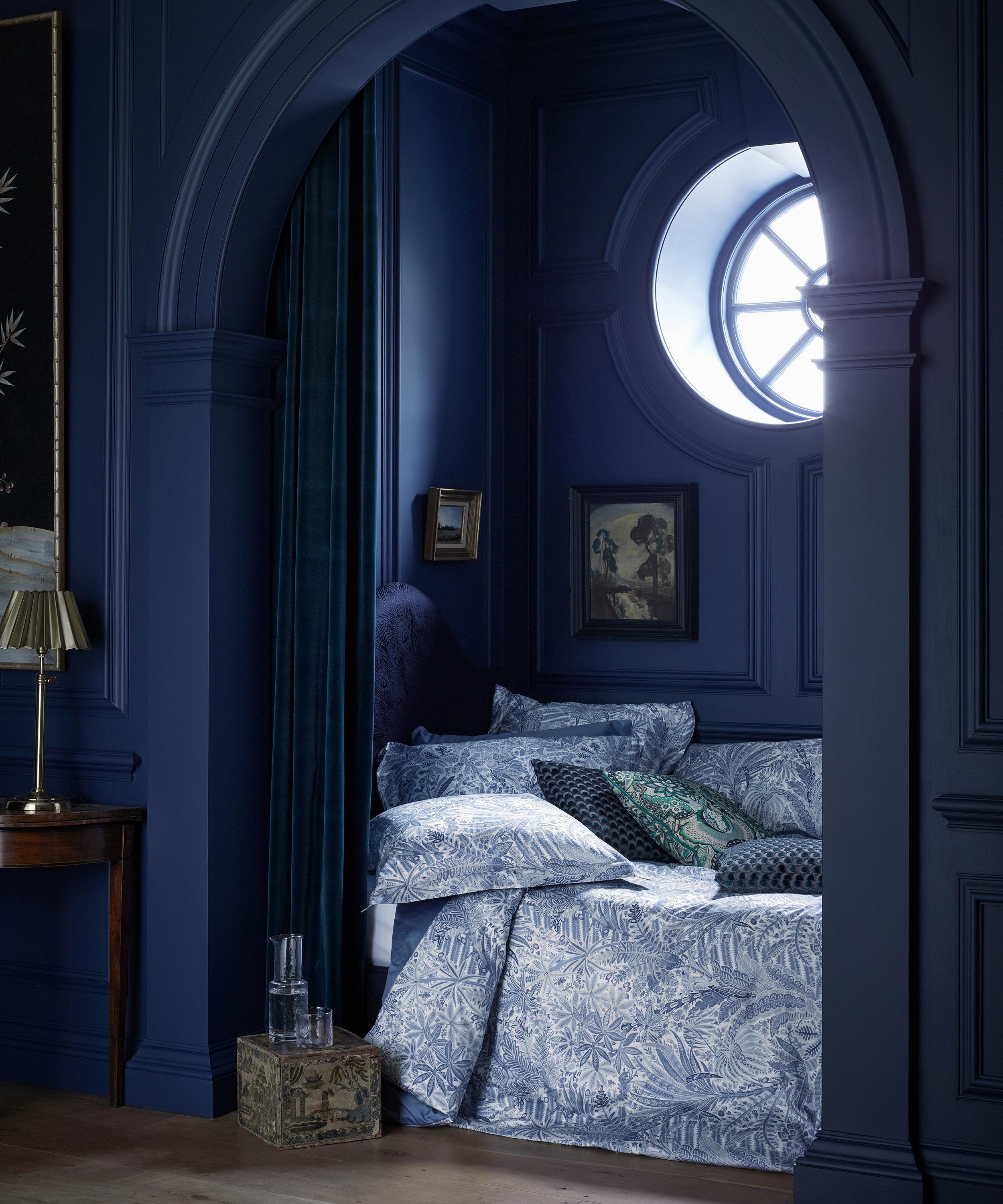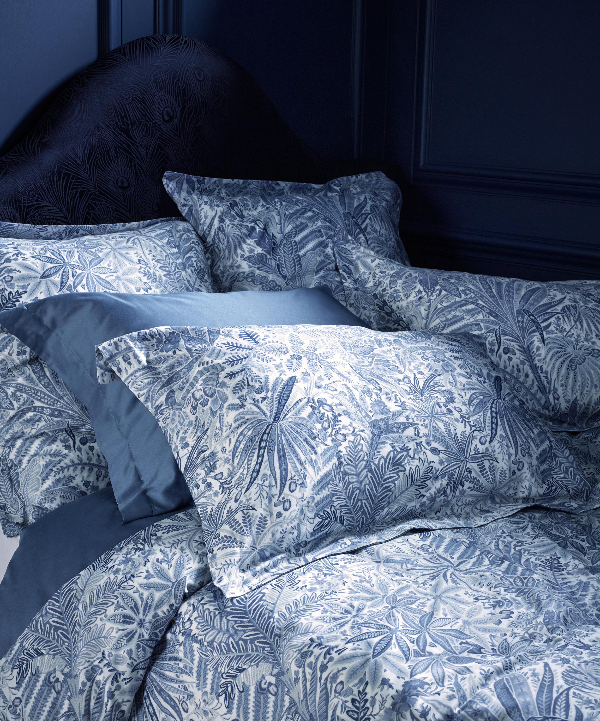 Liberty’s Persian Voyage duvet set features two standard pillowcases and a super king duvet cover, all crafted from luxurious 300-thread-count cotton sateen – a silky-smooth and soft material with a sheeny mercerised finish. Part of the Arts Club collection which pays homage to Liberty’s iconic eccentricity, this duvet set is expertly printed at our very own Italian fabric mill with Persian Voyage – inspired by a collection of mid-19th century hand-painted shawl designs from the Liberty archive, Persian Voyage offers a striking reimagining of the much-loved tropical botanical artwork. Use the set as a pop of vibrancy within a pared-down bedroom set-up, or go all out with jewel-toned velvet lampshades and clashing curtains to embrace the trend for full-blown maximalism.