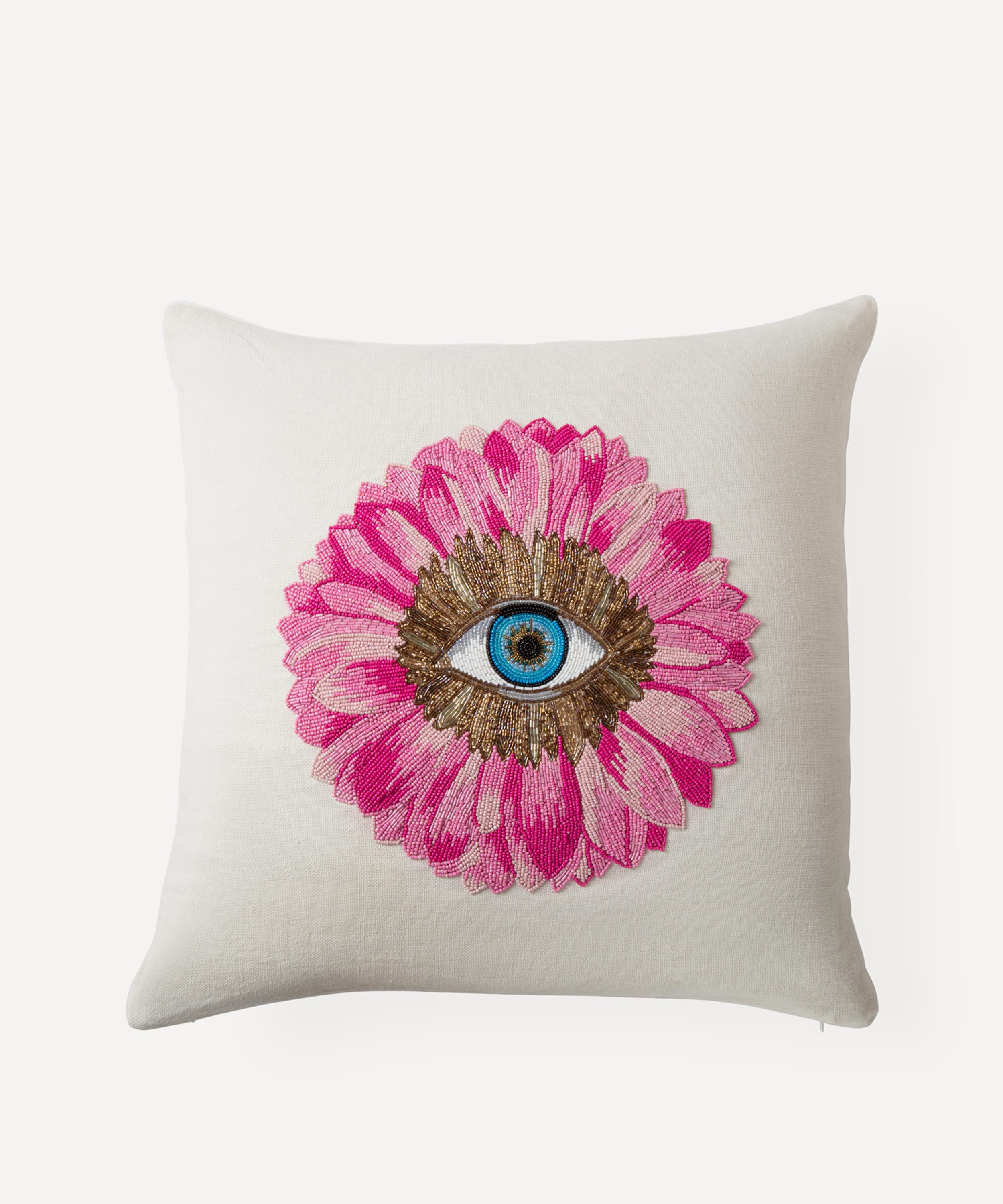 Inspired by artists and tastemakers from Halston to Dali, this piece has been made in collaboration with an artisanal workshop in India where a master beader has imbued the brand’s dazzling designs with craftsmanship and soul. Masterfully hand-beaded on a neutral linen ground, this intricate cushion makes a perfect hostess gift, or elevates somewhat ordinary interiors when styled alongside contrasting furnishings.
