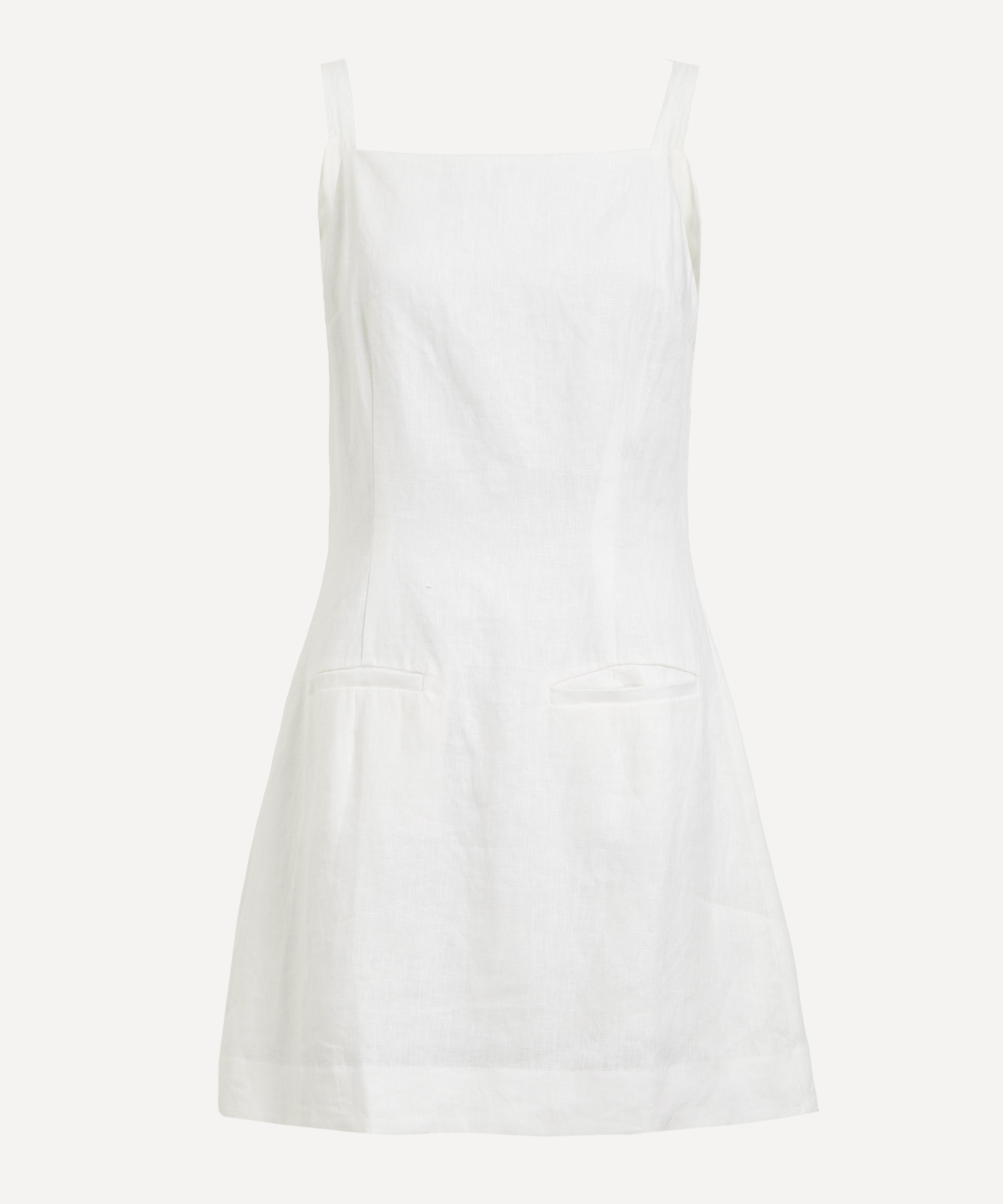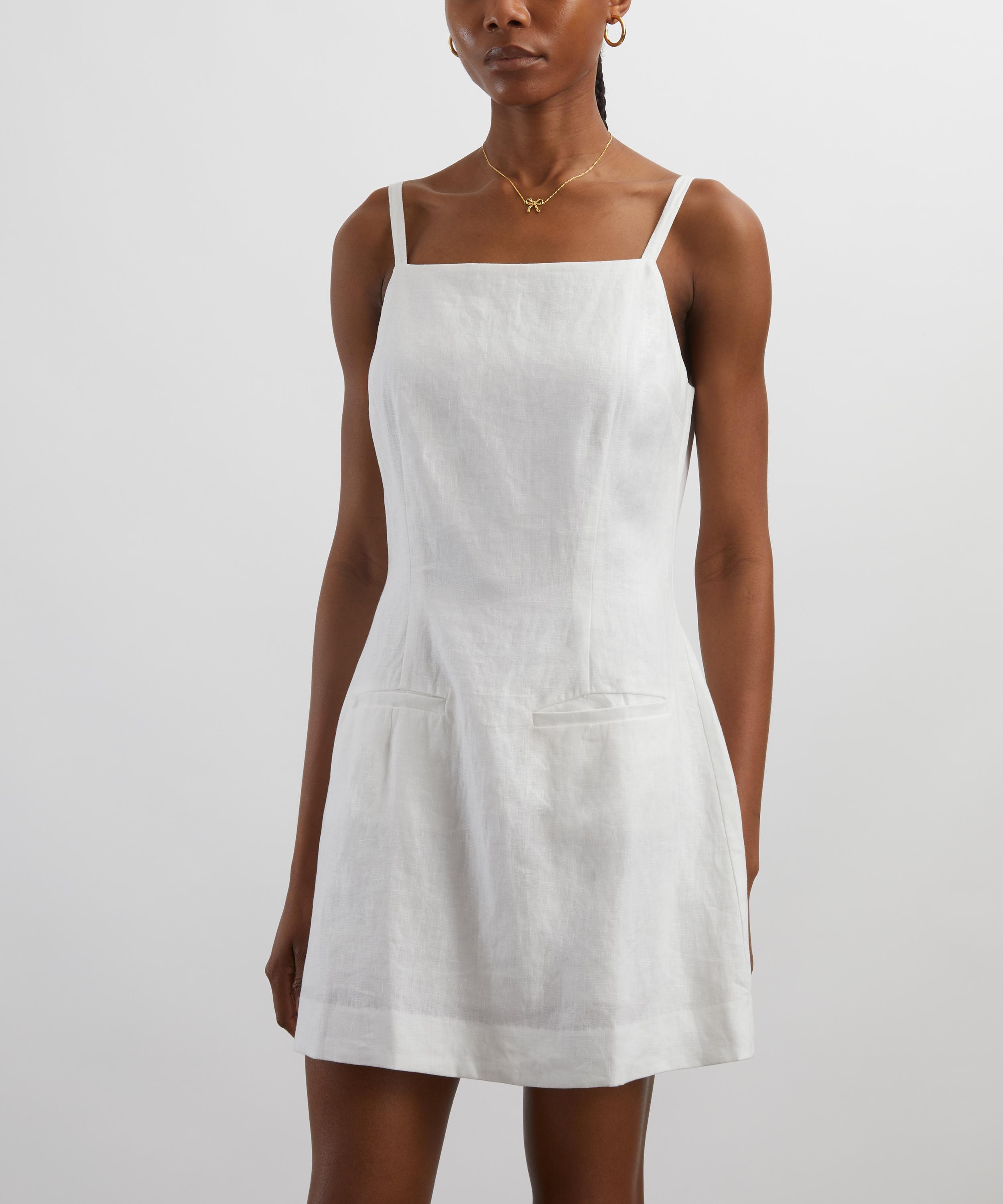rafted from lightweight linen, the Phillipa Dress embodies effortless charm. Featuring a straight neckline and delicate short straps, its figure-skimming bodice flows seamlessly into a thigh-grazing A-line mini skirt, creating a playful yet refined silhouette.