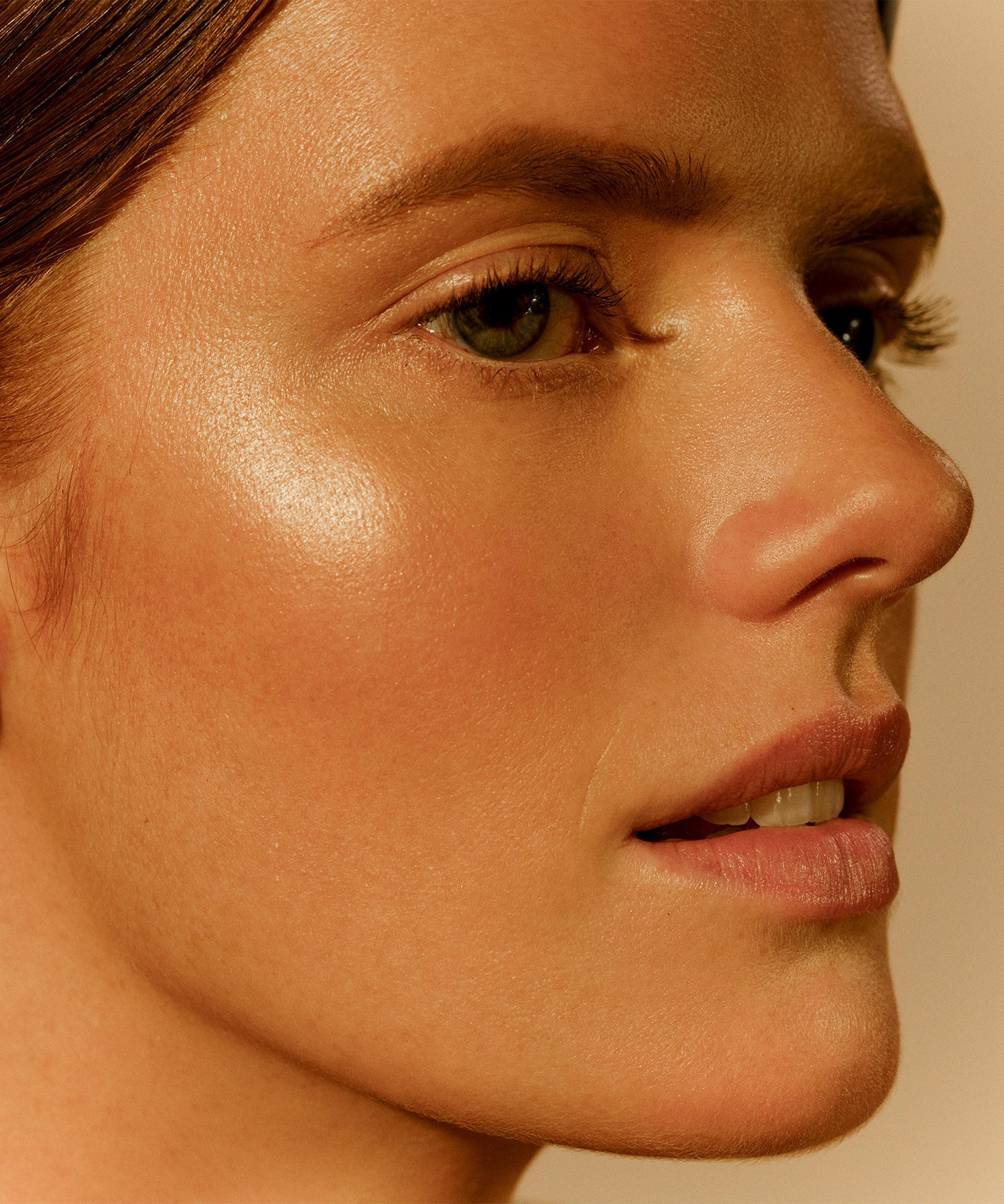 Apply all over the face for a luminous effect. Alternatively, apply to the points of the face that are naturally most exposed to the sun's rays, starting from the cheekbones up to the forehead and then move down to form a '3' shape. Can also be applied to the shoulders and décolleté.