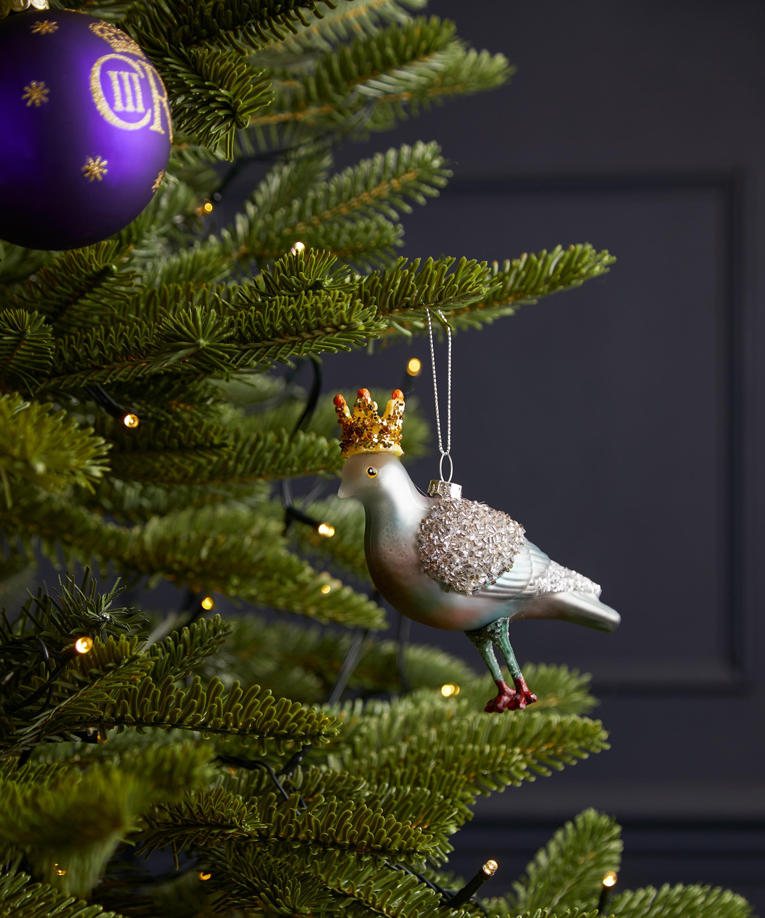 A modern addition to any bauble collection, this charming pigeon is adorned with a glittering crown that’ll twinkle festively in the glow of your Christmas lights.