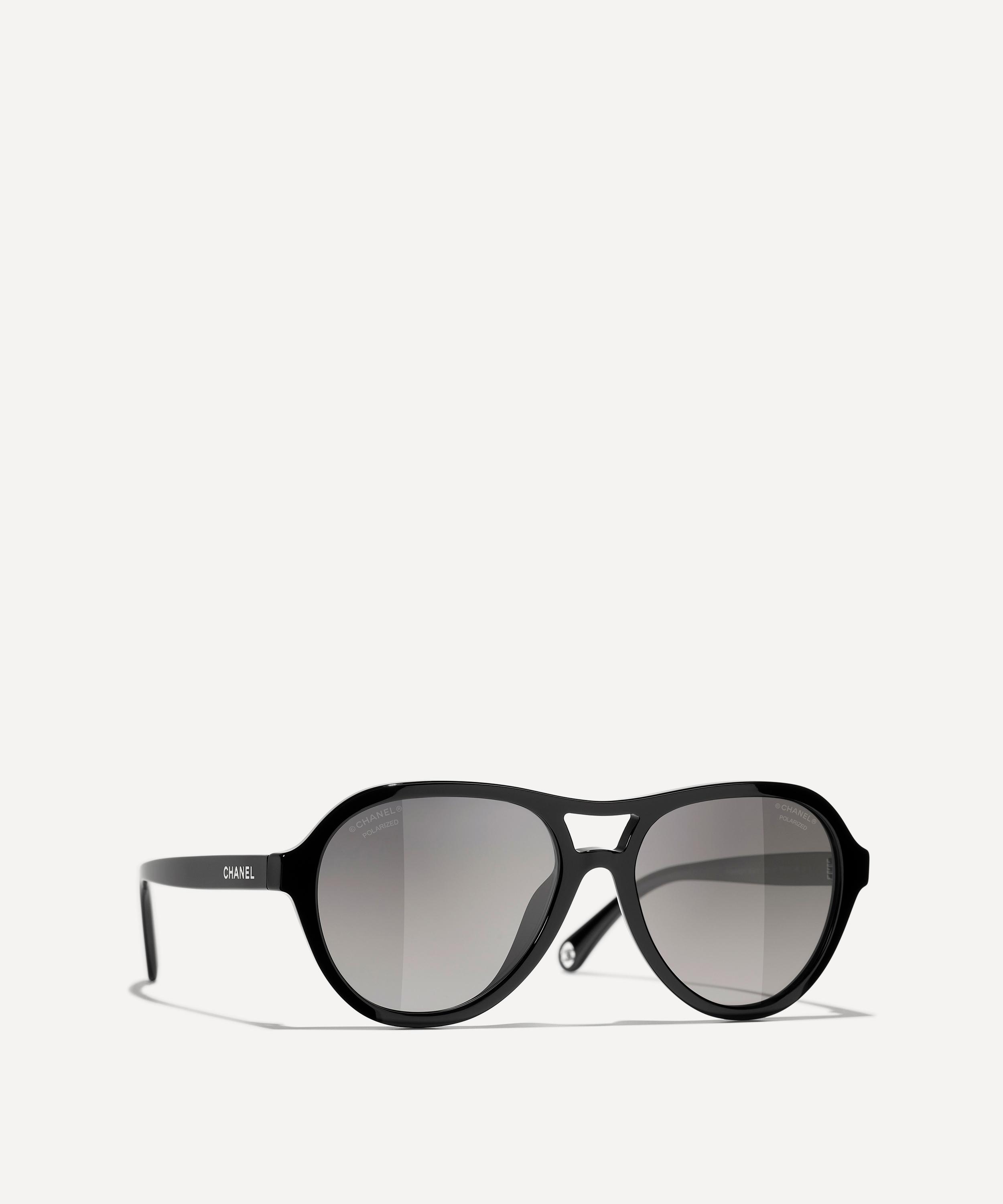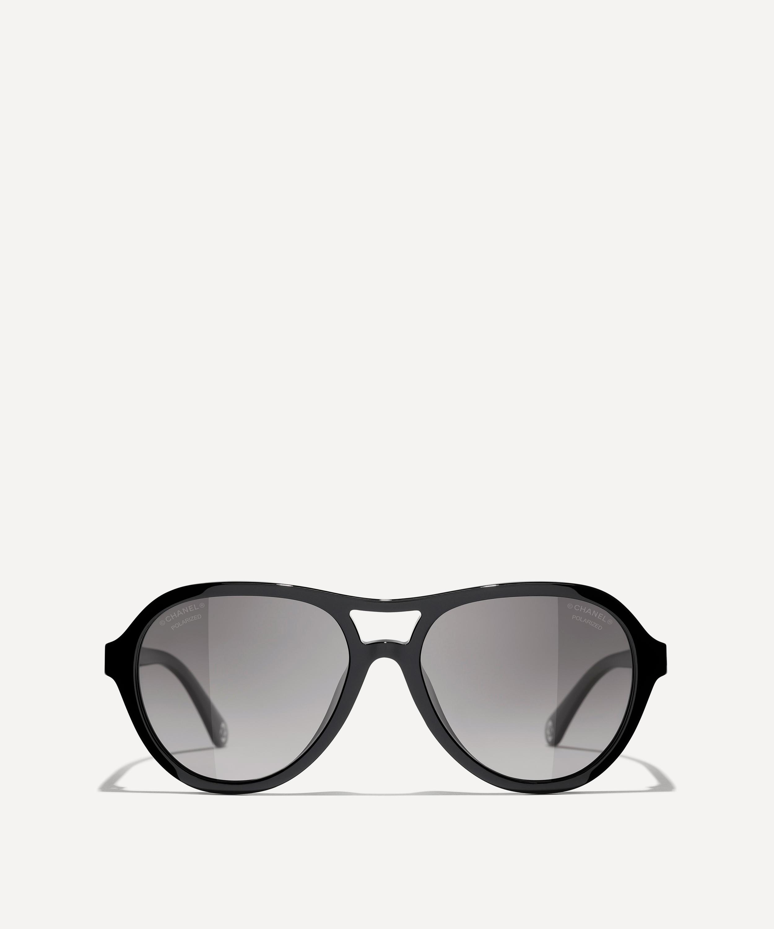 Add a touch of glamour to your everyday look with these Pilot sunglasses from CHANEL. Crafted from premium acetate in a black colourway, they feature a sleek silhouette with a comfortable saddle nose bridge and grey-tinted lenses to protect your eyes from UV light. Adorned with CHANEL branding to the temples, style them with pulled-back hair to show off the details.