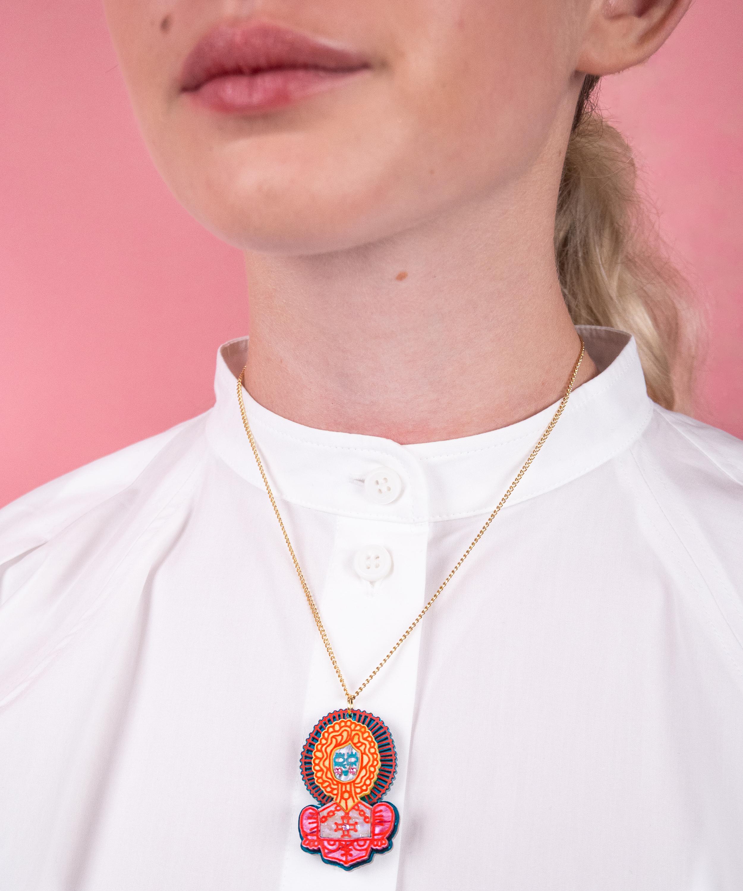 Transform any outfit with this vivid and characterful Tatty Devine pendant necklace, designed to celebrate Sir Grayson Perry’s 65th birthday and the corresponding Delusions of Grandeur exhibition at The Wallace Collection.