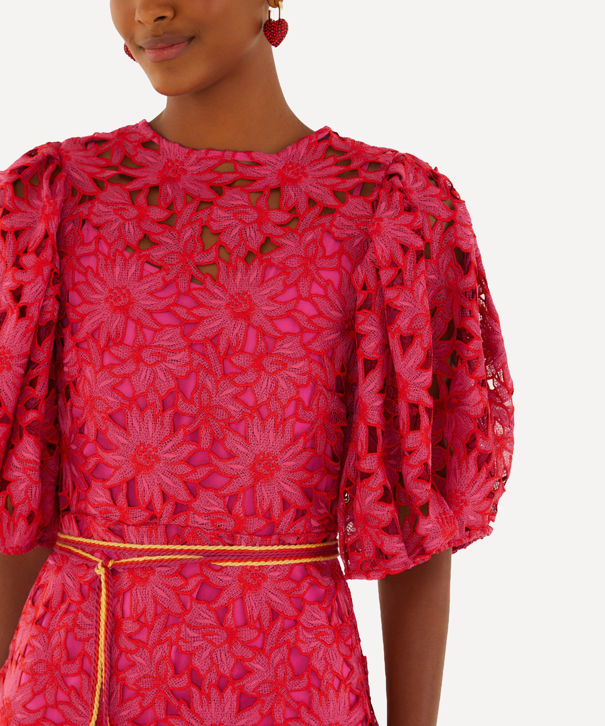 The Pink Flowered Lace Mini Midi Dress from Rio de Janeiro-based label FARM Rio brings some Brazilian vivacity to your new-season edit.