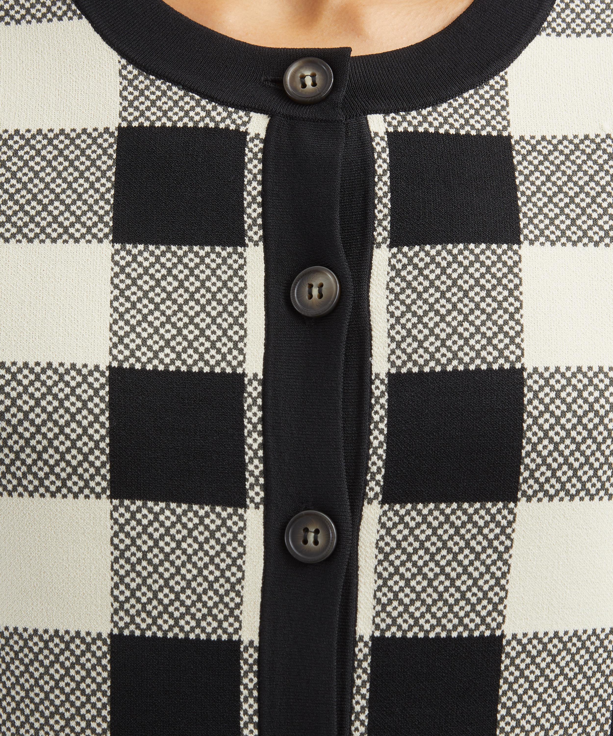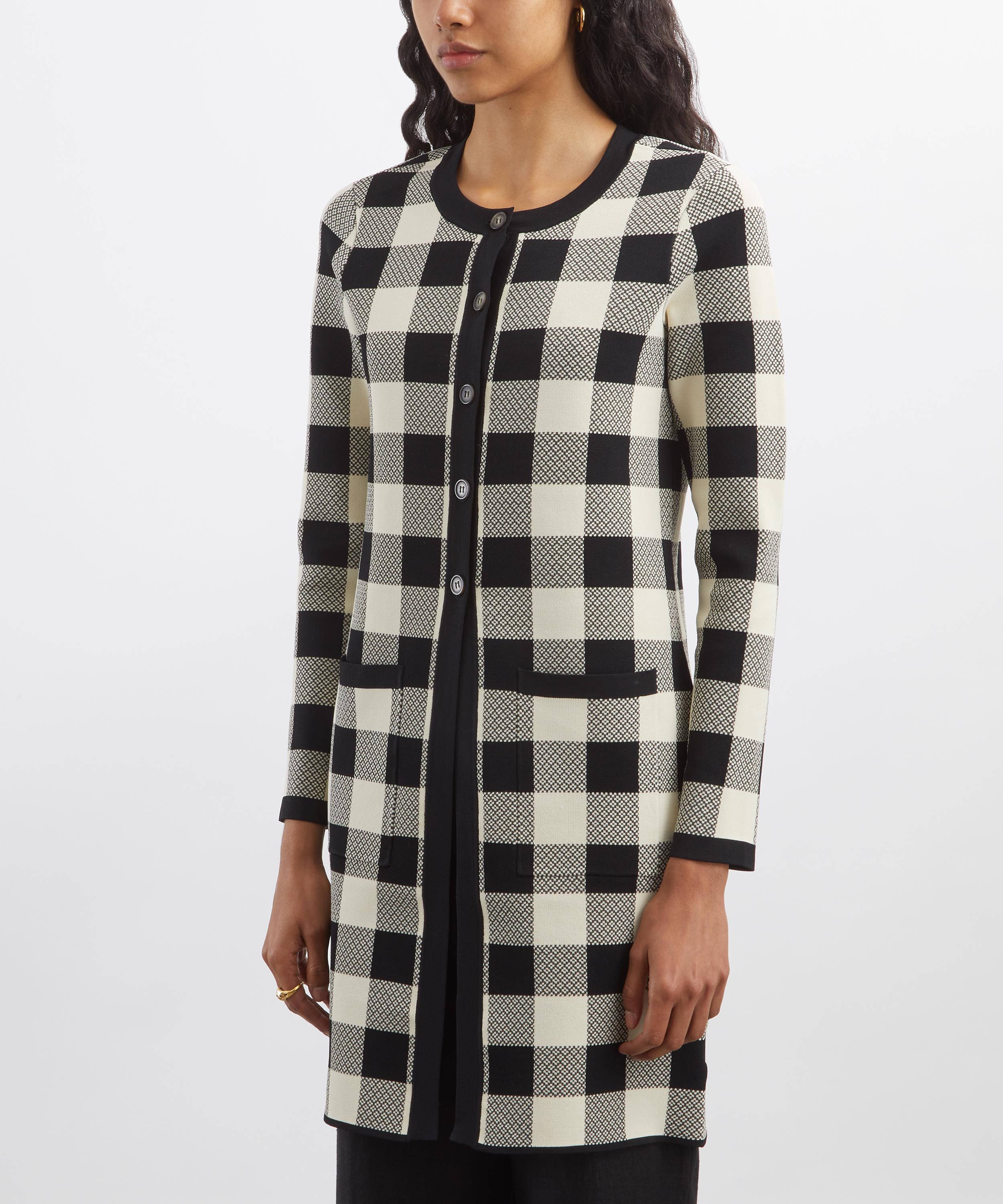 Crafted from a soft, textured knit, the Pippa cardigan is defined by its classic checkered heritage plaid. Designed in a longline silhouette with a centre-front opening and patch pockets, it pairs perfectly with POSSE’s Noelle trousers for an effortlessly refined look.