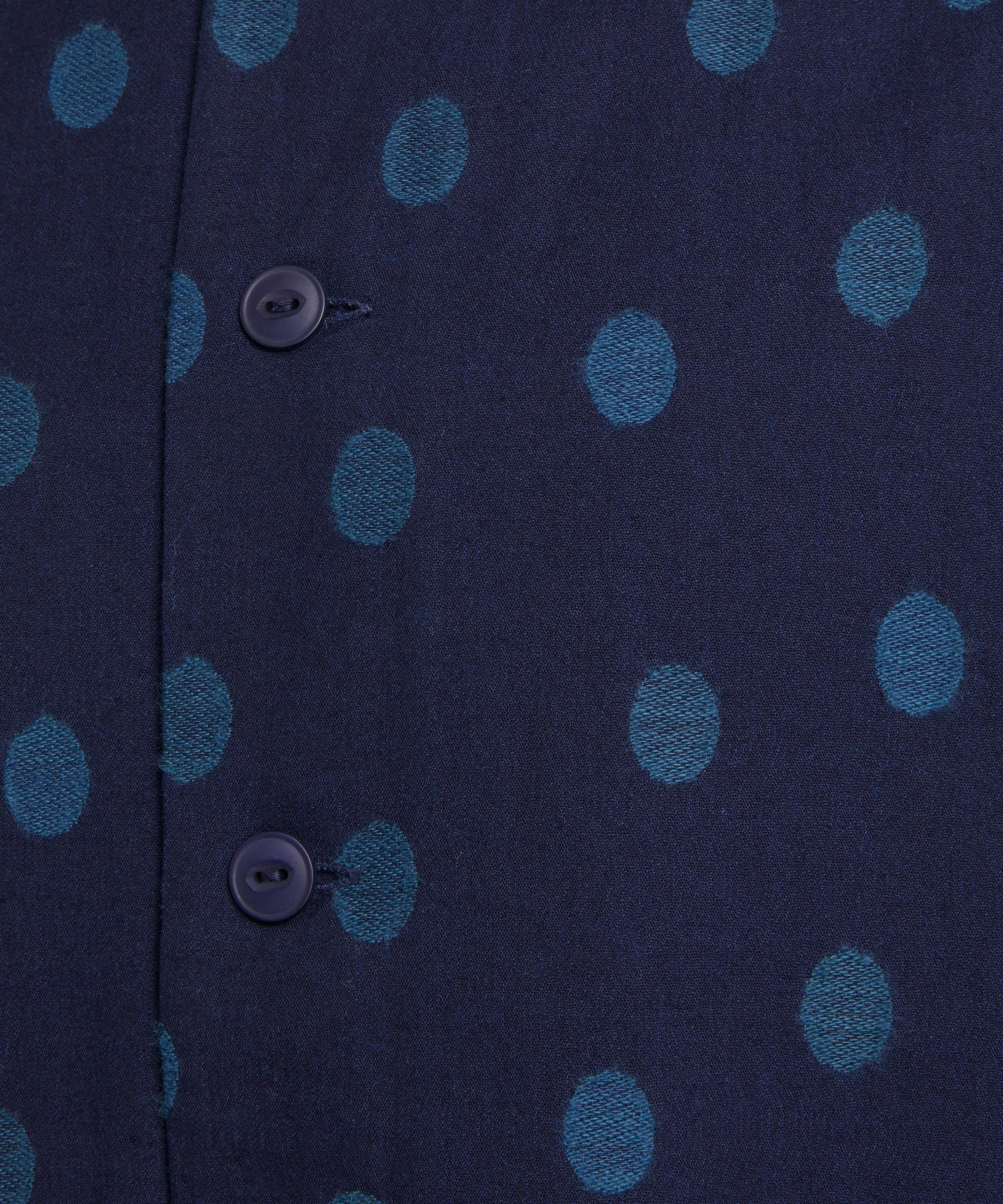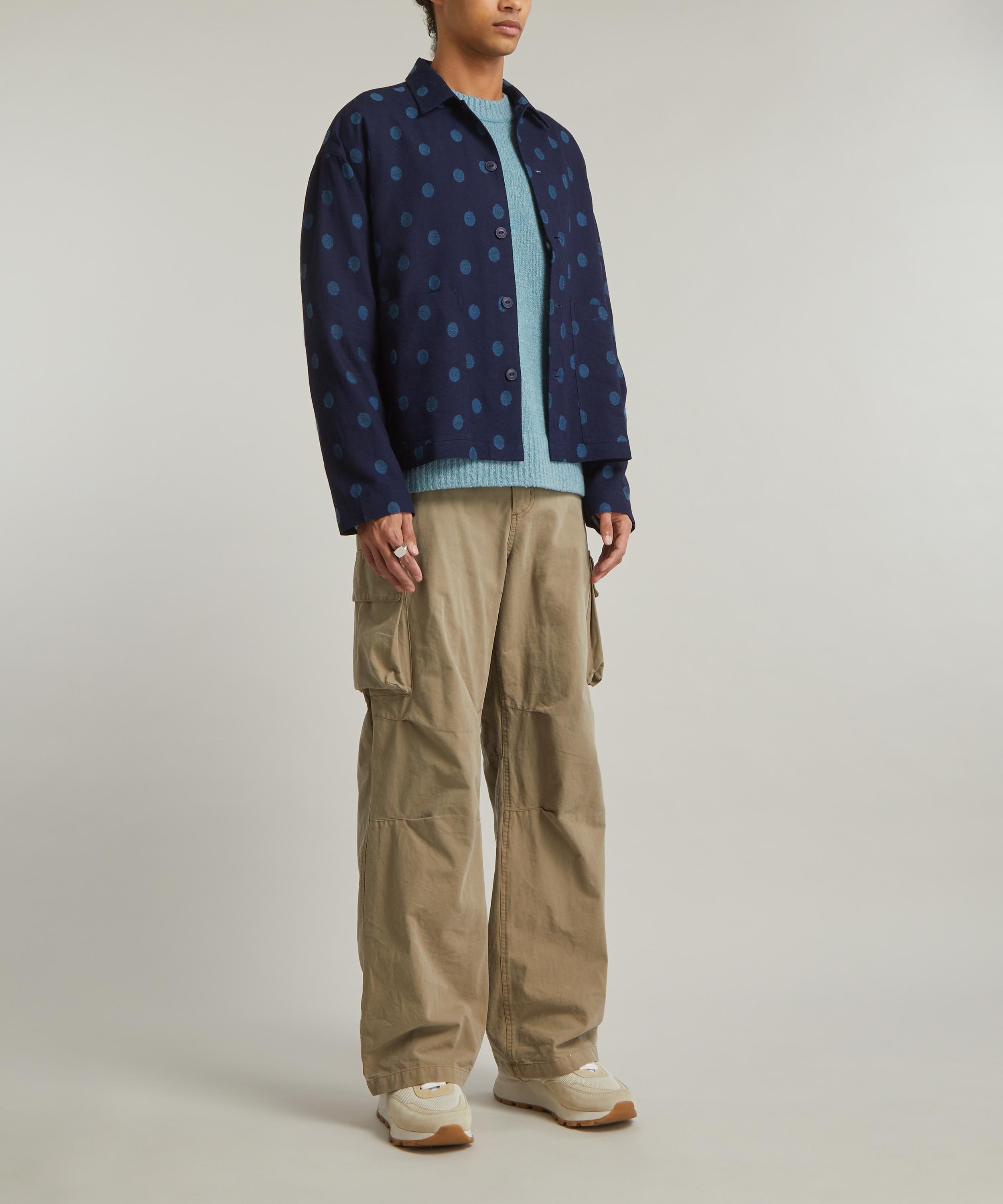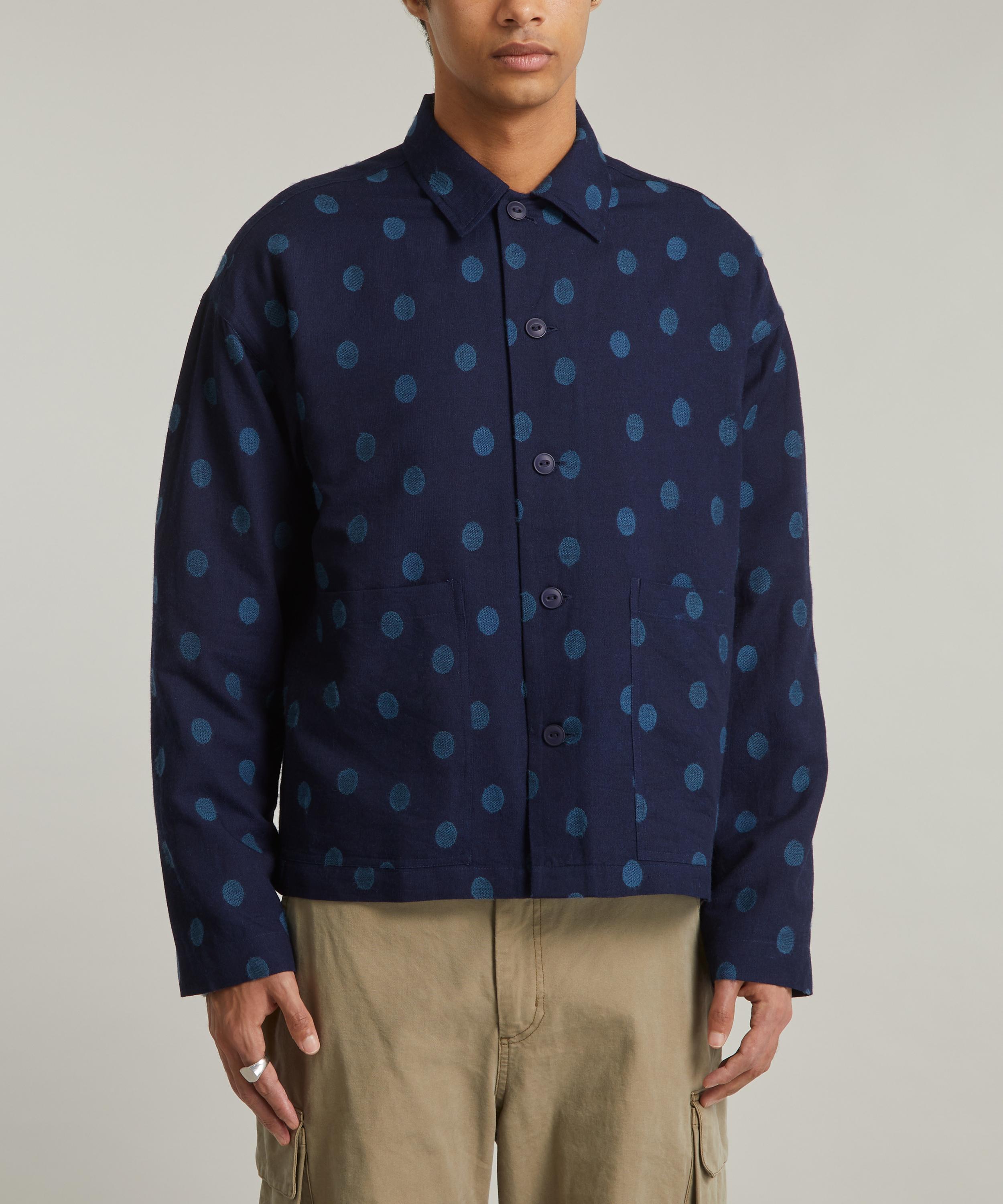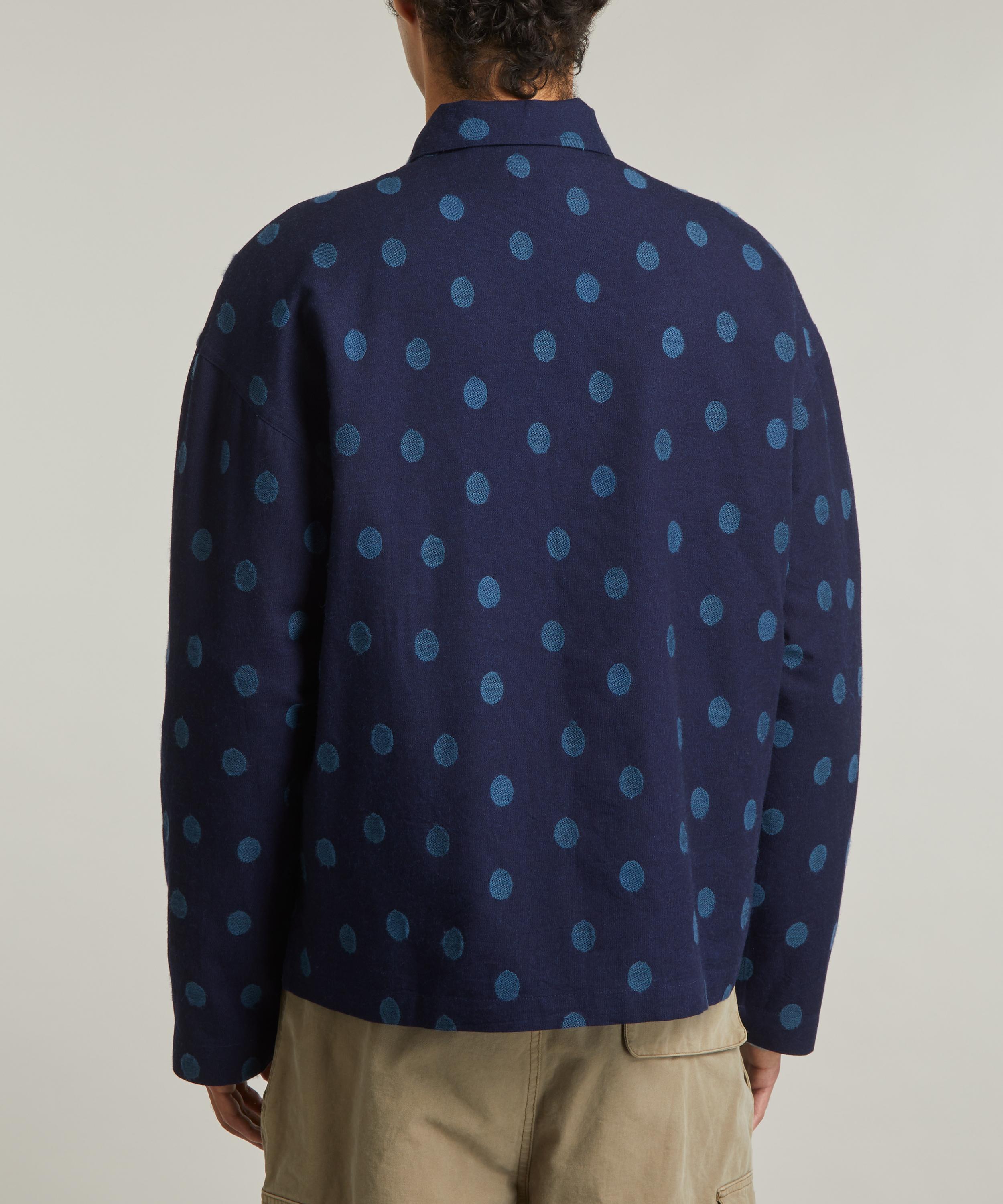 Featuring a loose, relaxed fit, this bomber is crafted from an intricate dot jacquard which has been dyed with indigo meaning each shirt will gain a unique patina with wear. Style with Japanese selvage denim and loafers for an elevated weekend look.