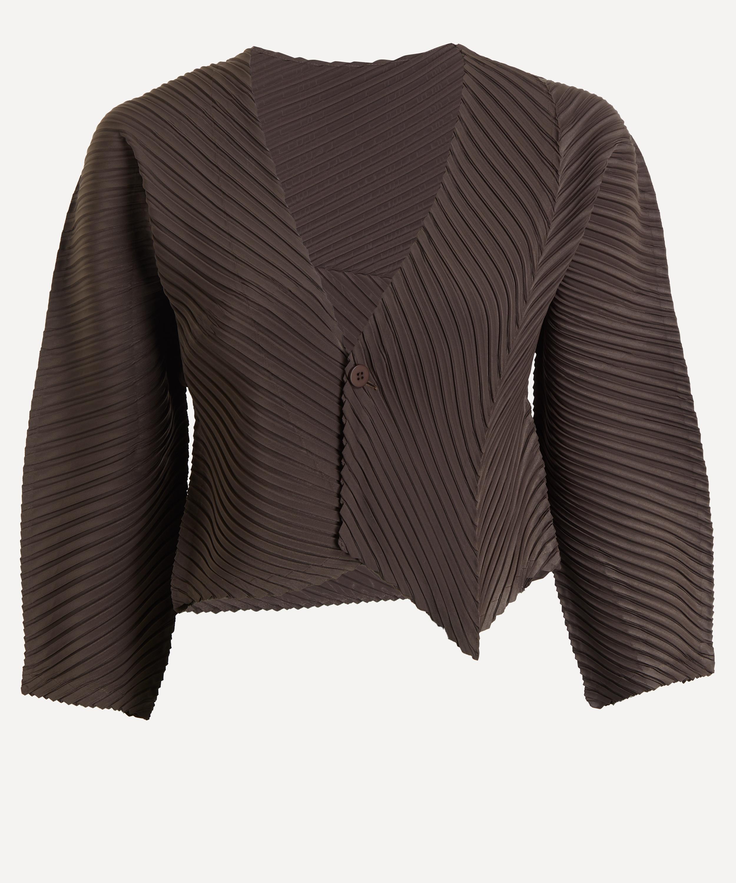 A true statement piece from conceptual design house Issey Miyake, the PLASTER PLEATS Cardigan explores silhouette and proportion with bold ingenuity.