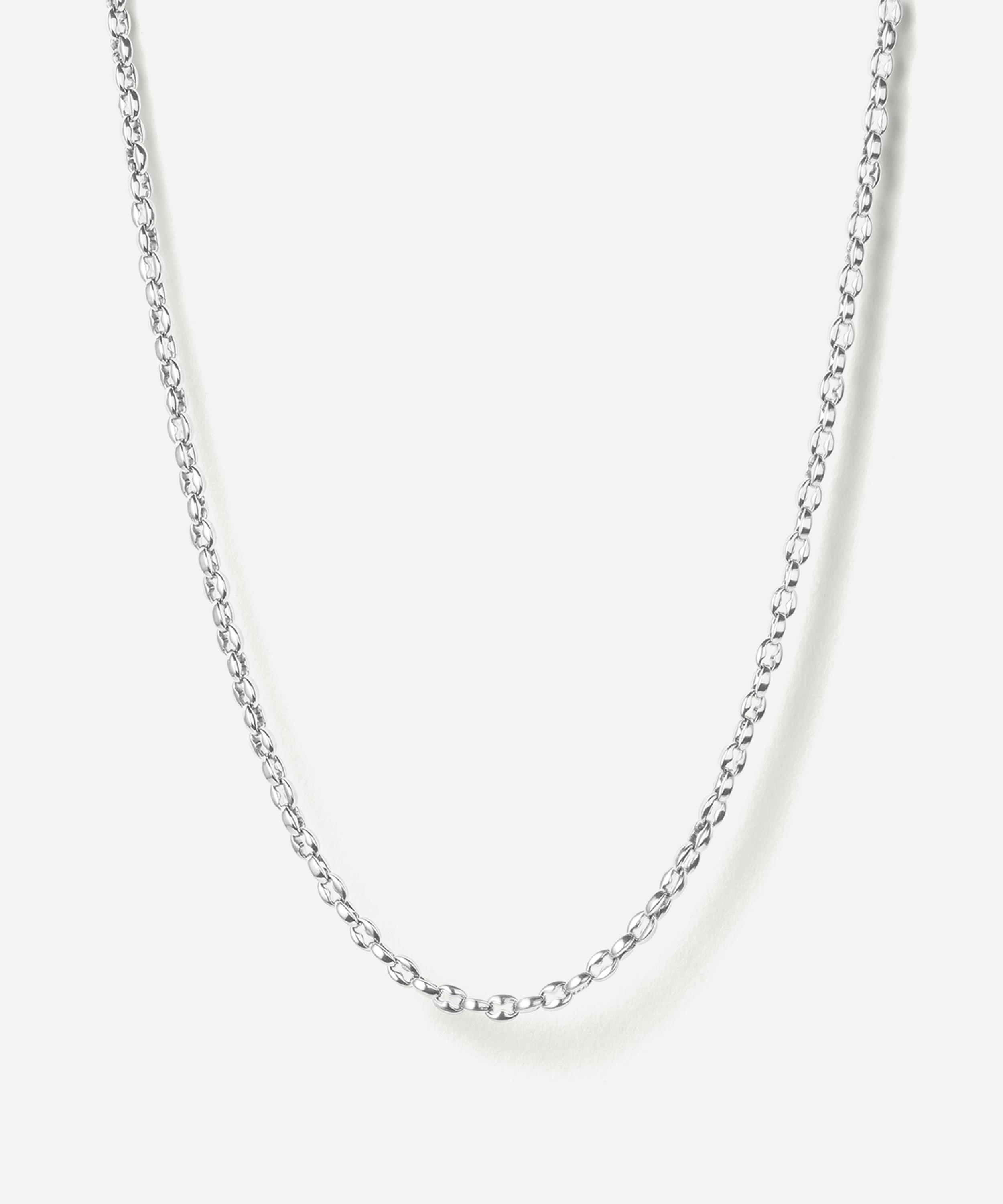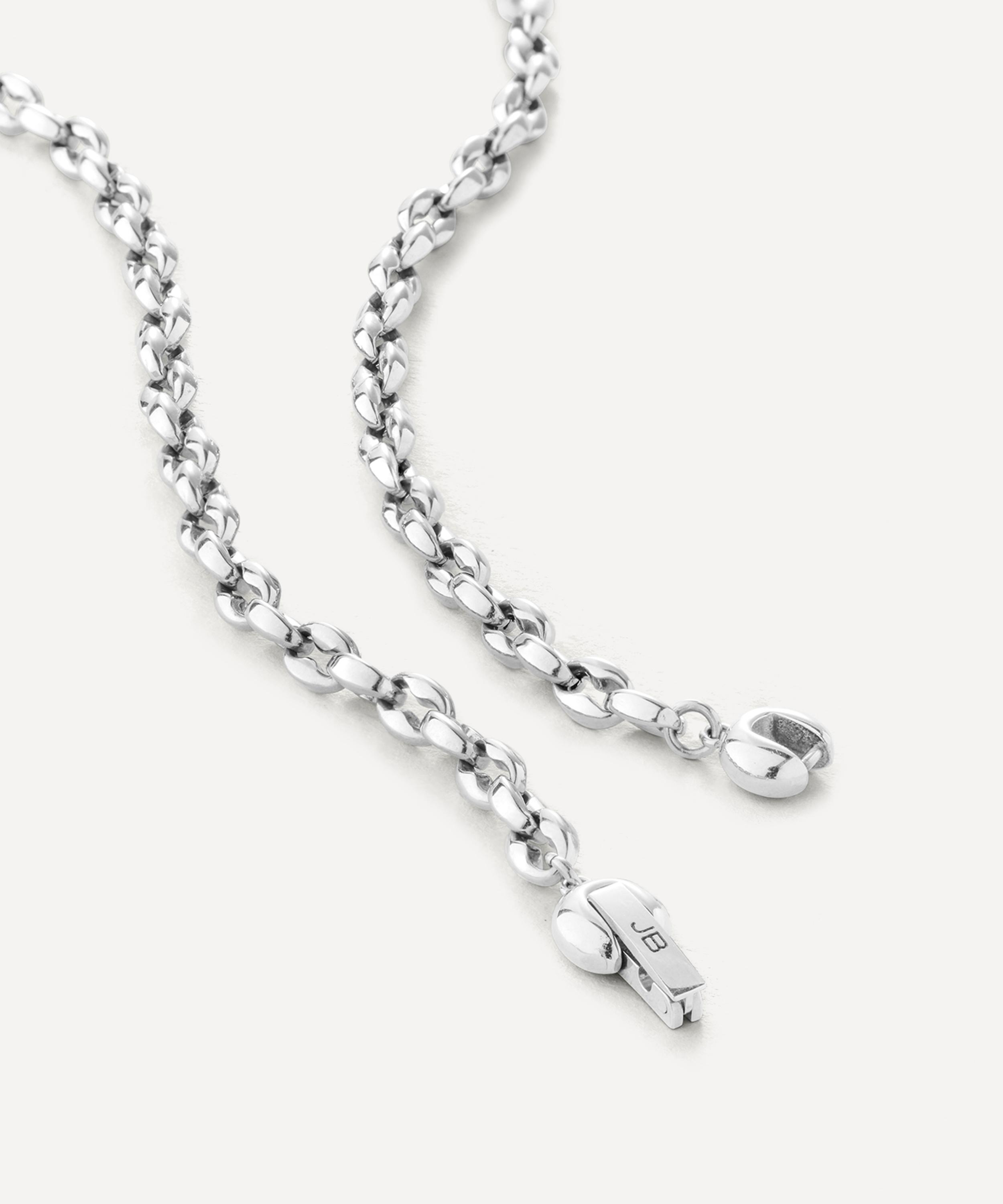 Celebrate the power of good style and the art of getting dressed with the Dhani chain necklace from JENNY BIRD. Fashioned into a coffee bean mariner chain in platinum-plated steel, the design is complete with a classic fold-over tongue clasp. Fashionable and ultra-versatile, it can be worn as a solo piece or layered with other necklaces to create a trend-led stack.