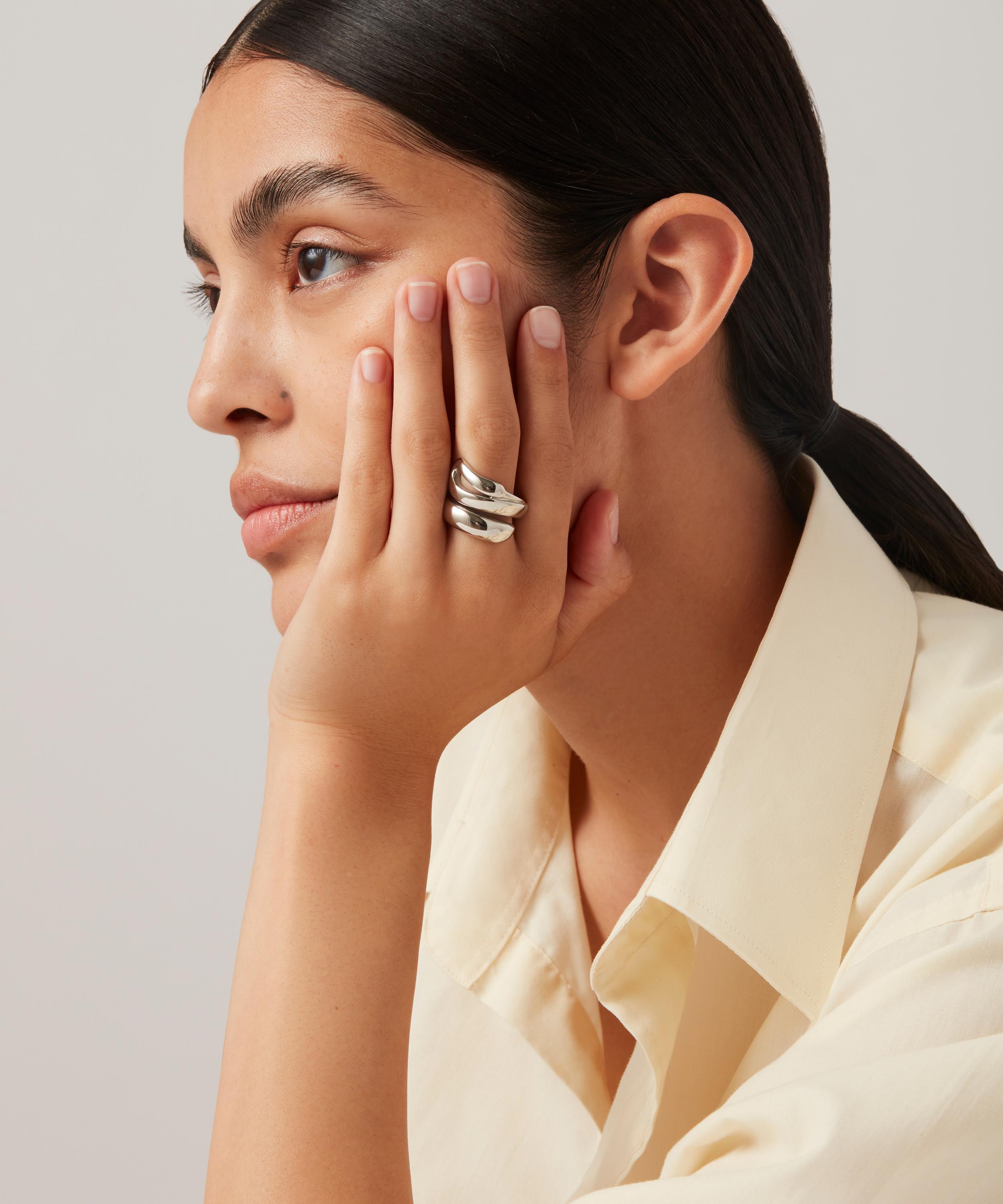 Celebrate the power of good style and the art of getting dressed with the Sées ring from JENNY BIRD. Fashioned from platinum-plated steel into an elongated profile, inspired by the egret bird, it nestles into a chunky, bold shape that wraps around your finger. Fashionable and ultra-versatile, it can be worn solo or layered with other rings to create a trend-led stack.